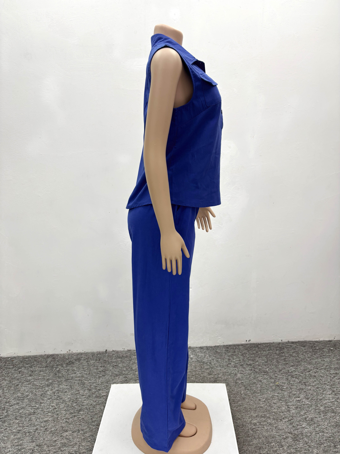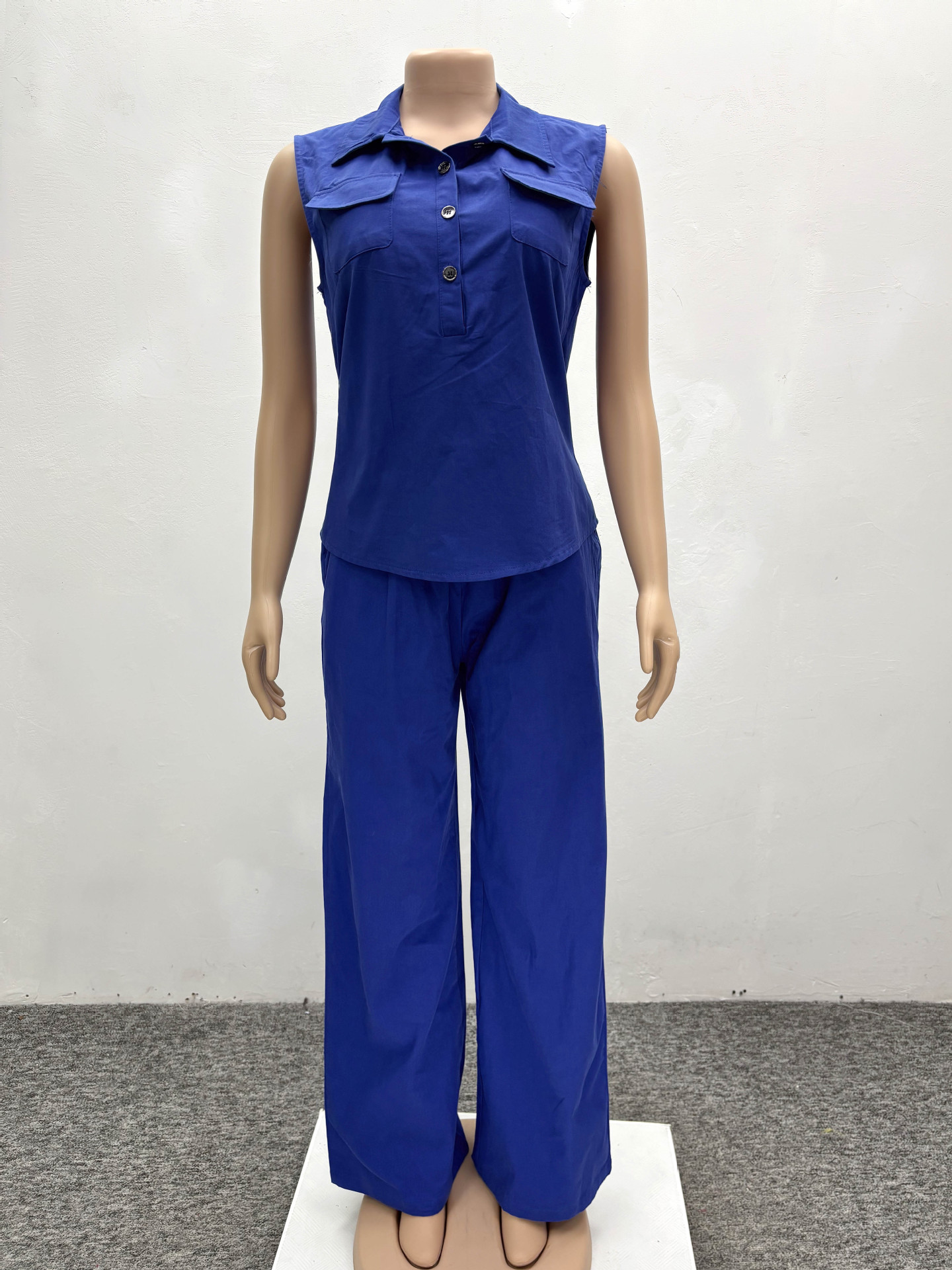 여름 아마존 국경 간 플러스 사이즈 여성 세트 아프리카 민소매 작업복 조끼 여름 여성을위한 와이드 레그 바지 투피스 세트스토어 가기