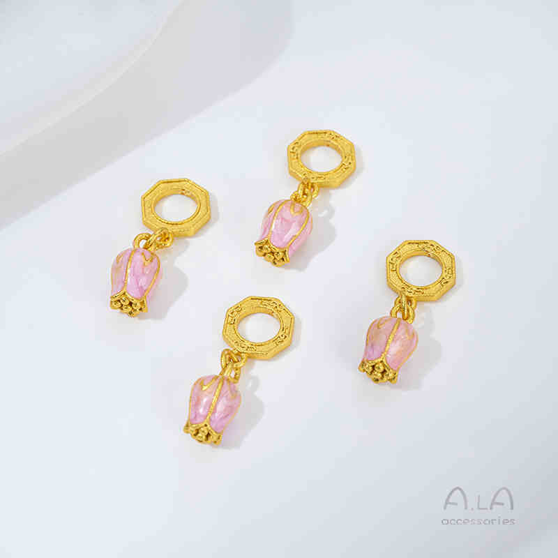 색상 유지 모래 금 오일 핑크 계곡 꽃 봉오리 펜던트 Zakila 어머니 펜던트 diy 보석 액세서리 계곡의 벚꽃 릴리스토어 가기