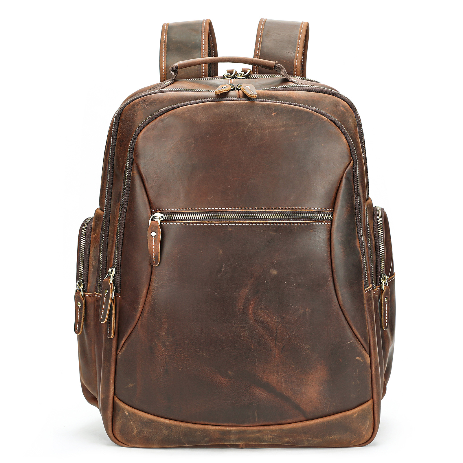 NIUCUNZH 정품 가죽 남성 배낭 대용량 레트로 미친 말 가죽 17 인치 여행 배낭 학생 Schoolbag