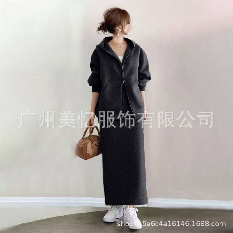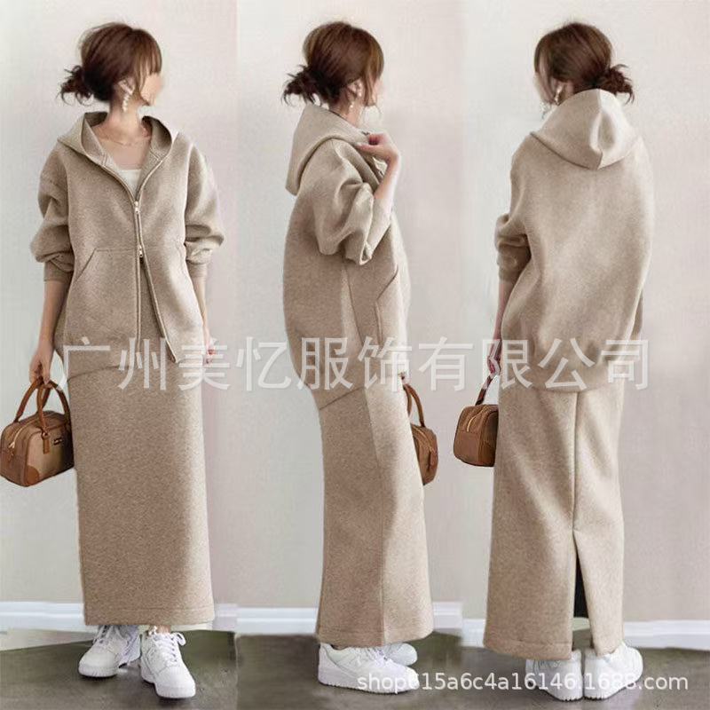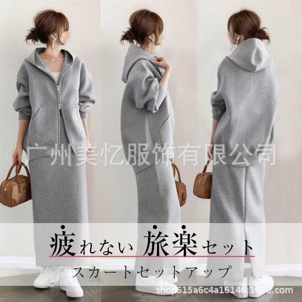 좋은 소재, 2025년 가을 인기 상품, 여성용 후드 지퍼 스웨트셔츠+스커트 캐주얼 투피스 세트스토어 가기