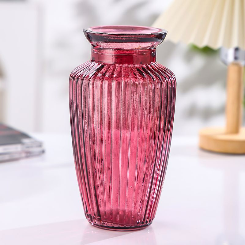 북유럽 수직 패턴 유리 꽃병 창조적 인 플레어 입 수경 식물 꽃 가구 거실 꽃 장식 장식품스토어 가기