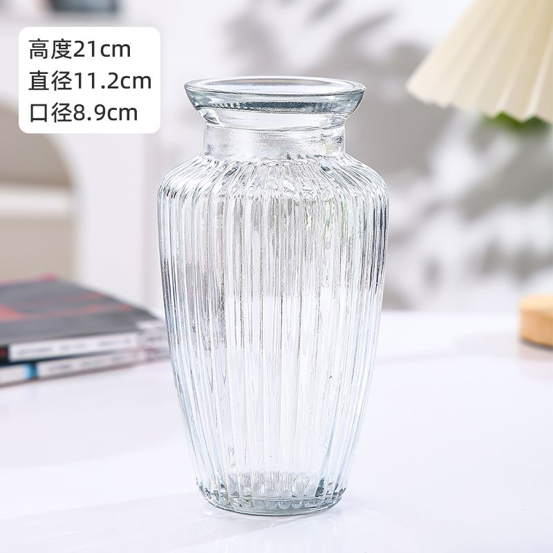 북유럽 수직 패턴 유리 꽃병 창조적 인 플레어 입 수경 식물 꽃 가구 거실 꽃 장식 장식품