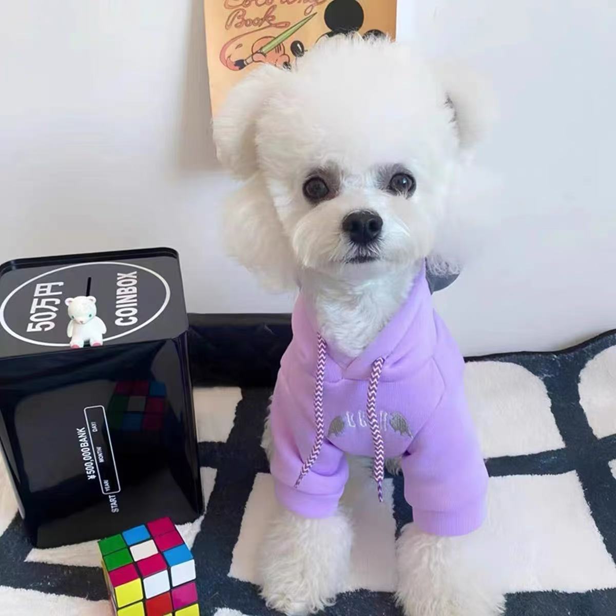 가을과 겨울 보라색 뿔 후드 스웨트 셔츠 작은 개 테디 Bixiarina 애완 동물 고양이 개 올 매치 스웨트 셔츠