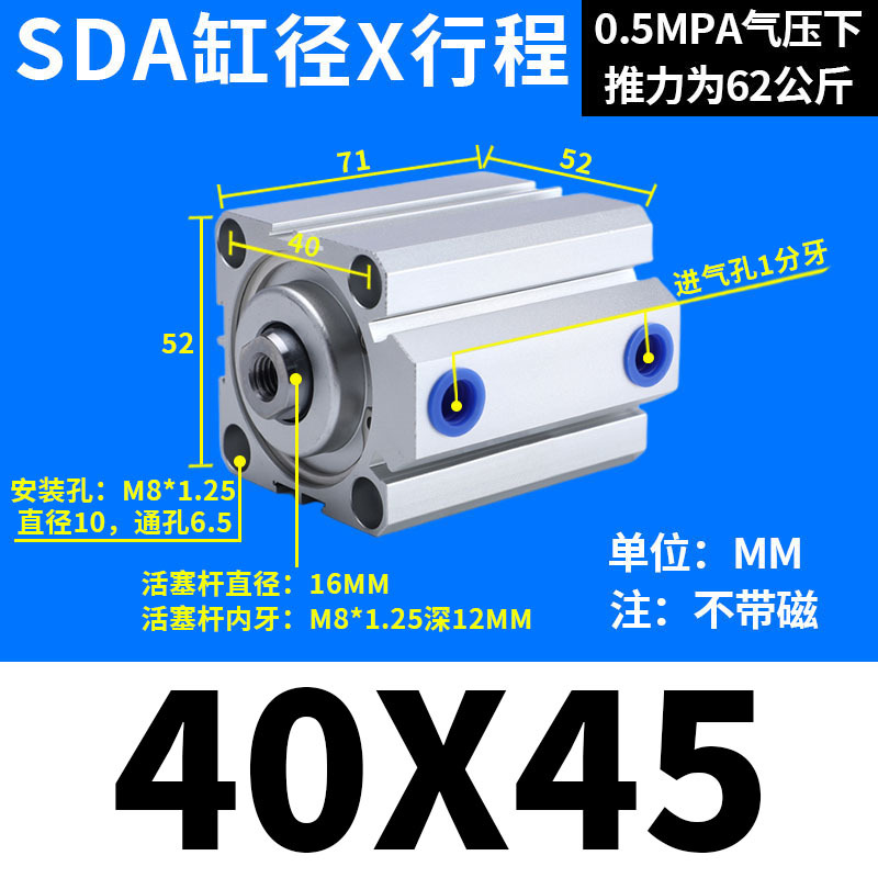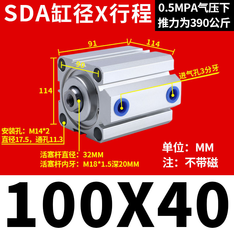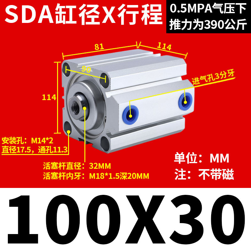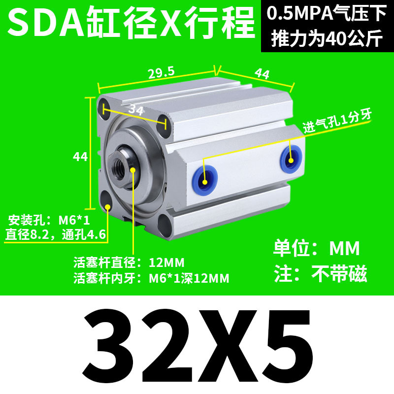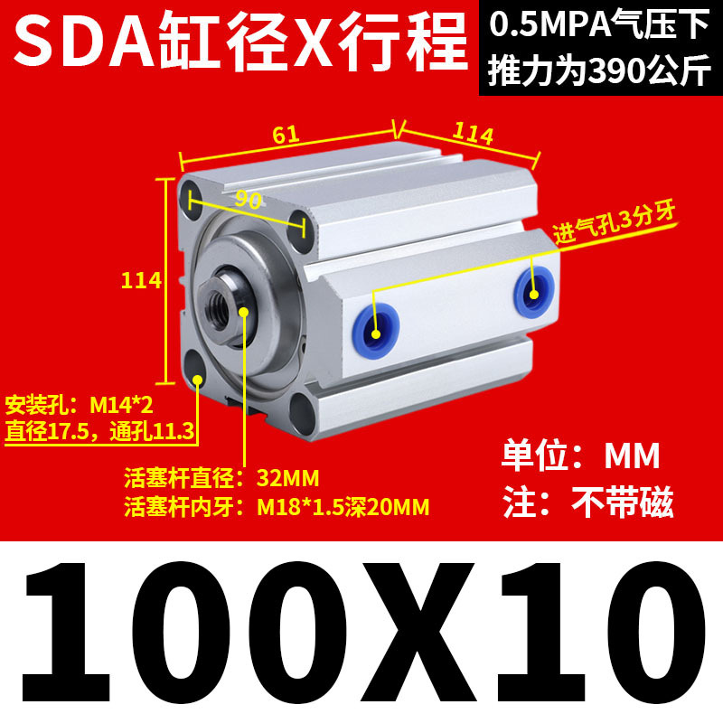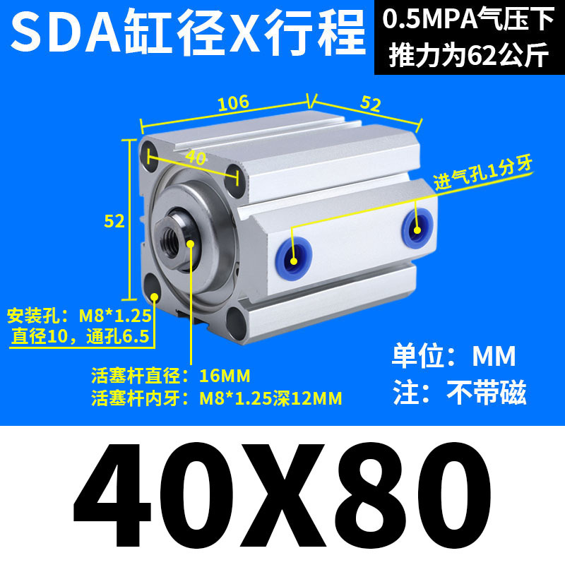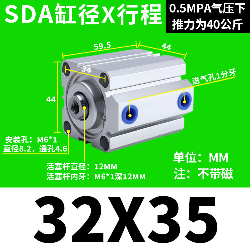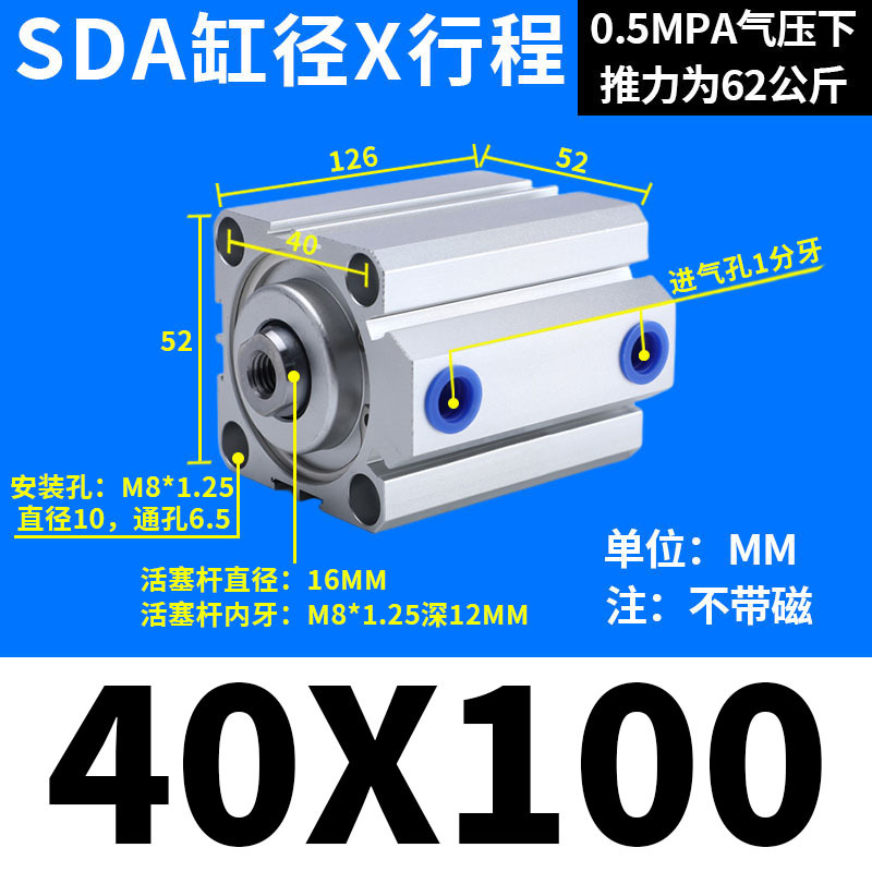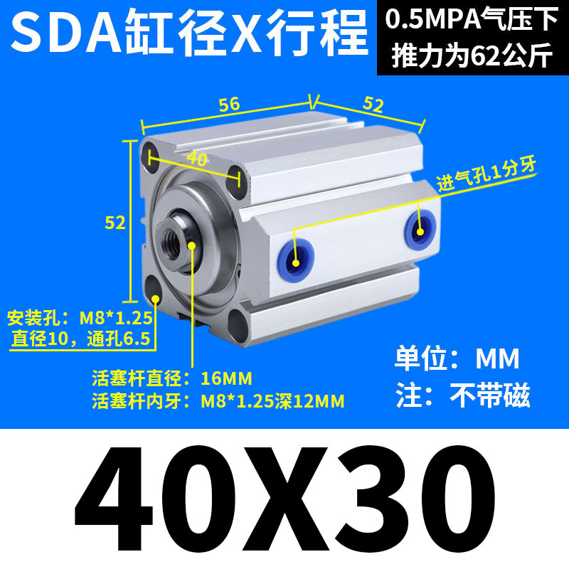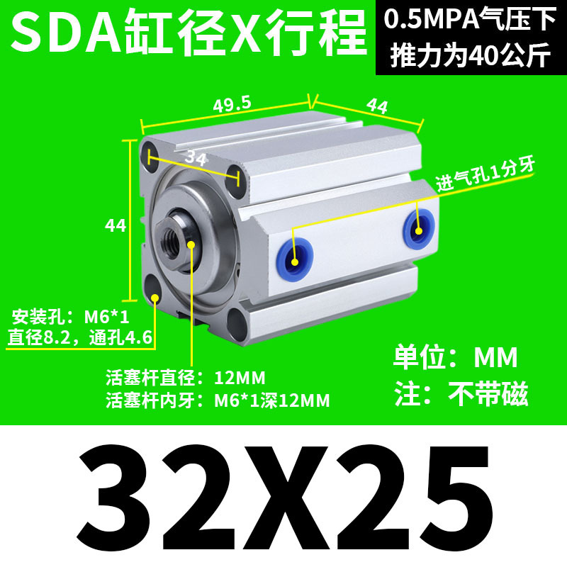 SDA32 작은 공압 120/16/25 얇은 30 실린더 50/63/80X40*10*60X70X90X100