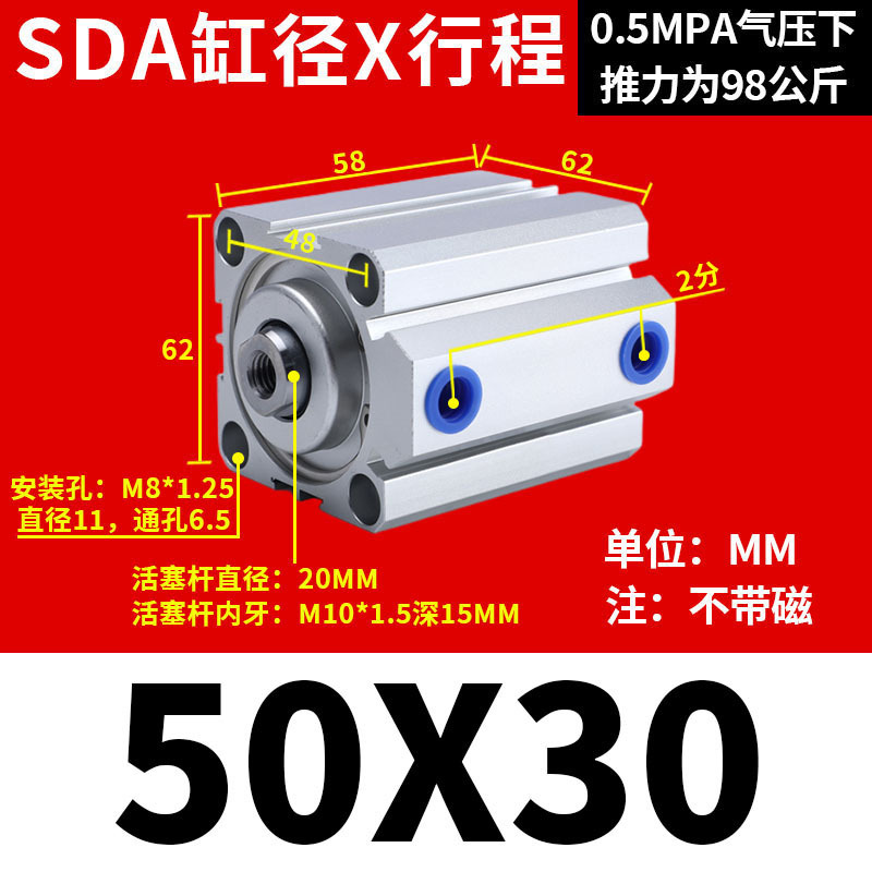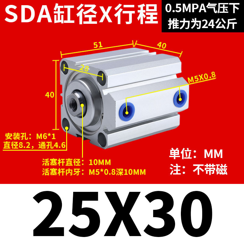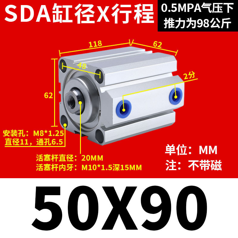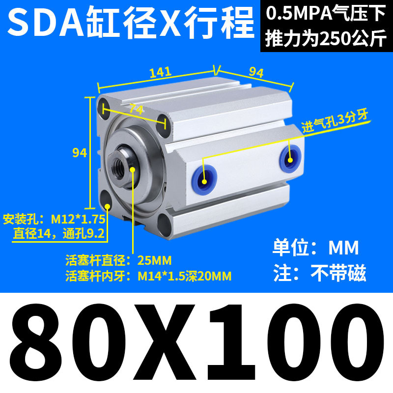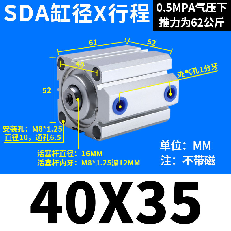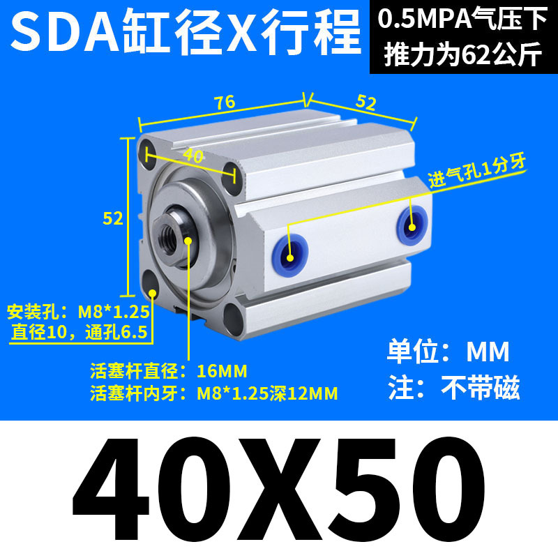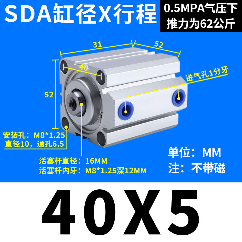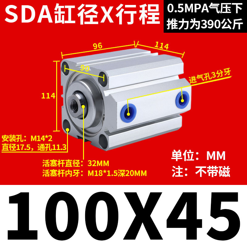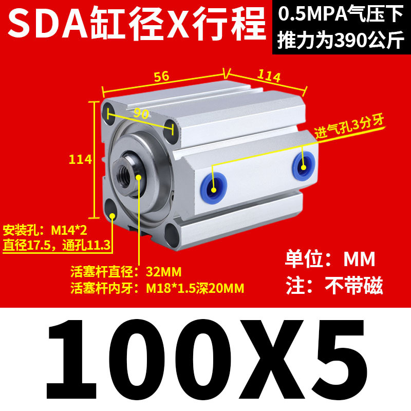 SDA32 작은 공압 120/16/25 얇은 30 실린더 50/63/80X40*10*60X70X90X100