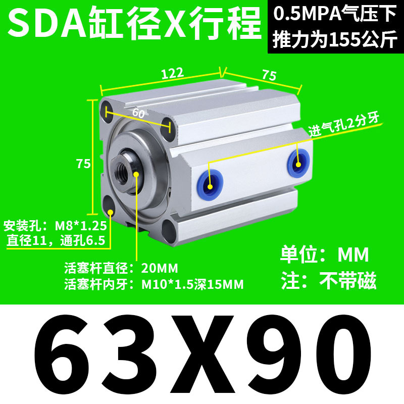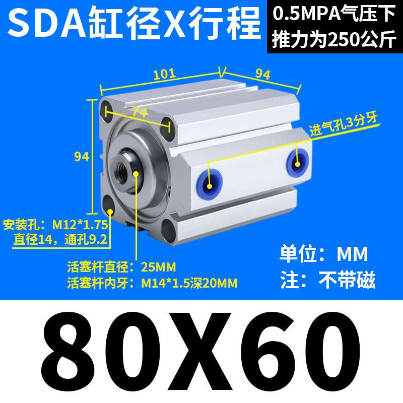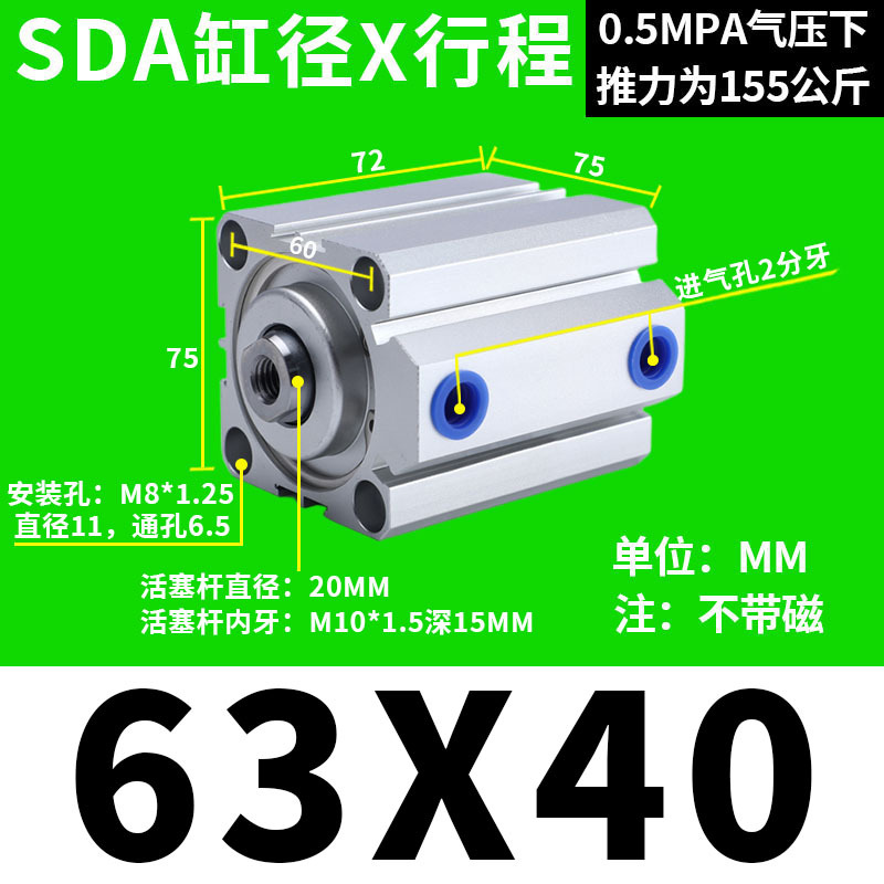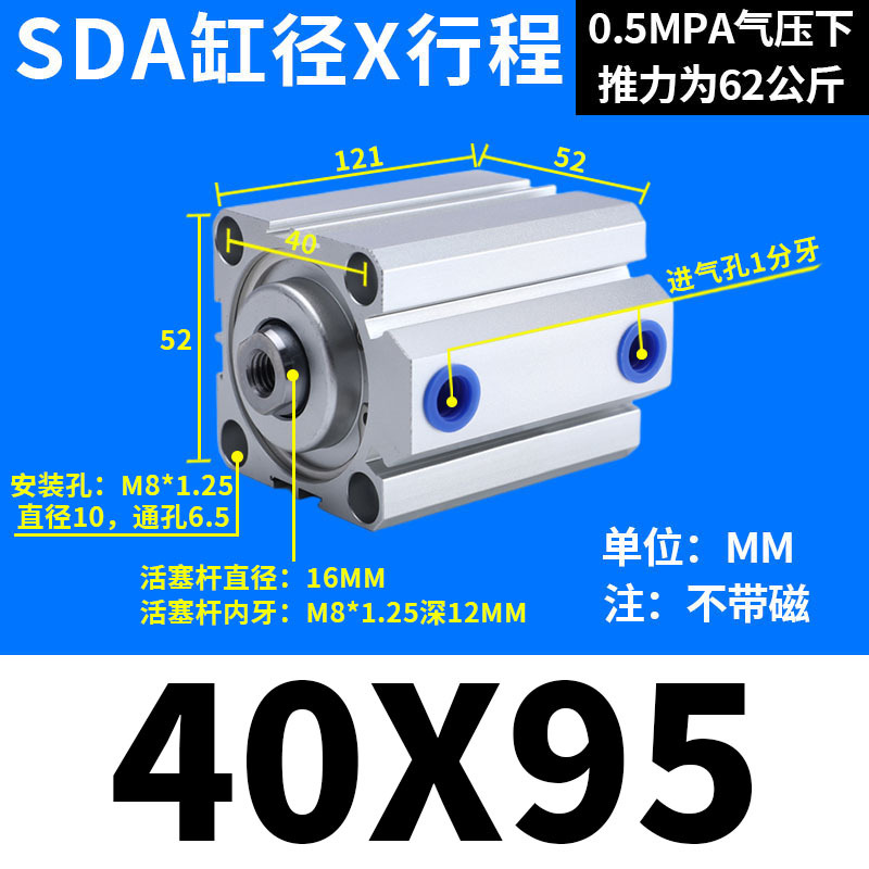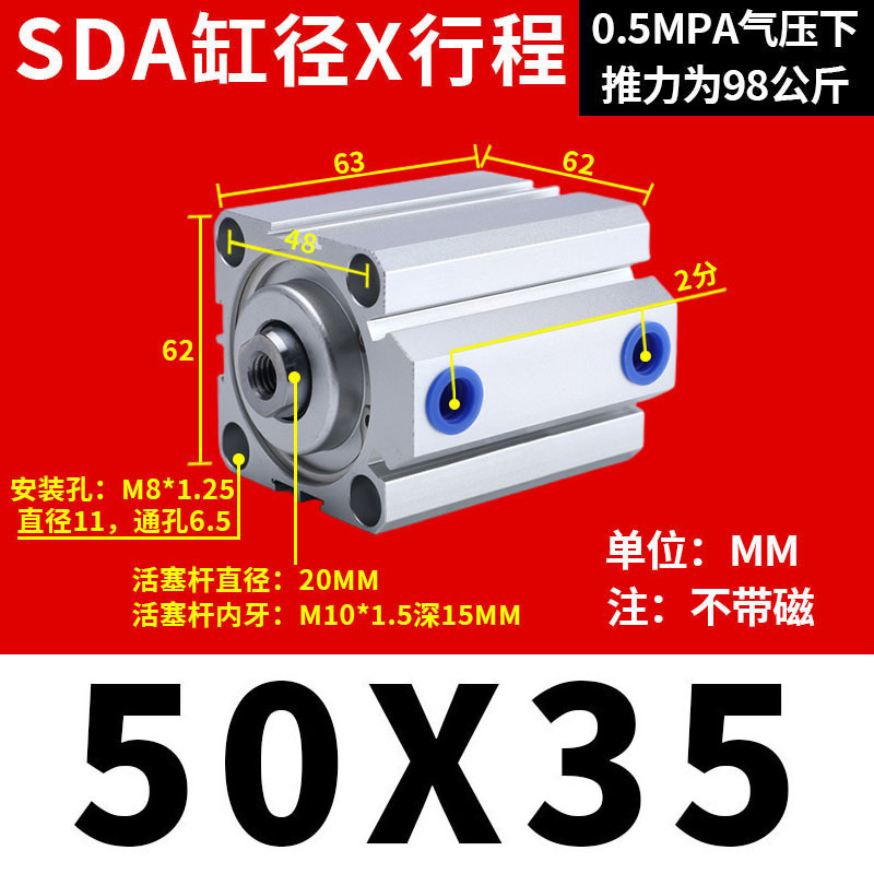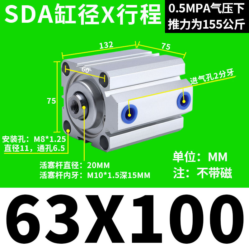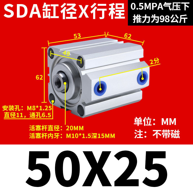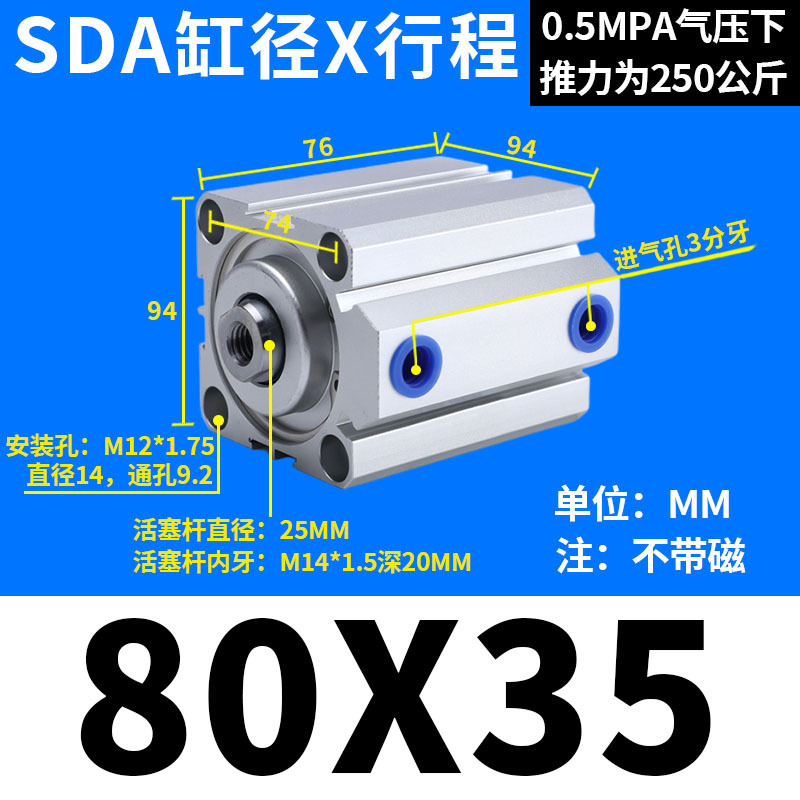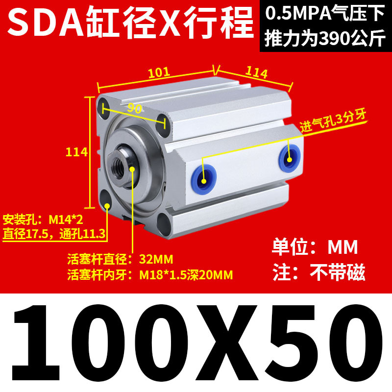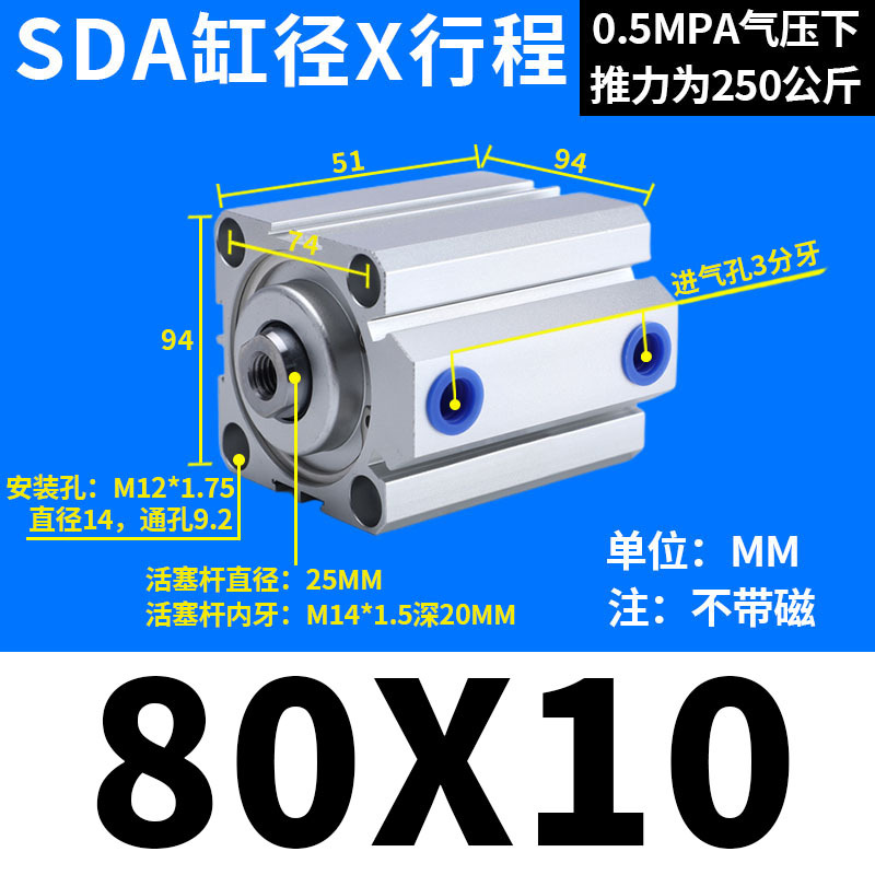 SDA32 작은 공압 120/16/25 얇은 30 실린더 50/63/80X40*10*60X70X90X100