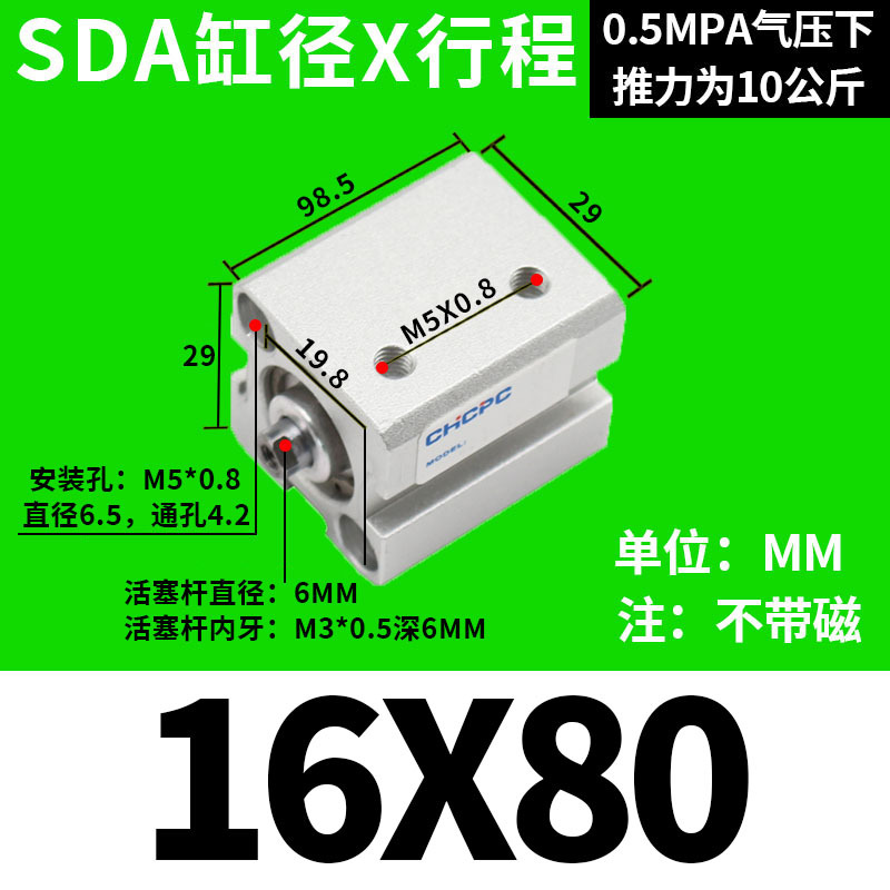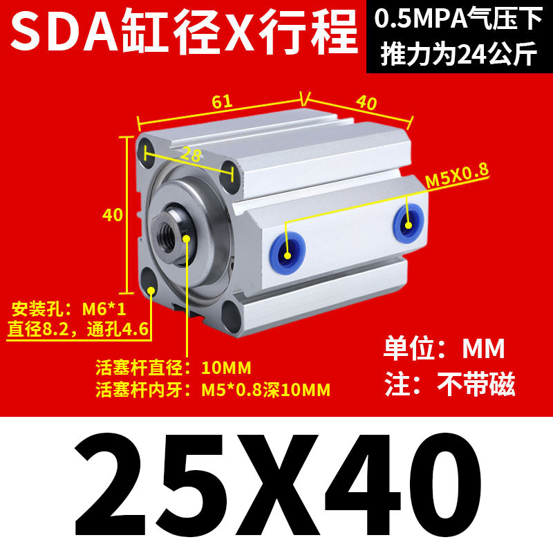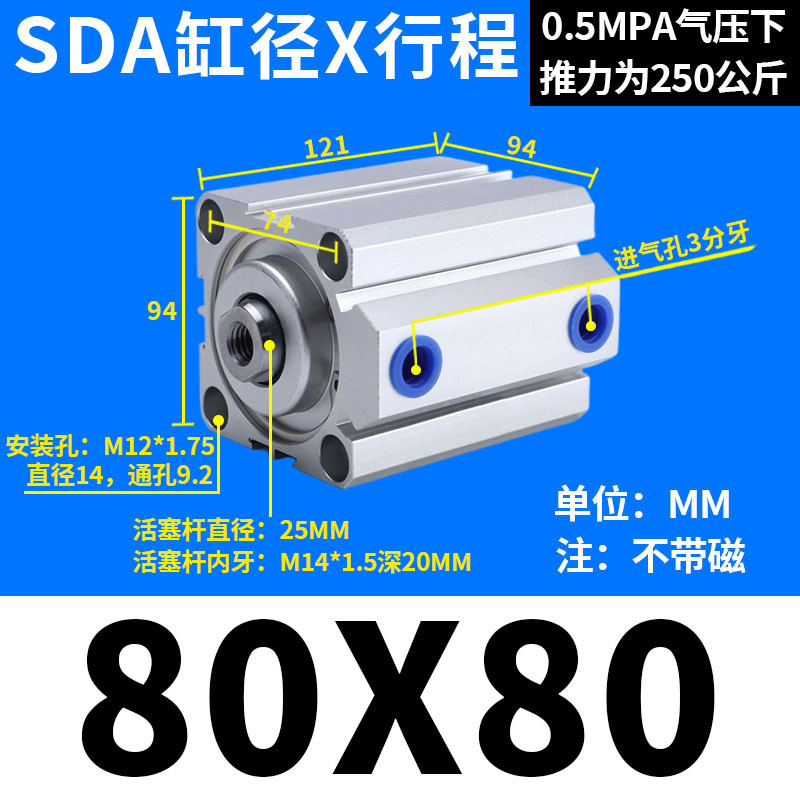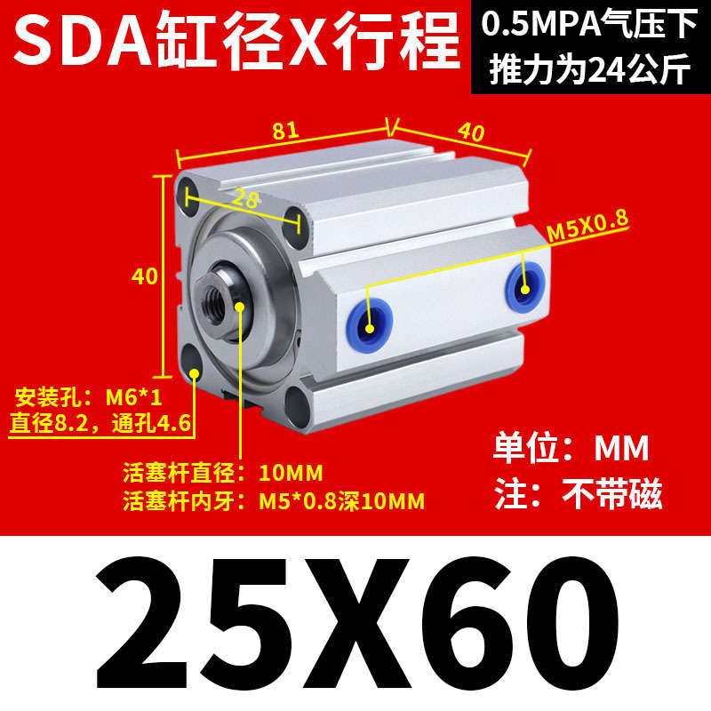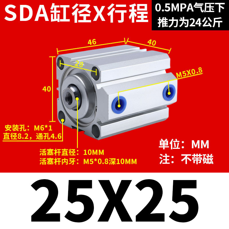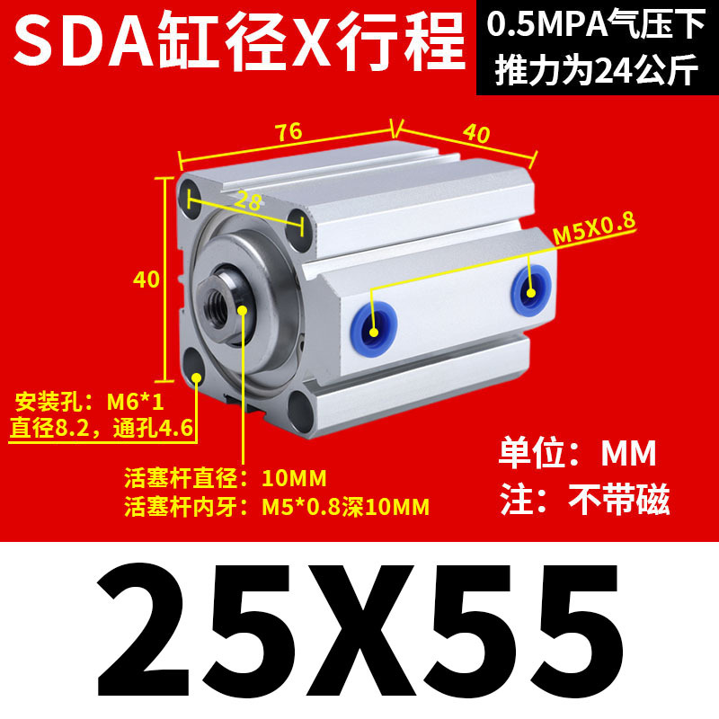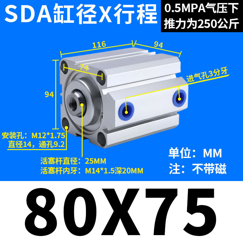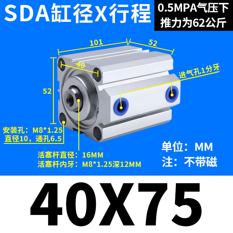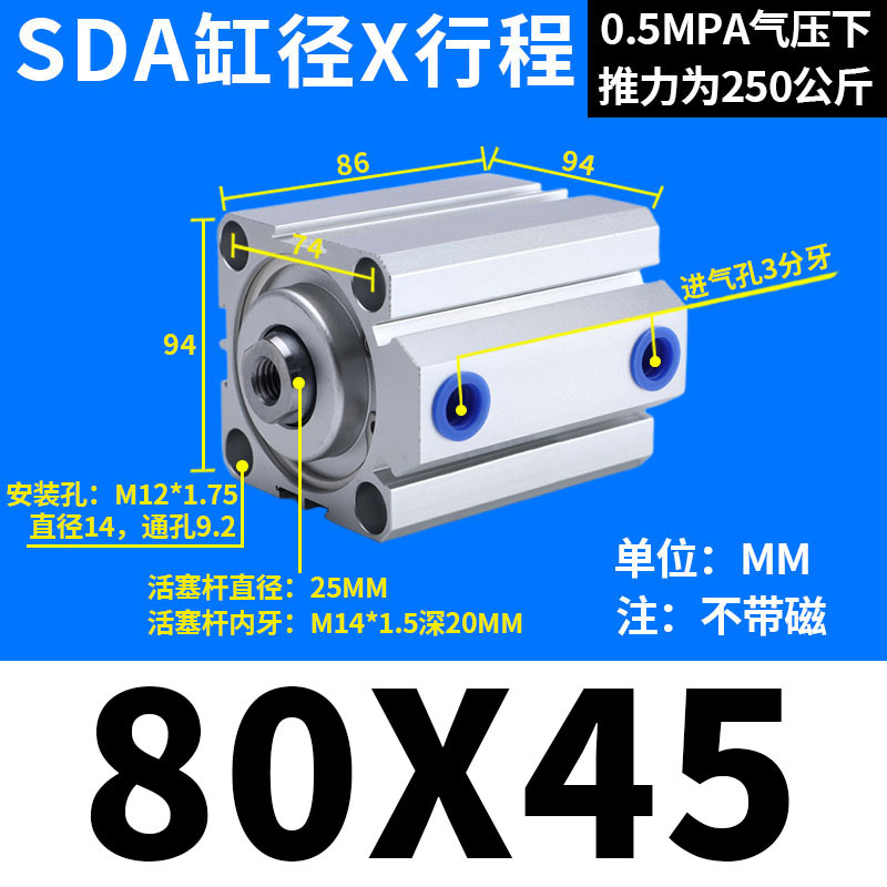 SDA32 작은 공압 120/16/25 얇은 30 실린더 50/63/80X40*10*60X70X90X100