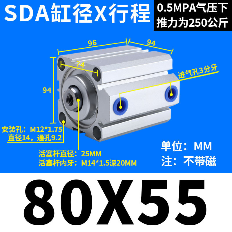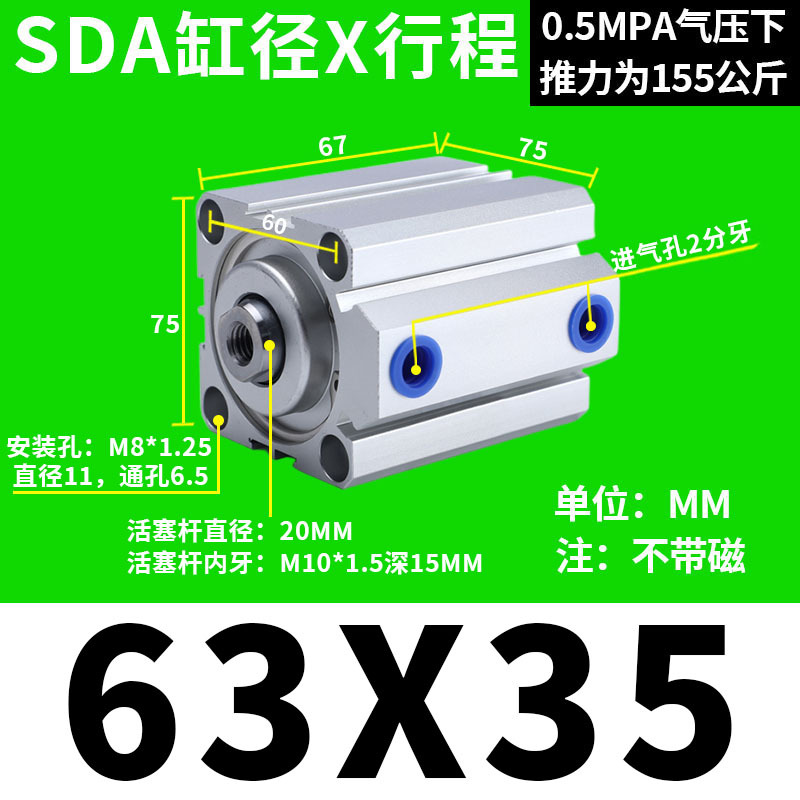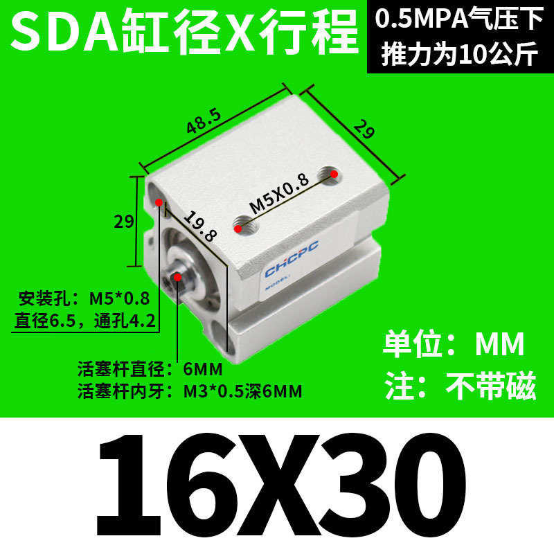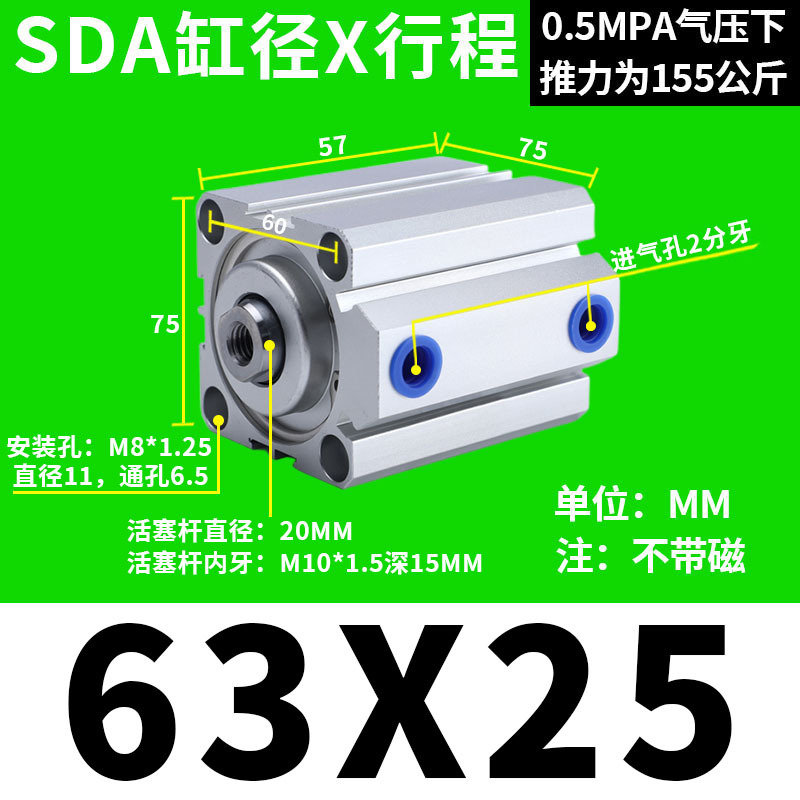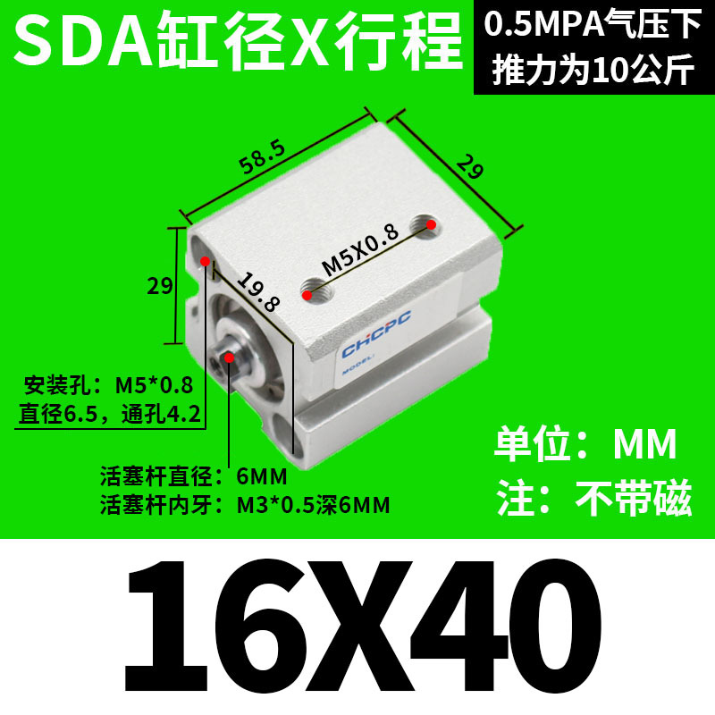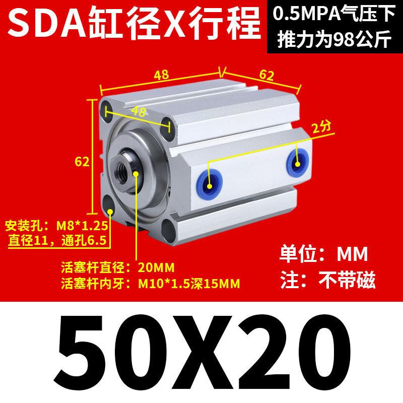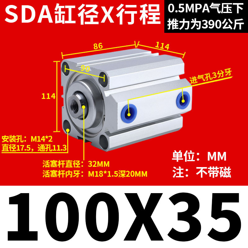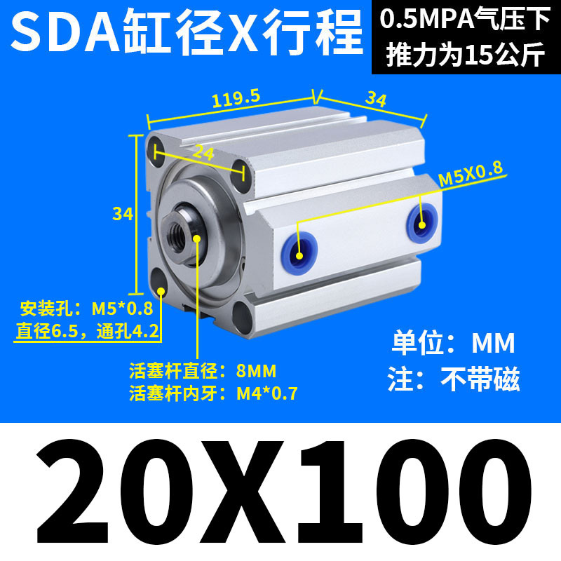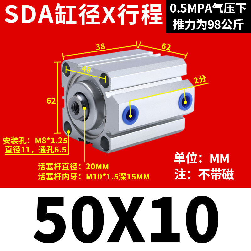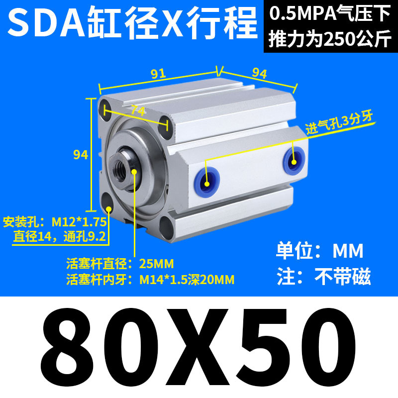 SDA32 작은 공압 120/16/25 얇은 30 실린더 50/63/80X40*10*60X70X90X100