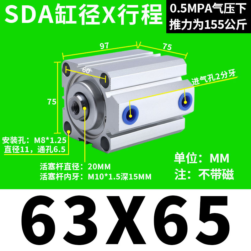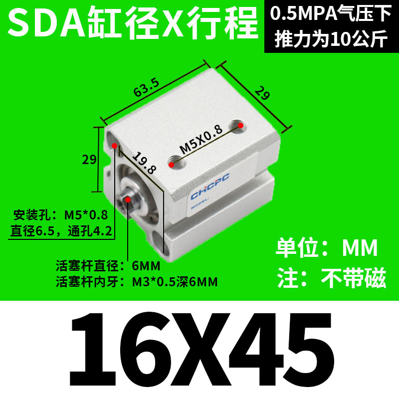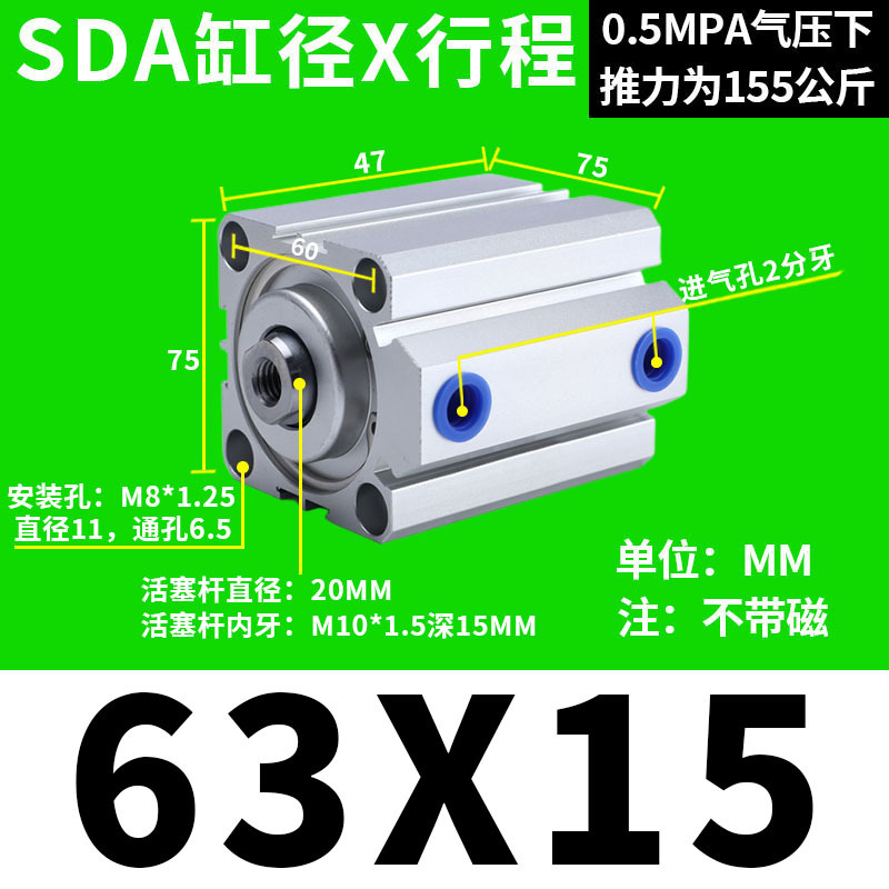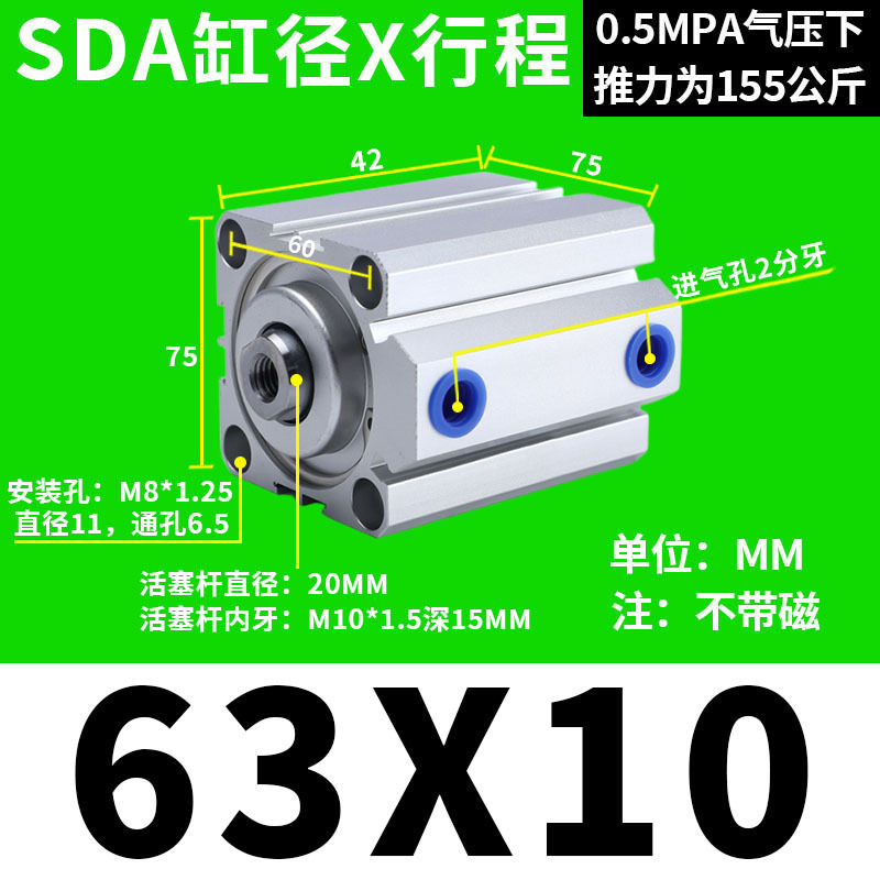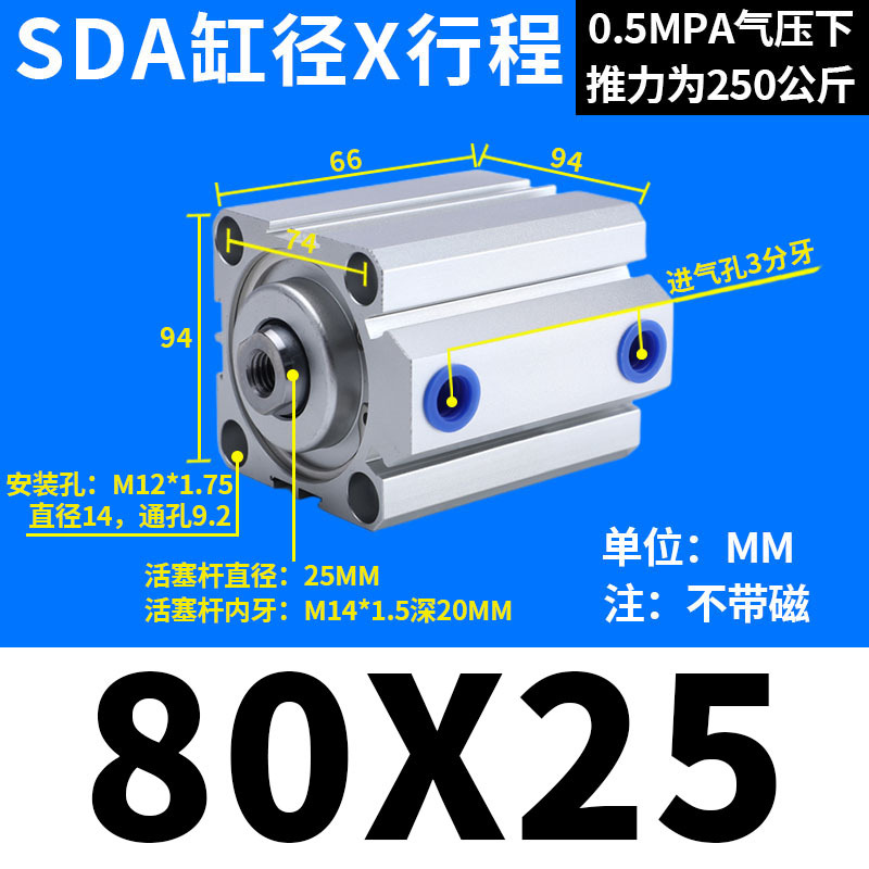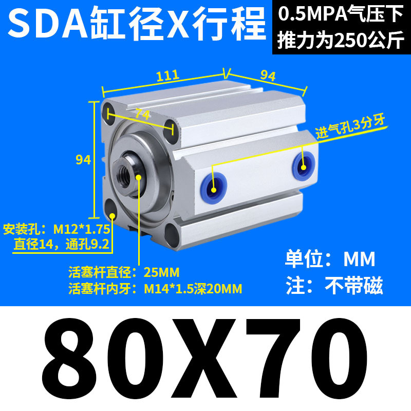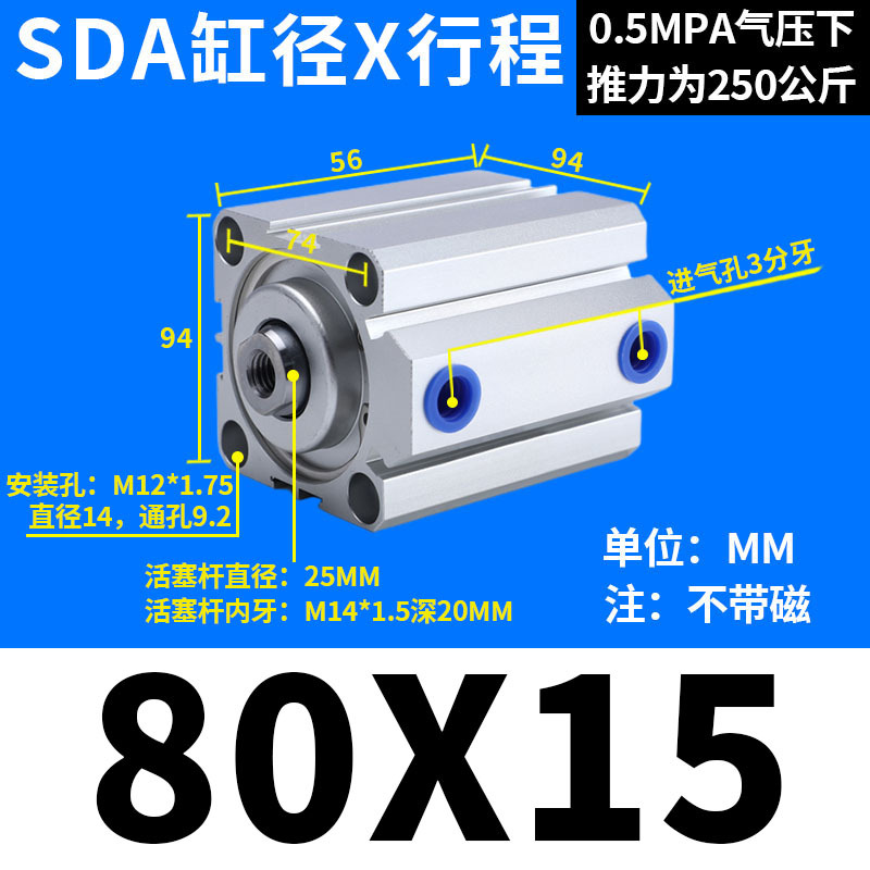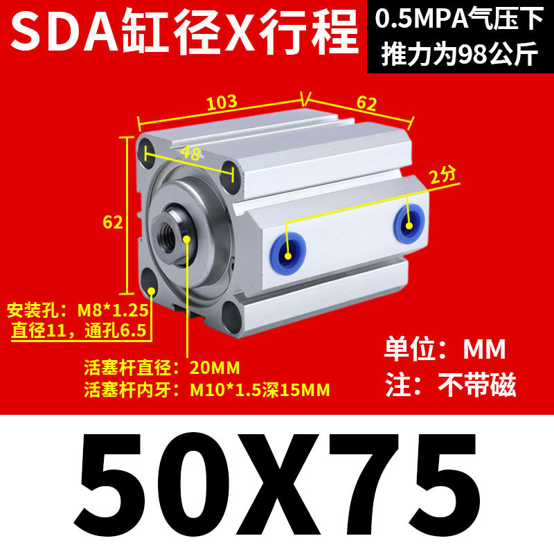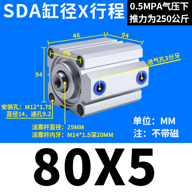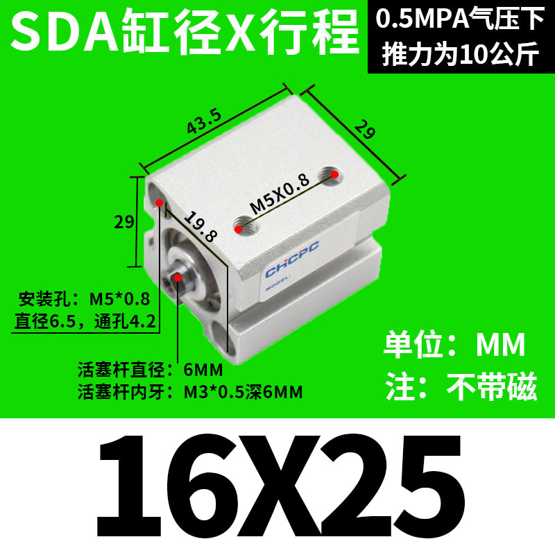 SDA32 작은 공압 120/16/25 얇은 30 실린더 50/63/80X40*10*60X70X90X100