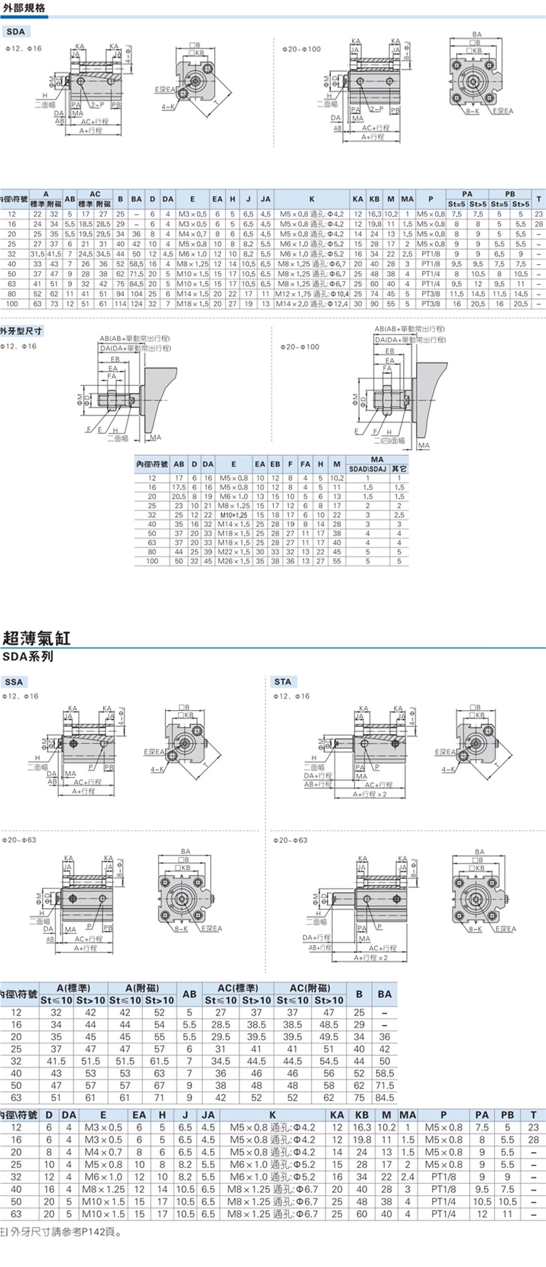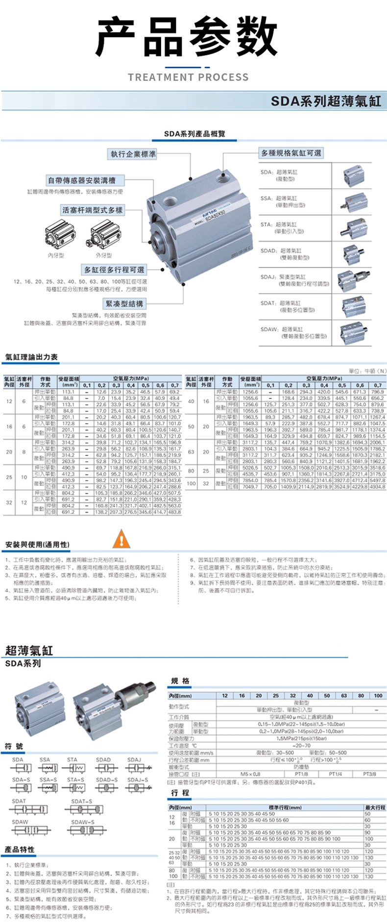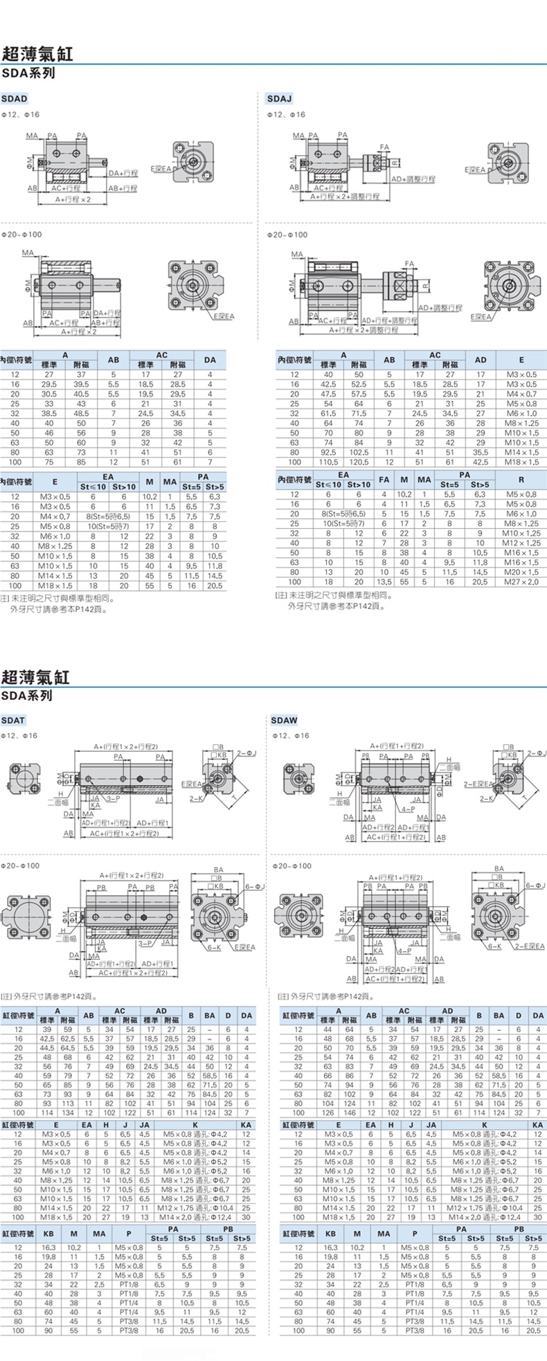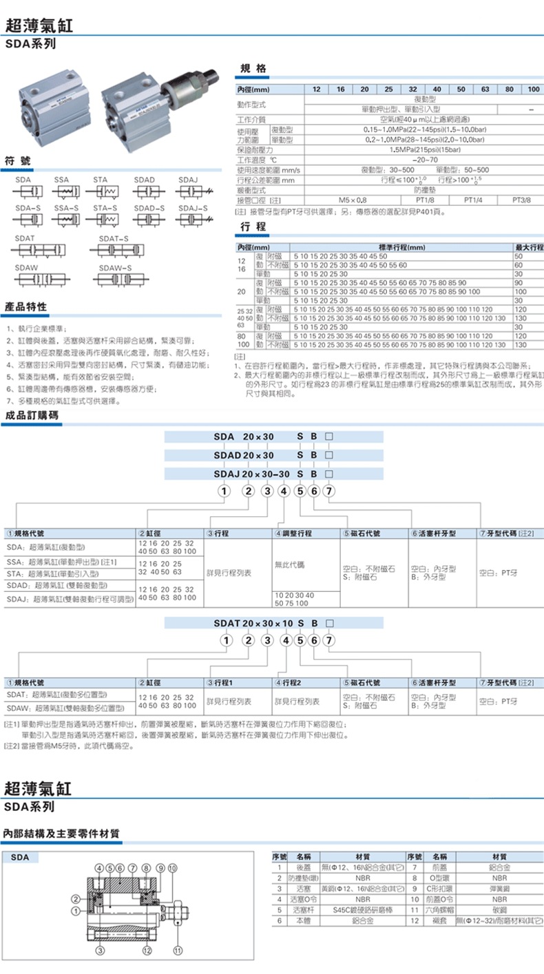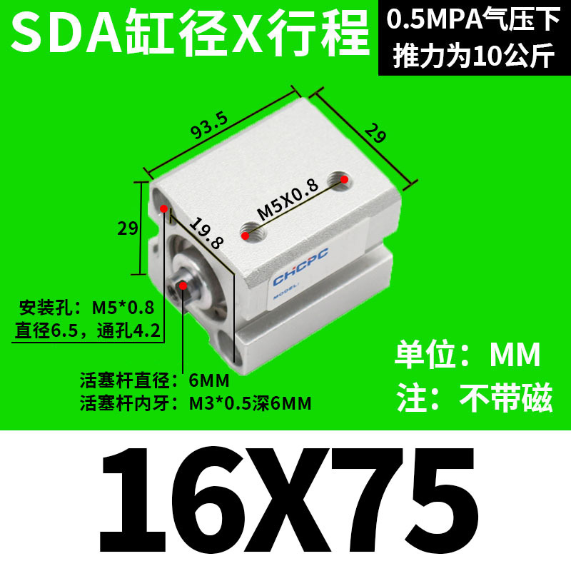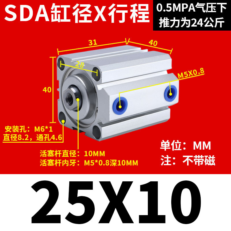 SDA32 작은 공압 120/16/25 얇은 30 실린더 50/63/80X40*10*60X70X90X100