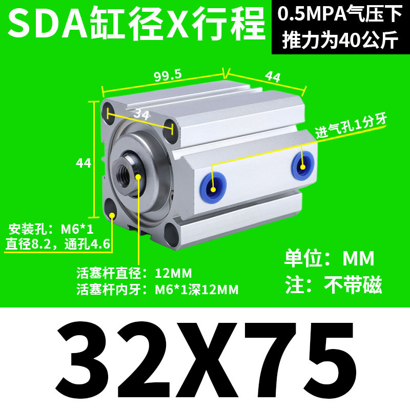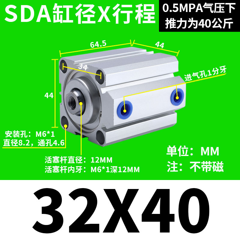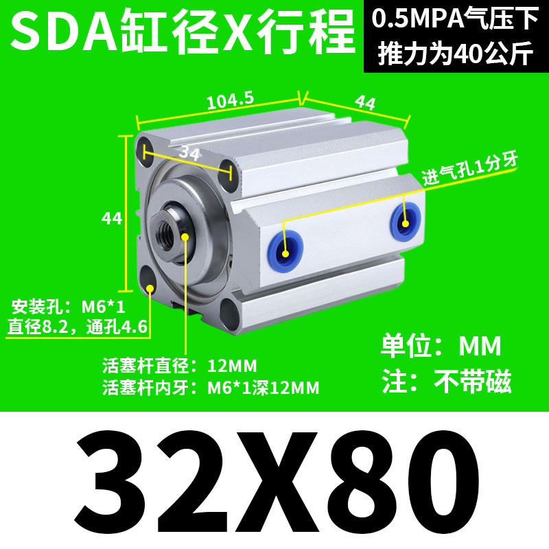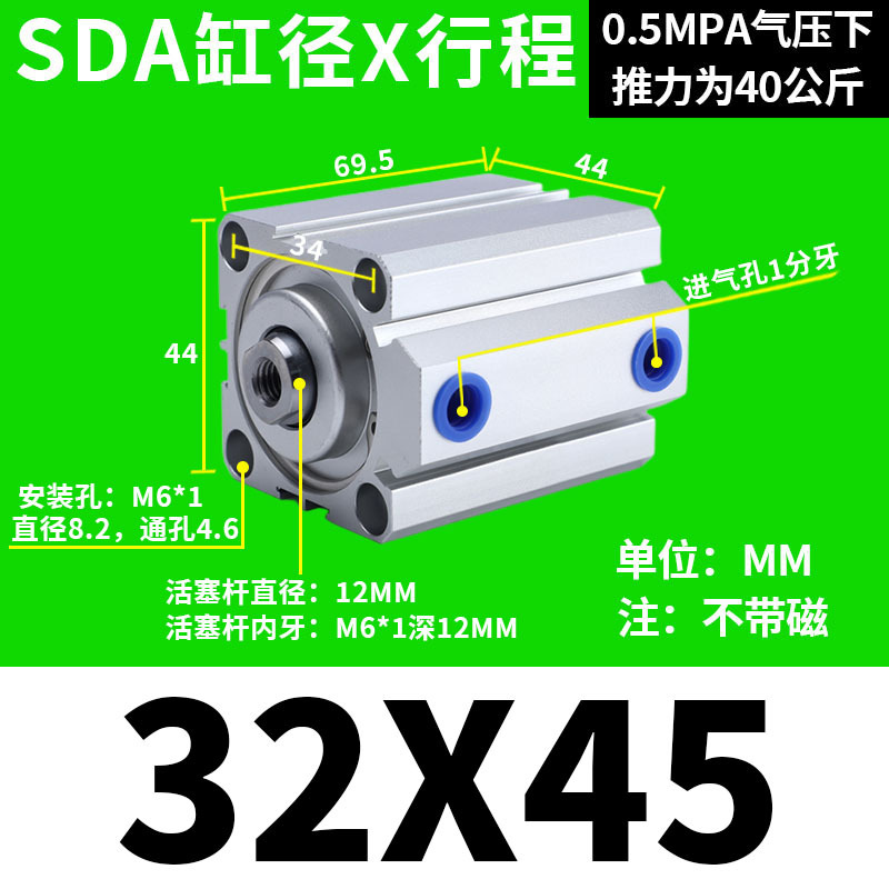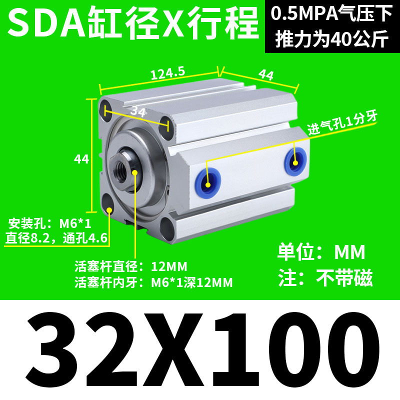 SDA32 작은 공압 120/16/25 얇은 30 실린더 50/63/80X40*10*60X70X90X100스토어 가기