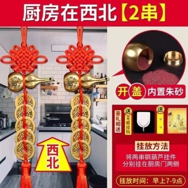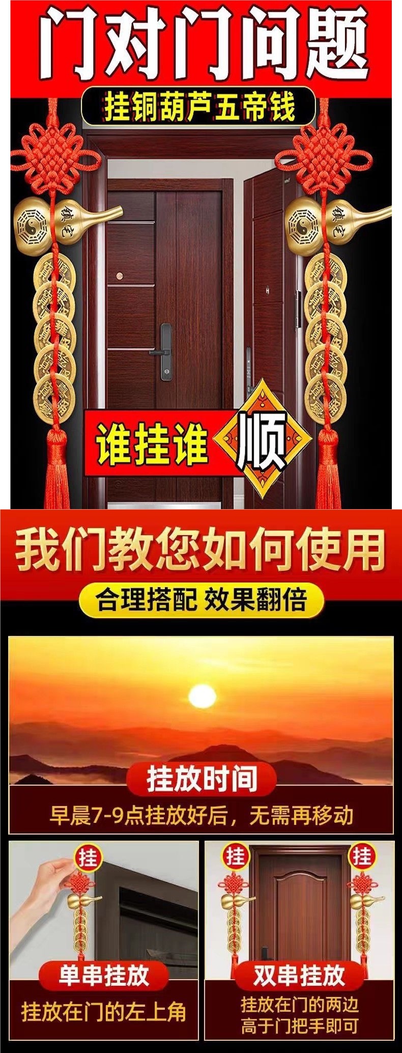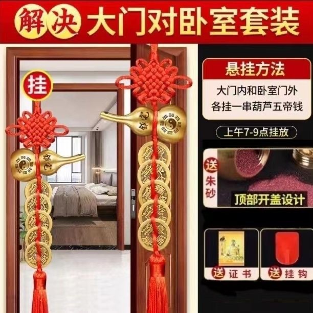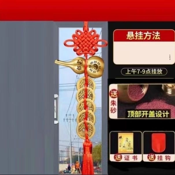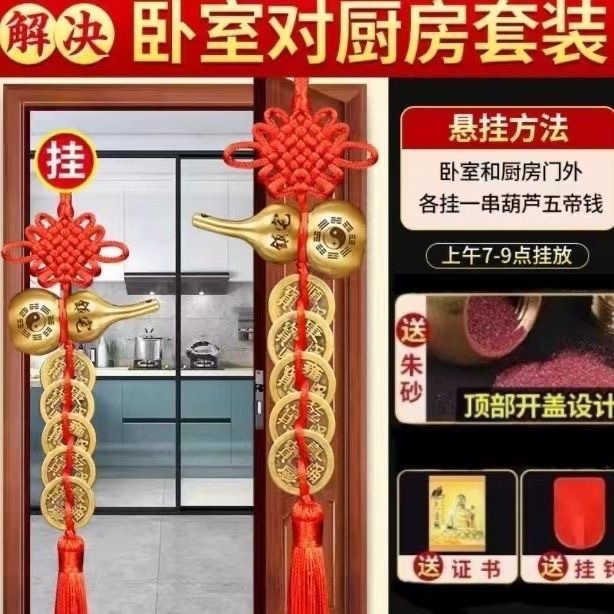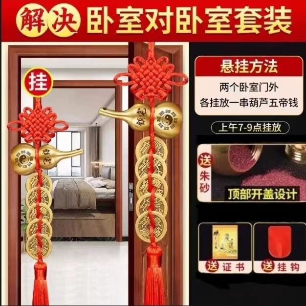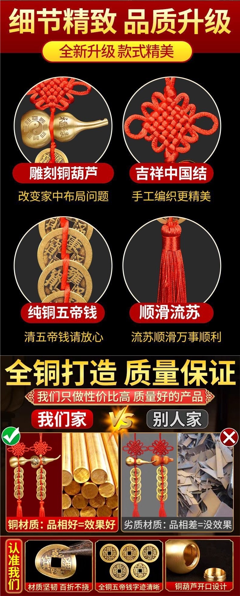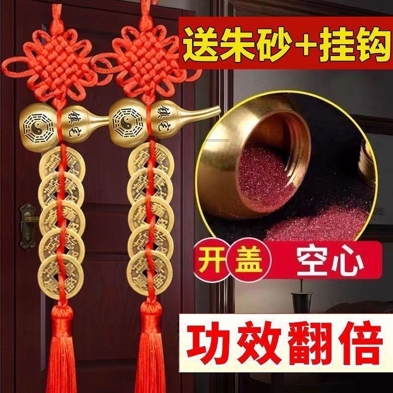 5 명의 황제 돈 문-문 구리 조롱박 실제 장식품 인간과 부 2 개의 번성 길조 매듭 펜던트 홈 타운 하우스 해결 풍수스토어 가기