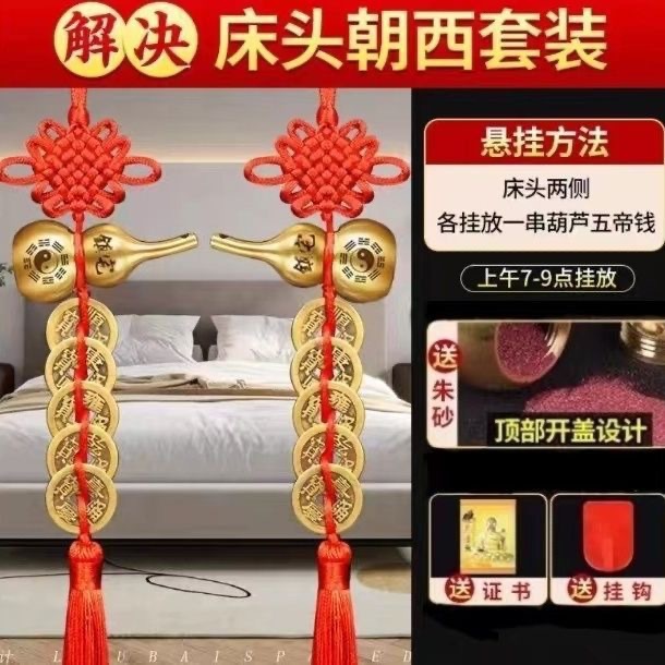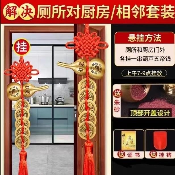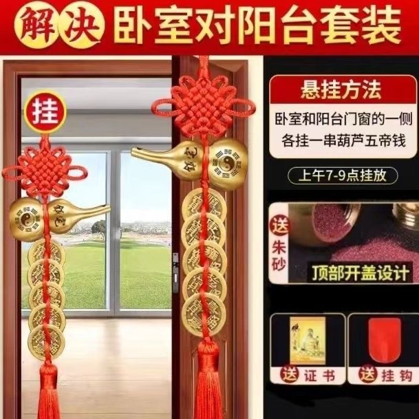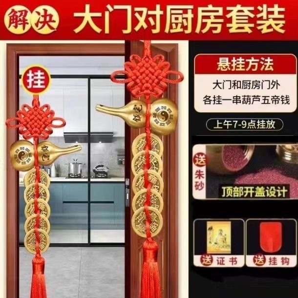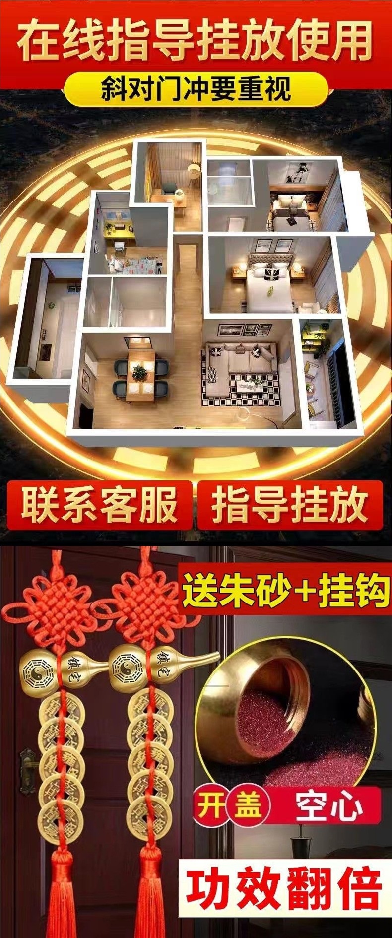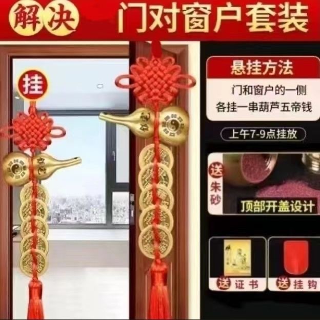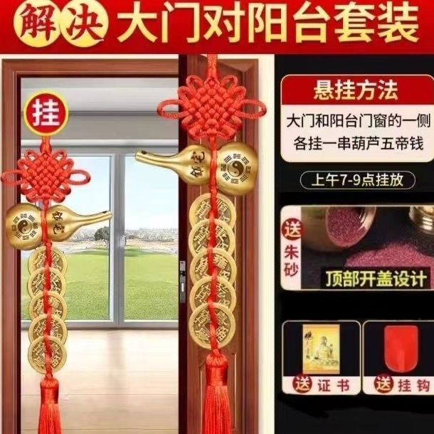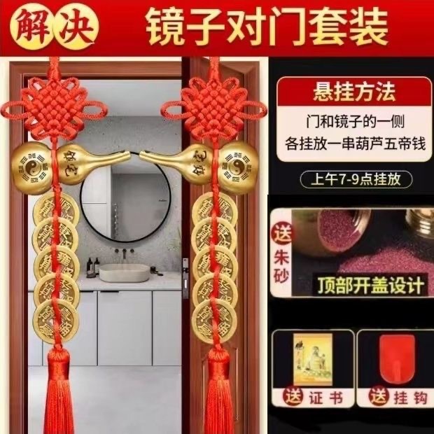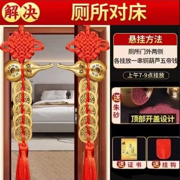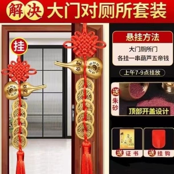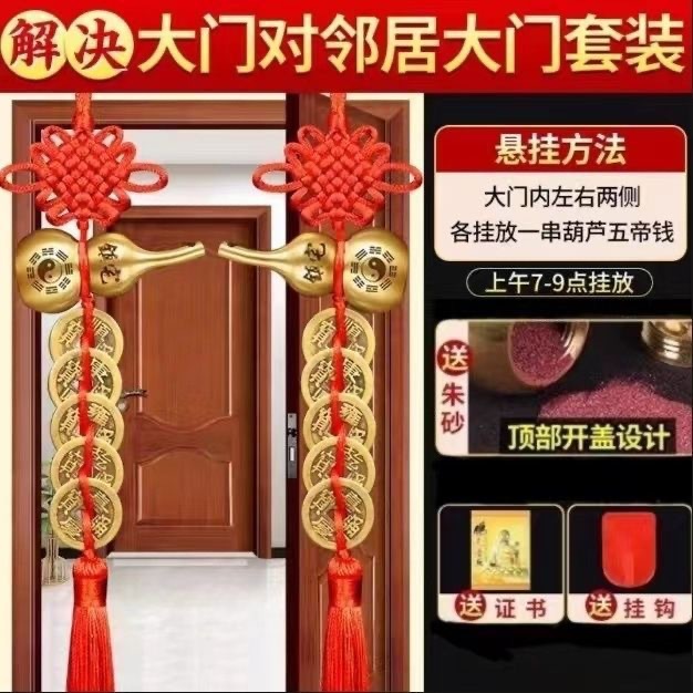 5 명의 황제 돈 문-문 구리 조롱박 실제 장식품 인간과 부 2 개의 번성 길조 매듭 펜던트 홈 타운 하우스 해결 풍수스토어 가기
