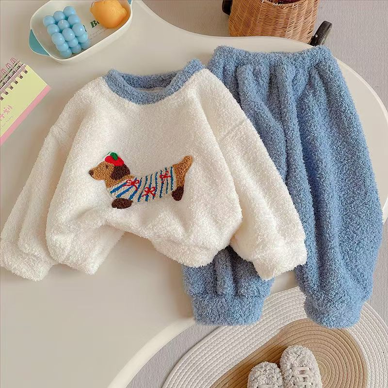 가을 겨울 세트 소년 플란넬 새 만화 따뜻한 두꺼운 남자 홈 옷 어린이 산호 양털 잠옷