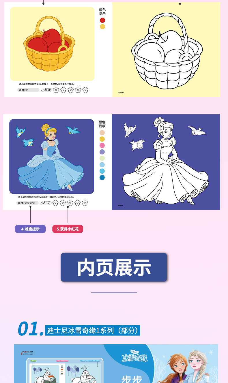 • 겨울왕국 단계별 컬러링북 4권 + 오일파스텔 18색
