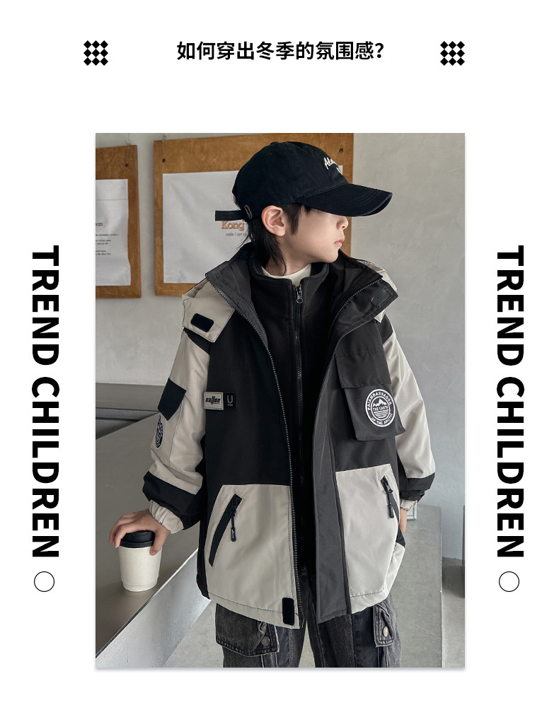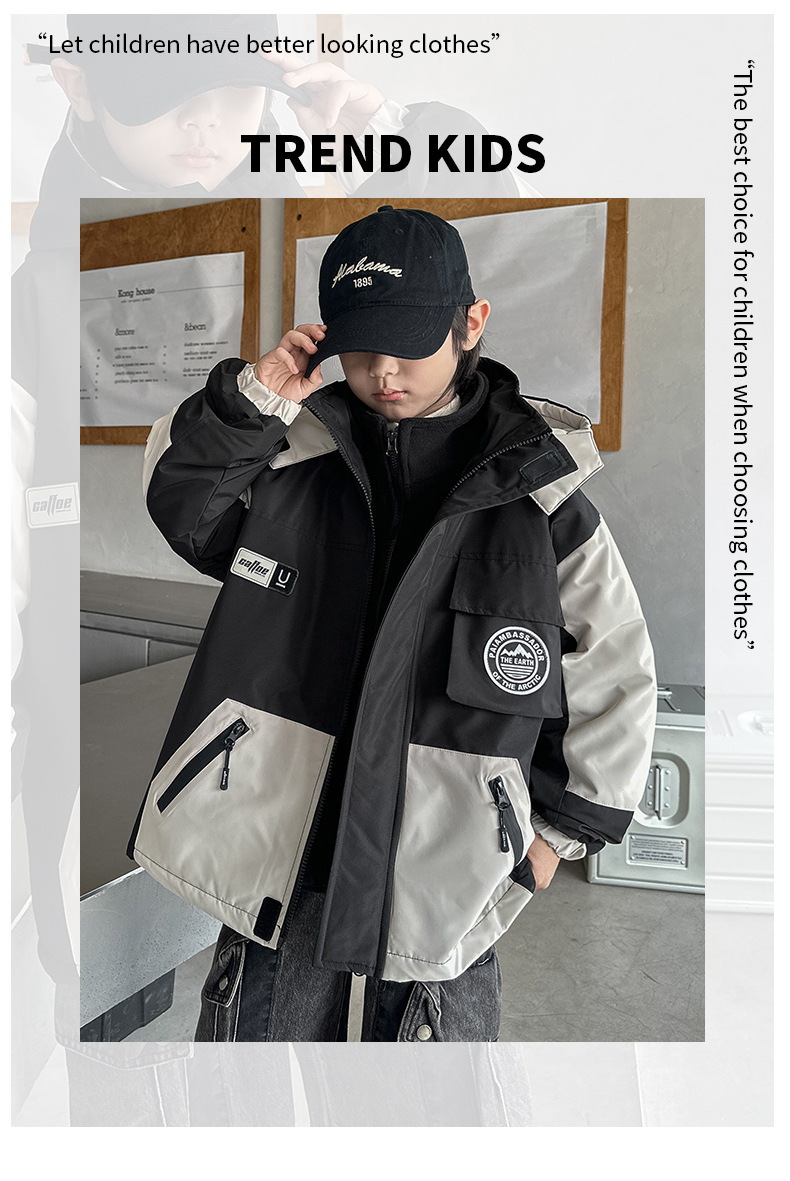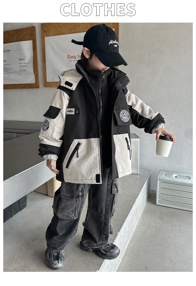 소년 재킷 3-in-One 가을, 겨울 2024 새로운 겨울 재킷 폴라 플리스 아동용 벨벳 라이너 겨울 재킷스토어 가기