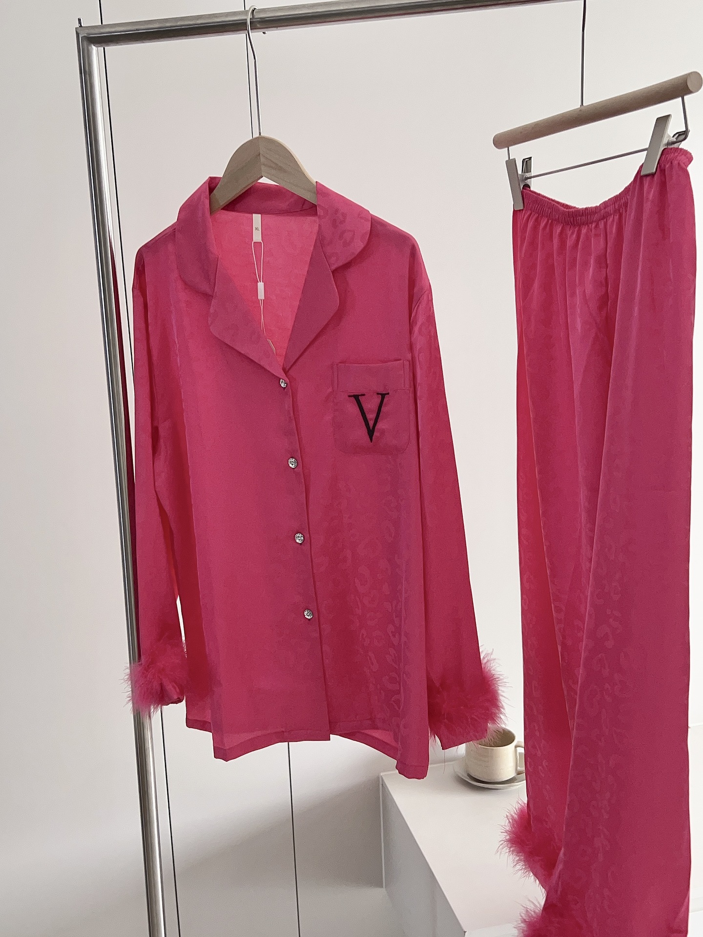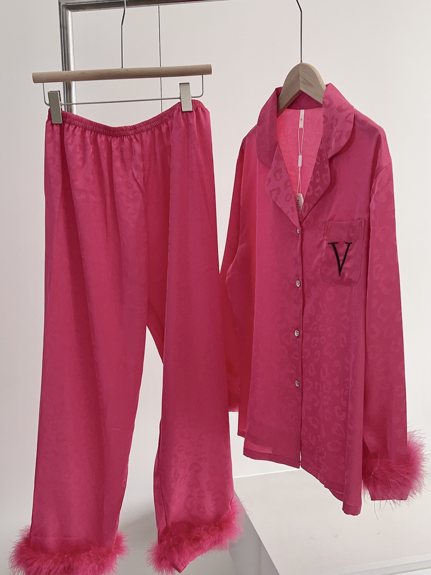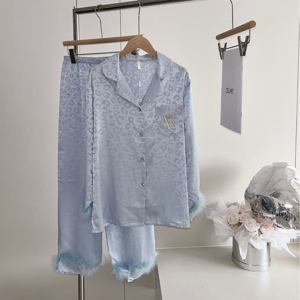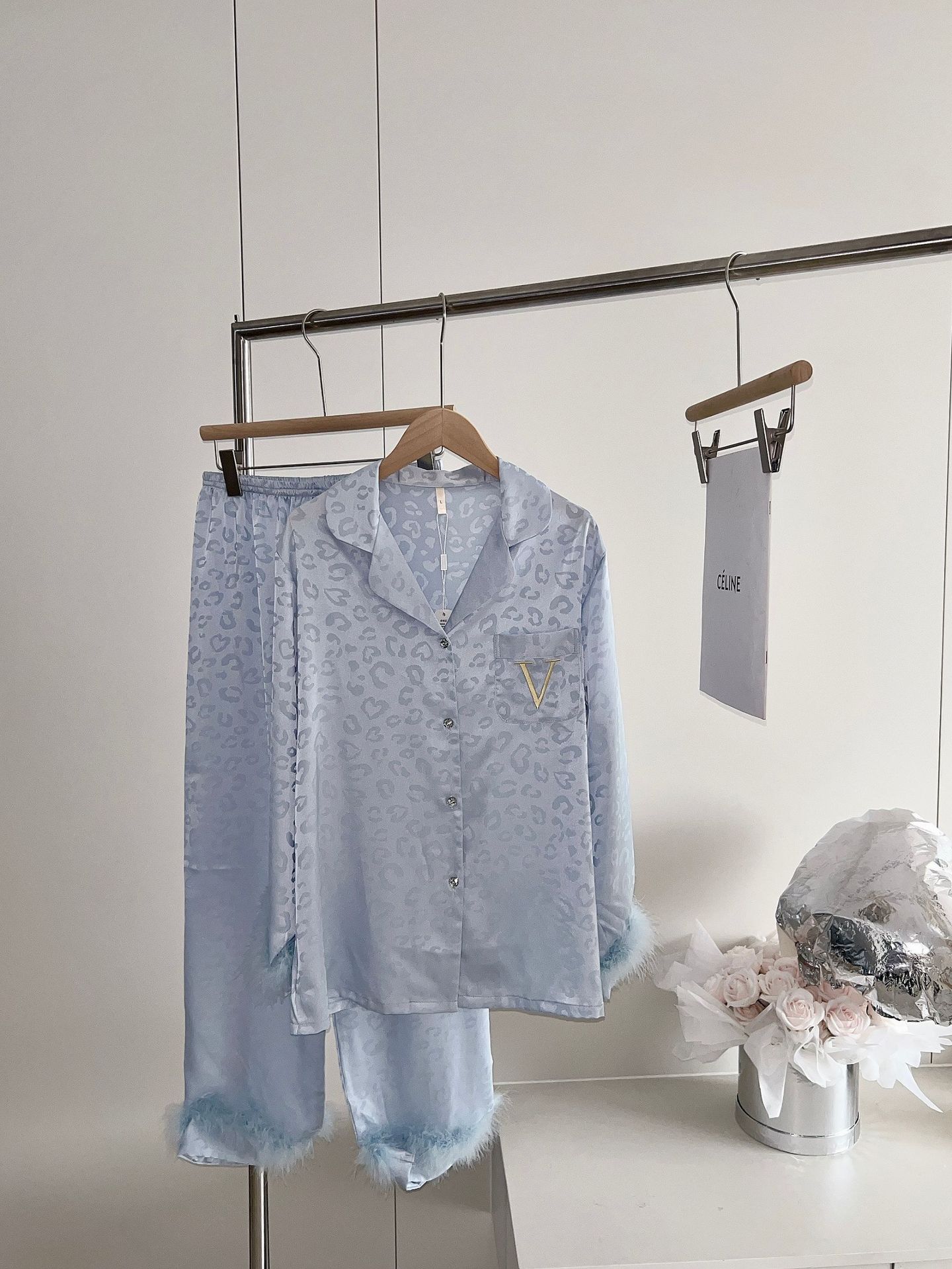 긴팔 아이스 실크 파자마 하이 엔드 깃털 느슨한 여성 봄과 가을 의상 홈 의류 세트스토어 가기