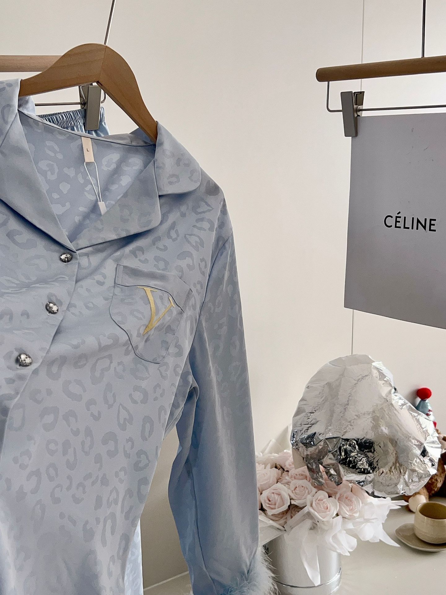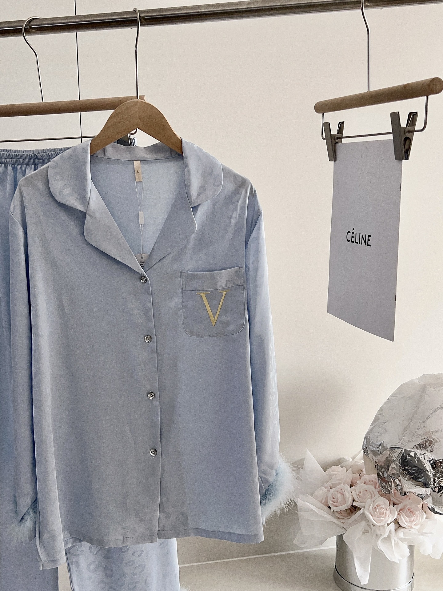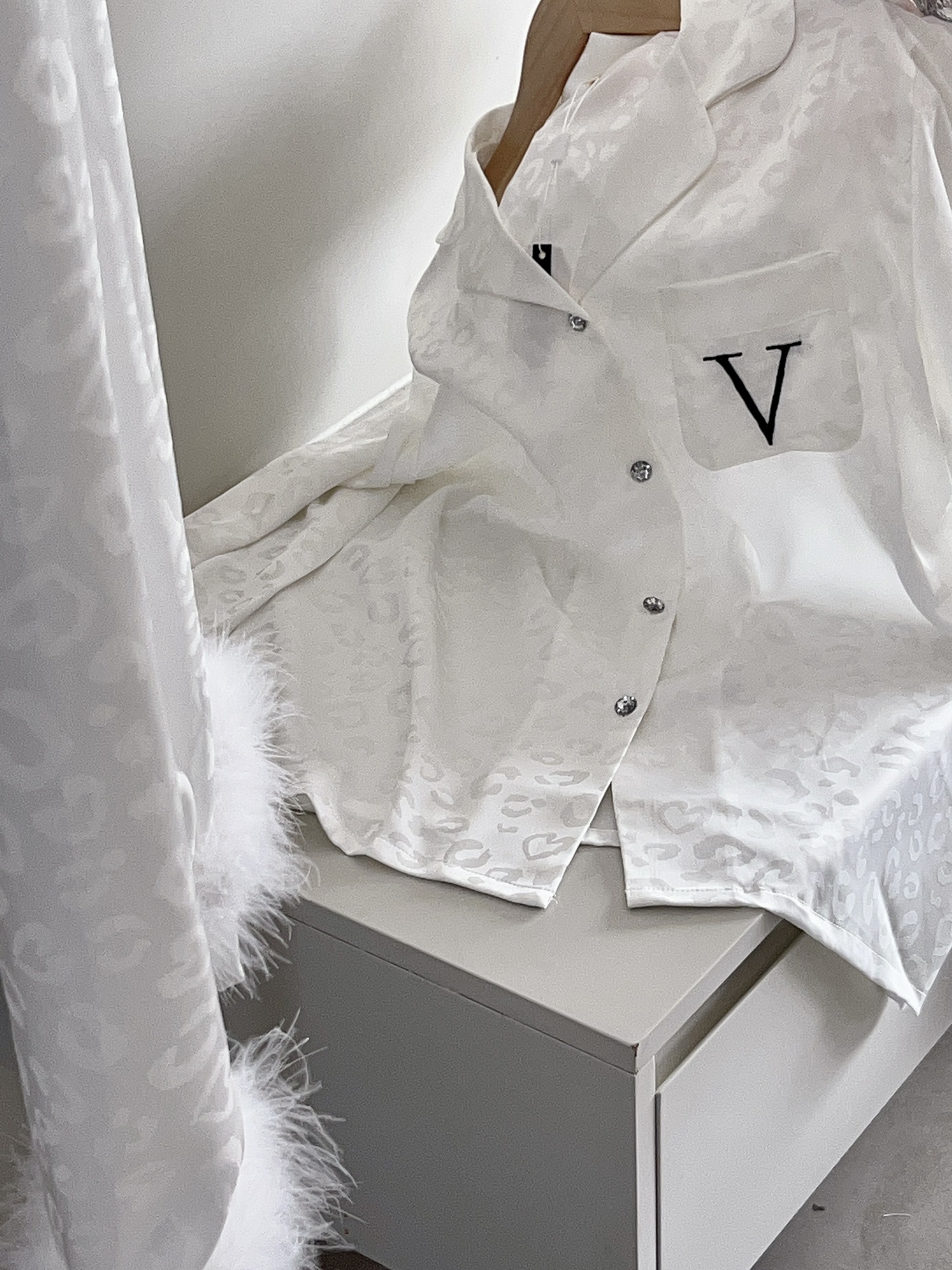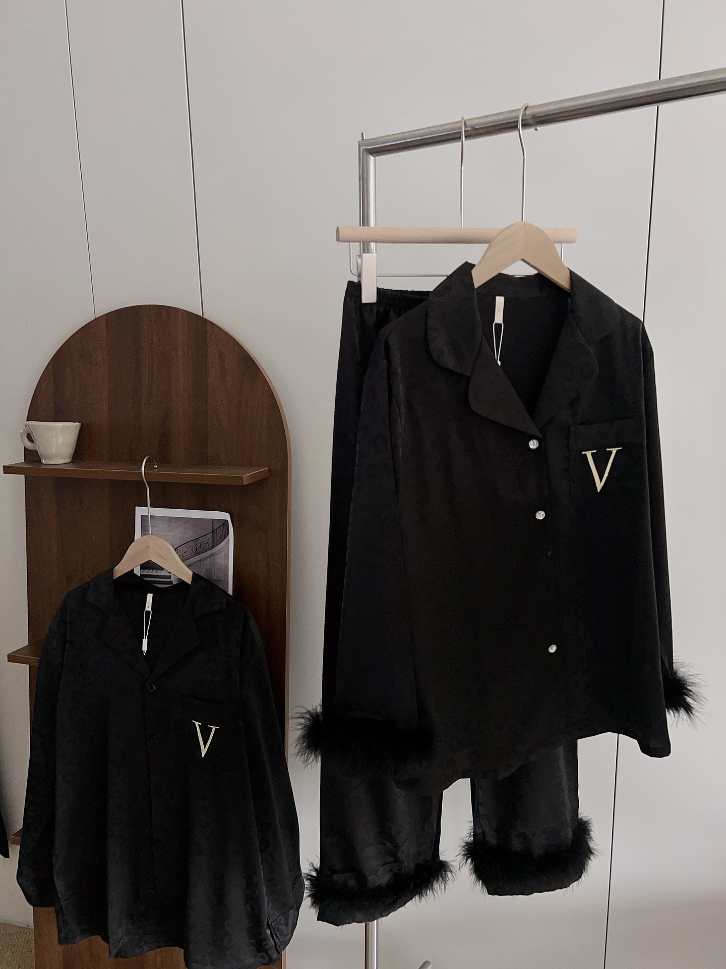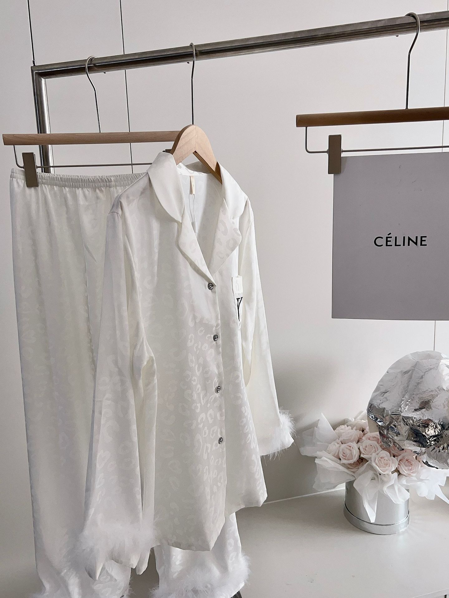 긴팔 아이스 실크 파자마 하이 엔드 깃털 느슨한 여성 봄과 가을 의상 홈 의류 세트스토어 가기