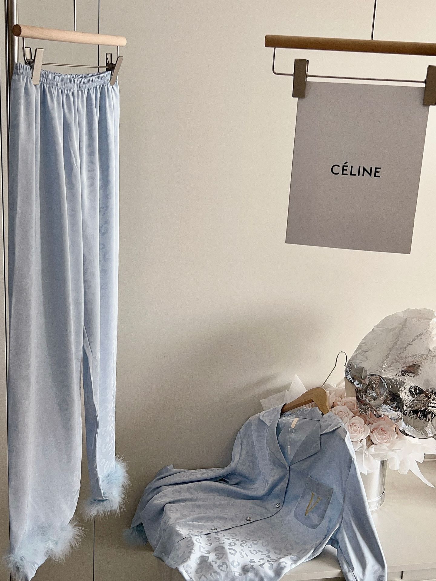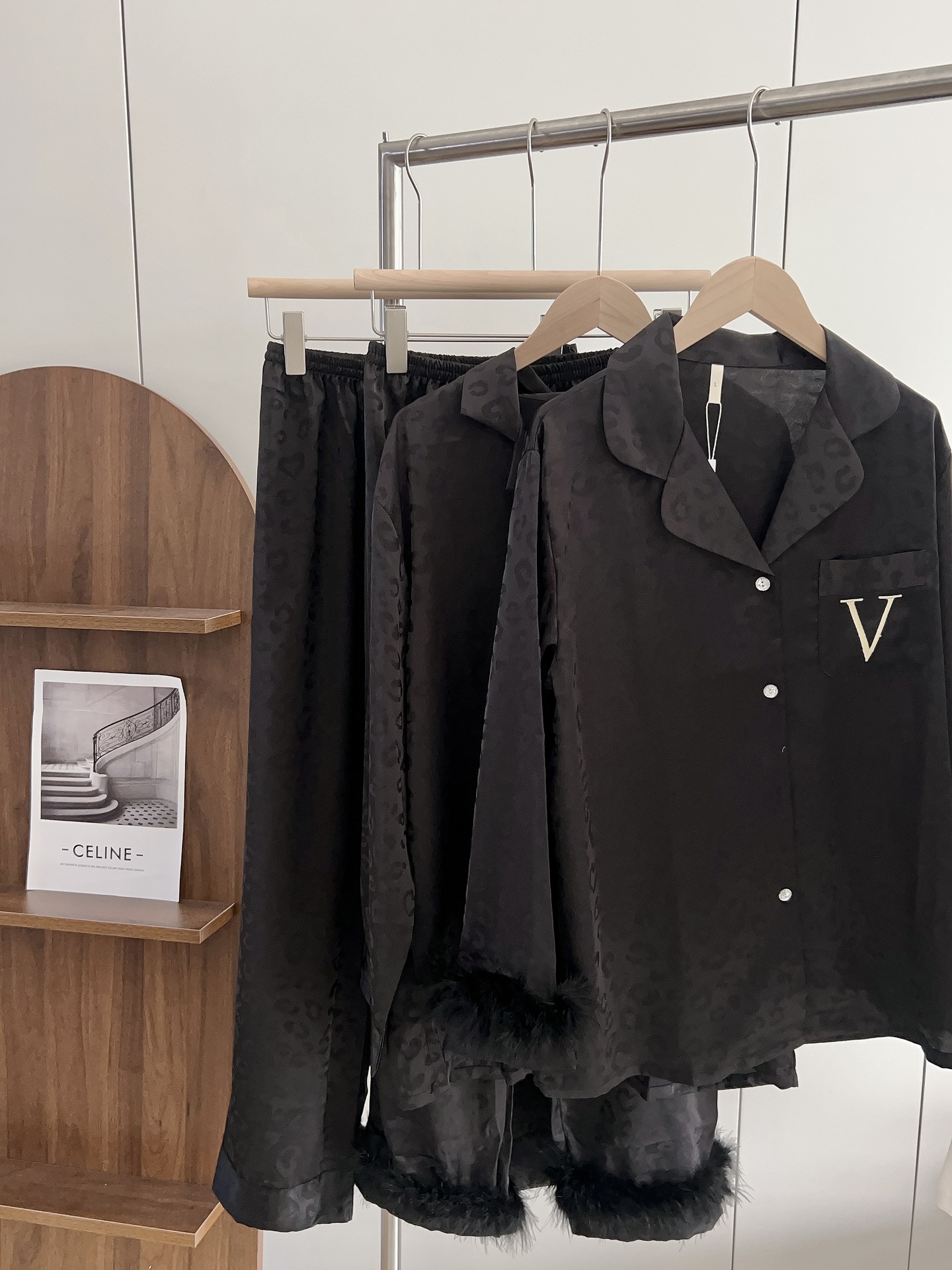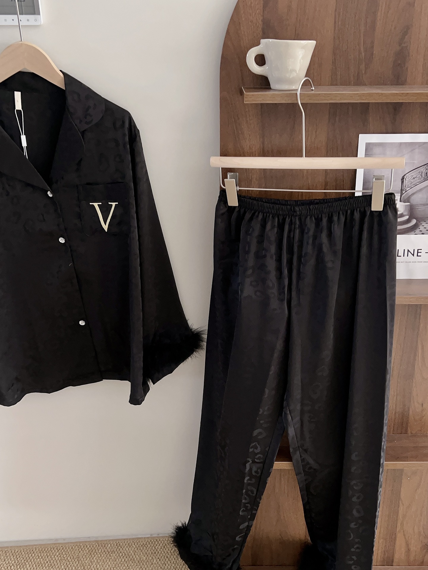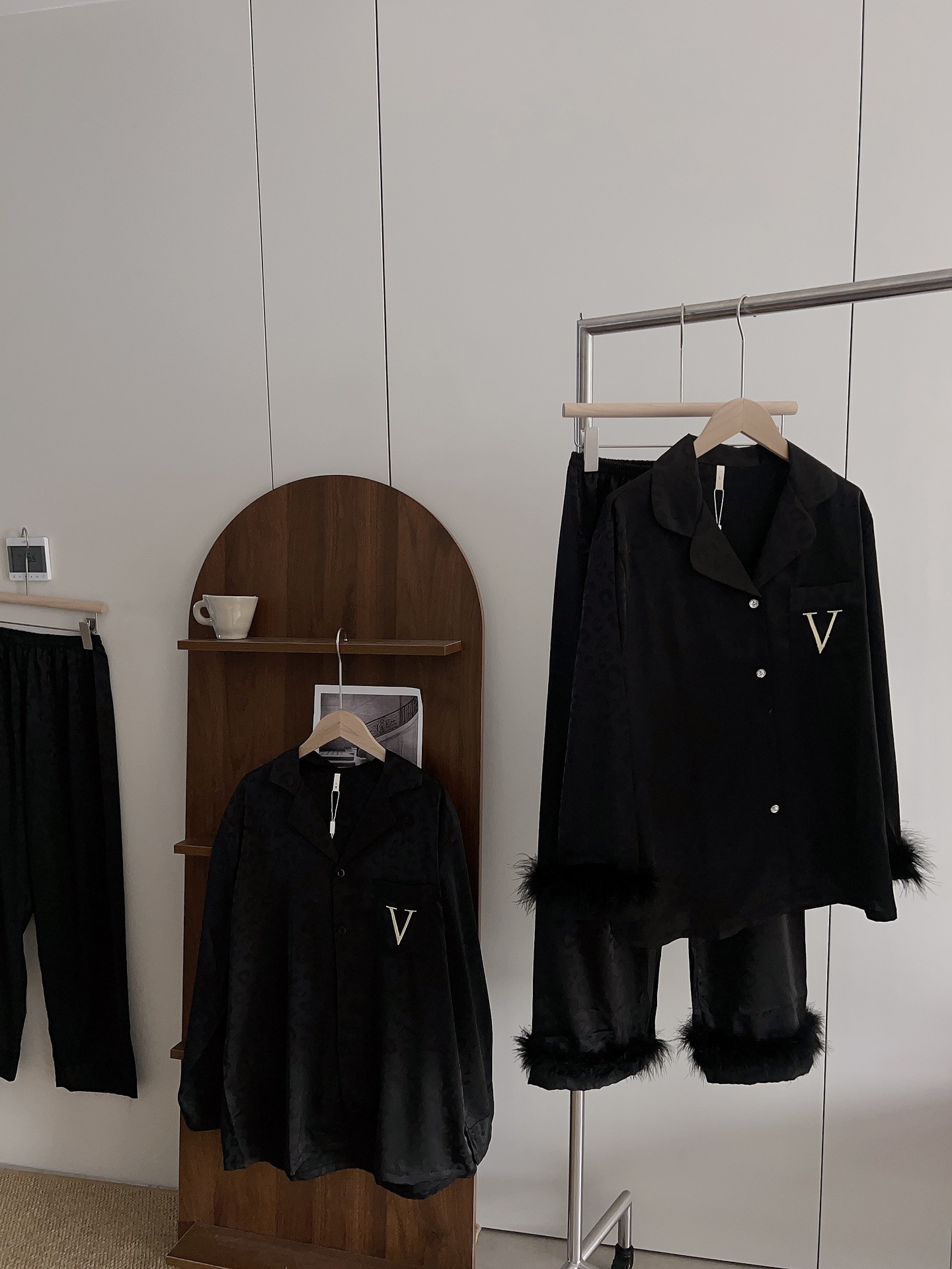 긴팔 아이스 실크 파자마 하이 엔드 깃털 느슨한 여성 봄과 가을 의상 홈 의류 세트스토어 가기
