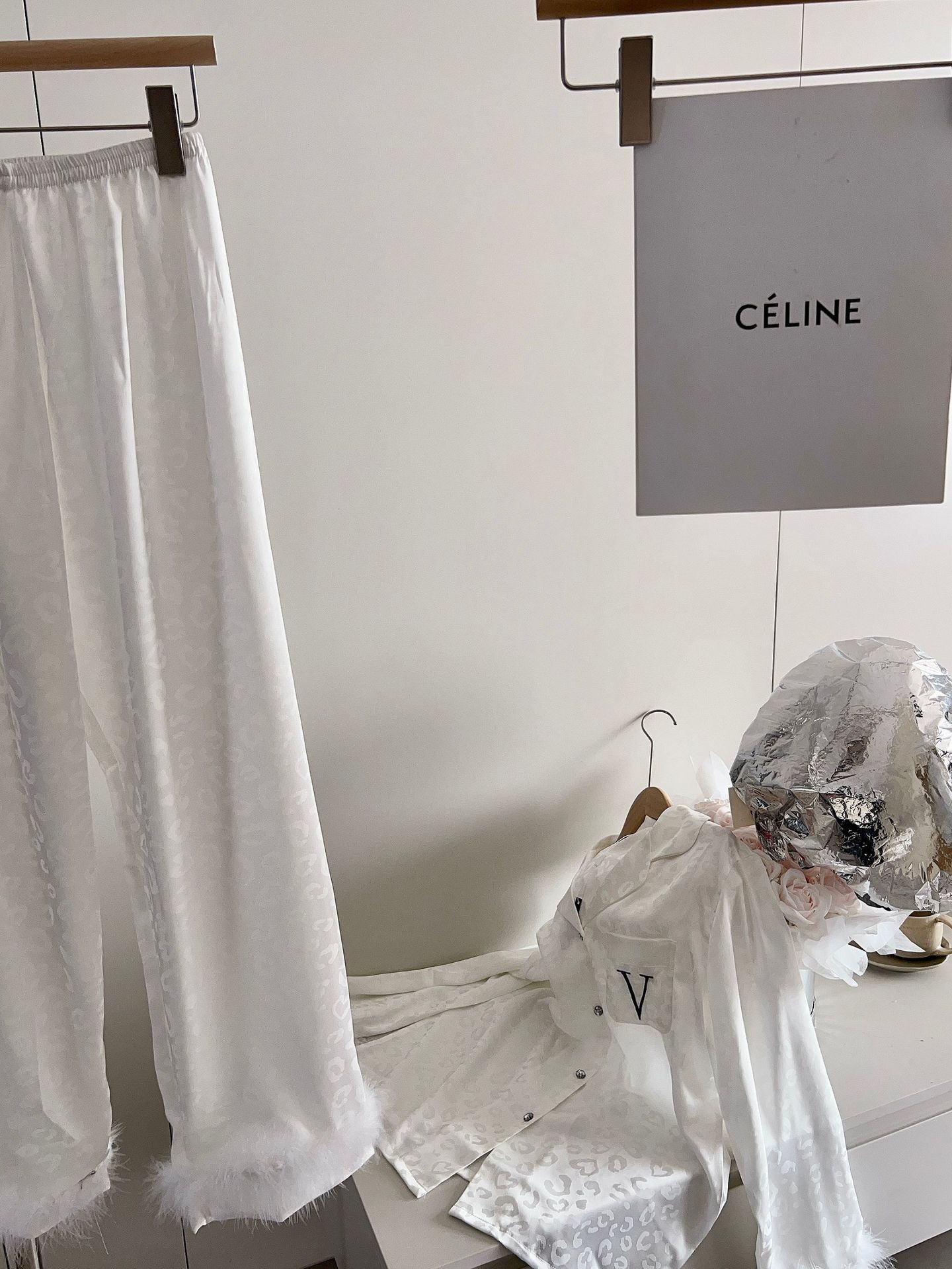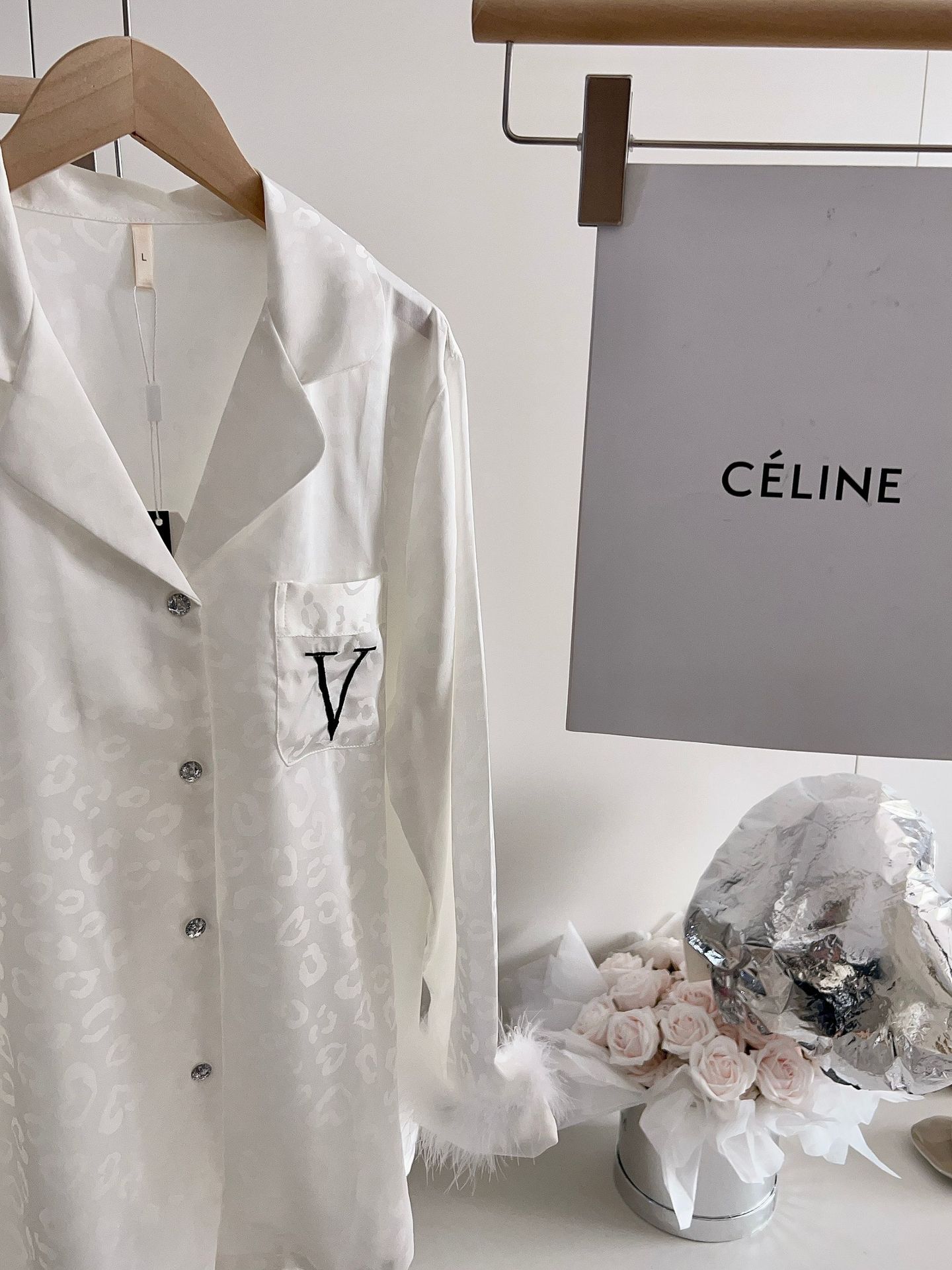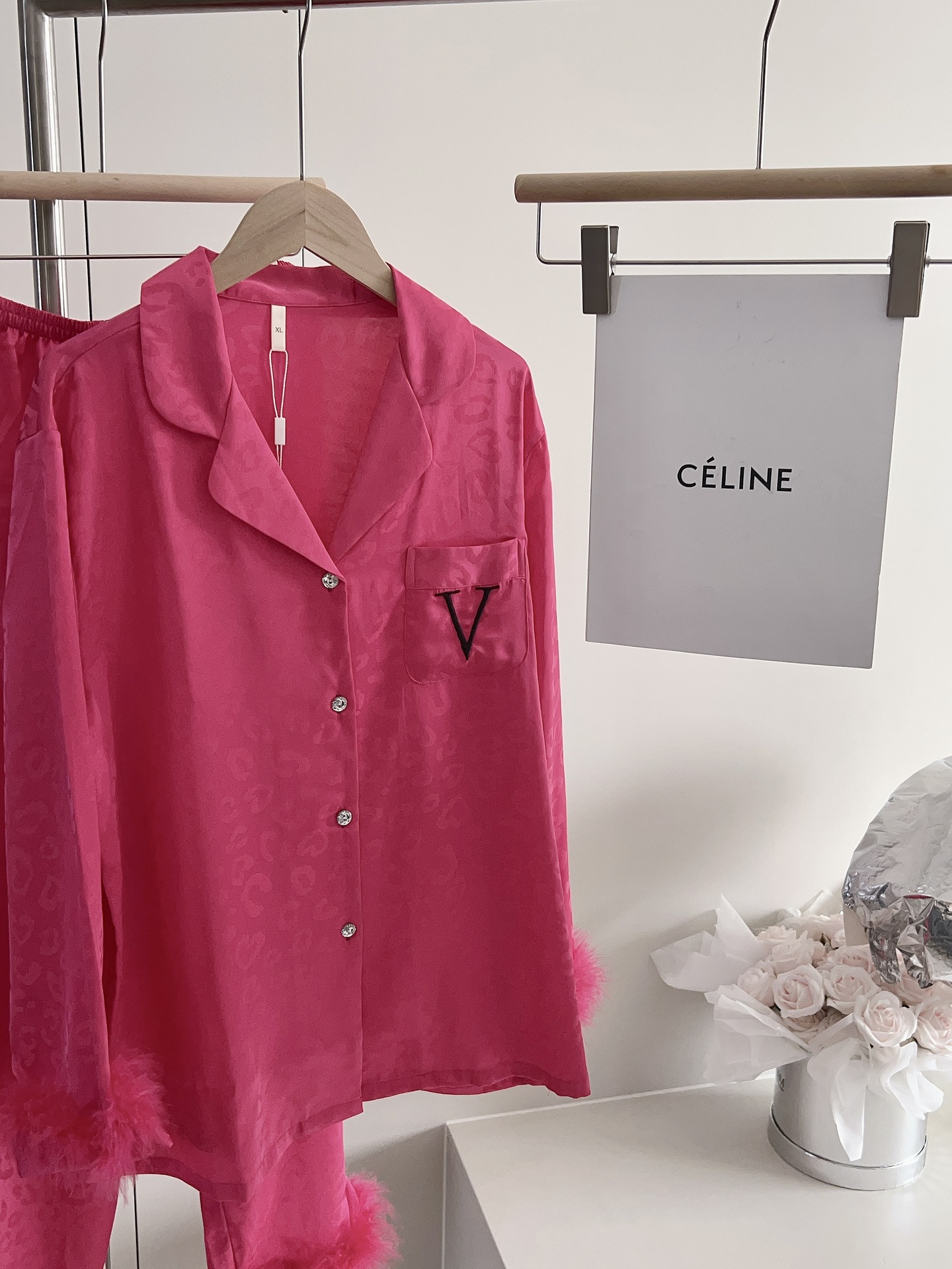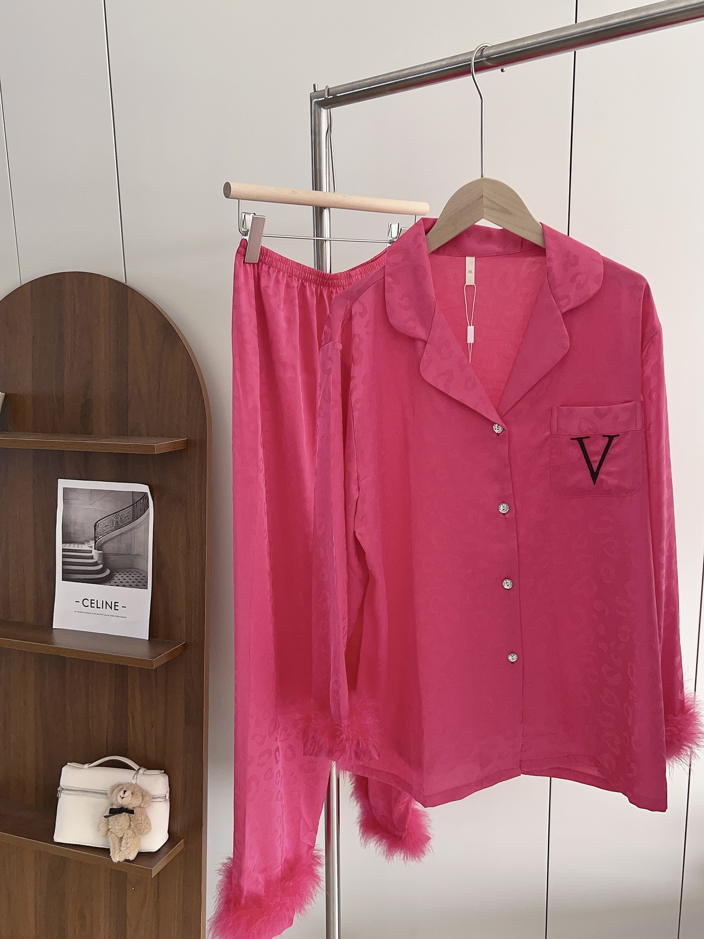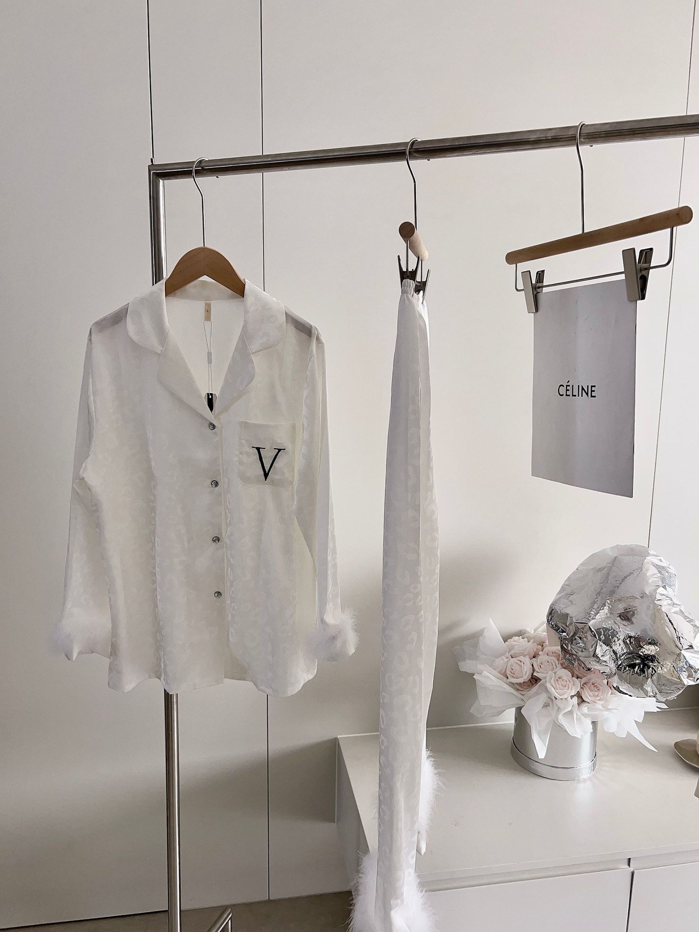 긴팔 아이스 실크 파자마 하이 엔드 깃털 느슨한 여성 봄과 가을 의상 홈 의류 세트스토어 가기