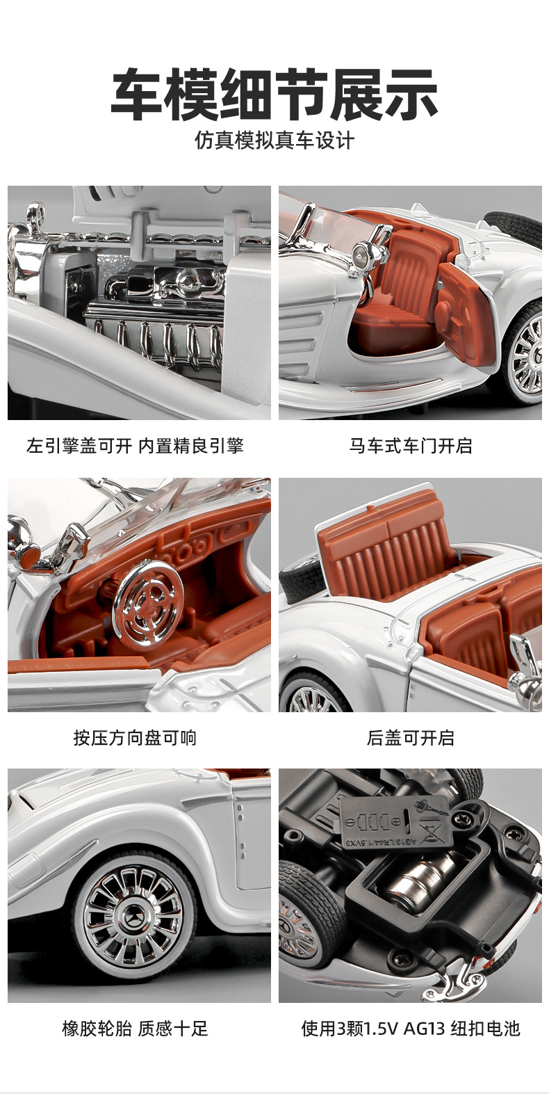 Huina 1:32 Da Ben 클래식 자동차 500K 럭셔리카 로고 모델 시뮬레이션 합금 Acousto-optic 전원 컨버터블 자동차 모델