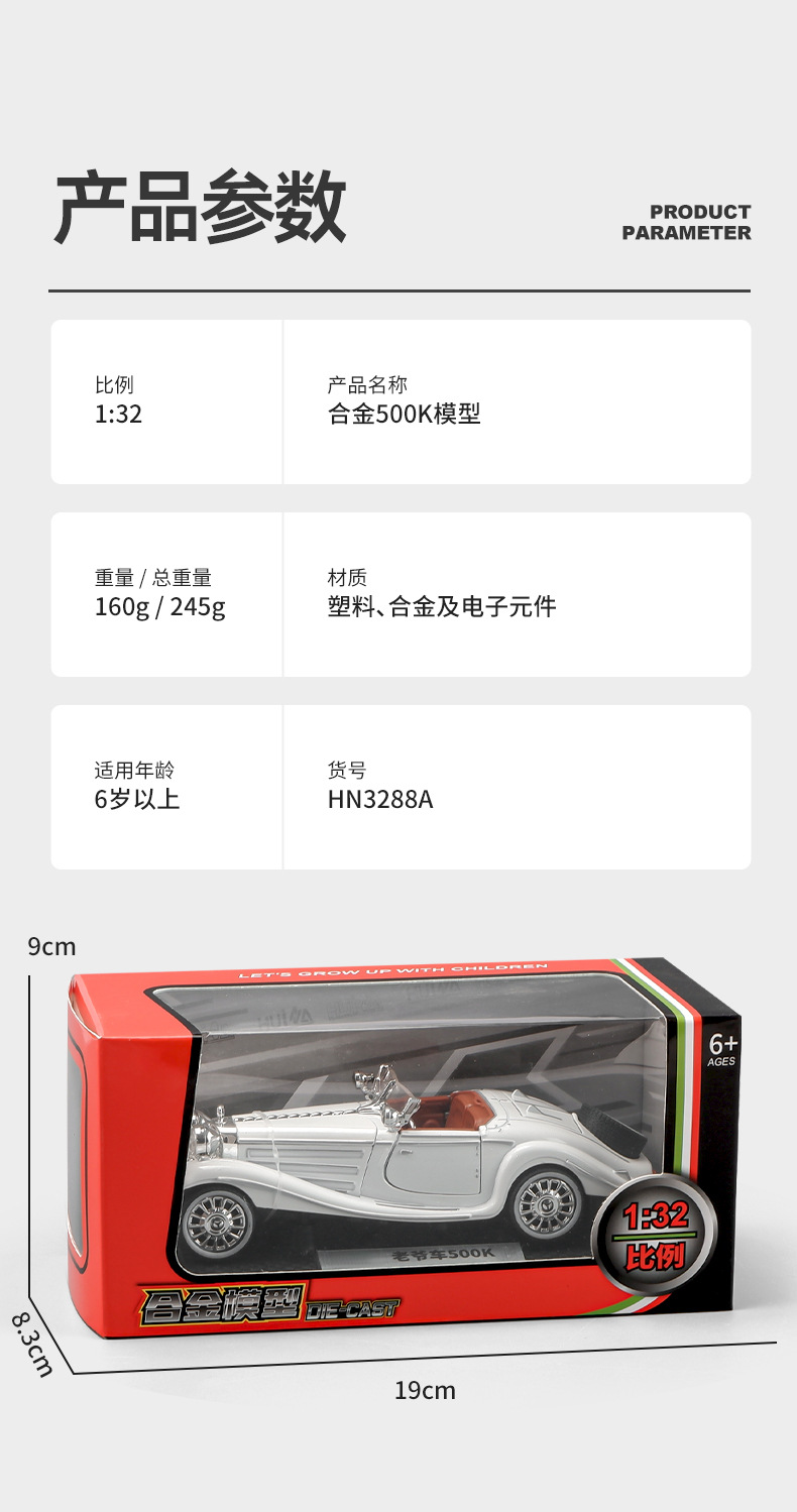 Huina 1:32 Da Ben 클래식 자동차 500K 럭셔리카 로고 모델 시뮬레이션 합금 Acousto-optic 전원 컨버터블 자동차 모델스토어 가기