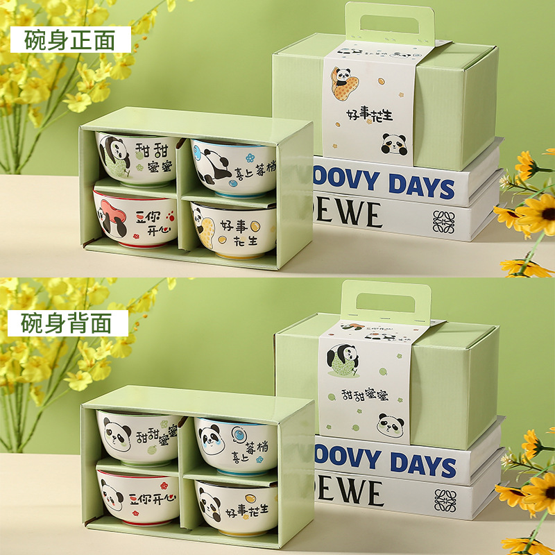 • 팬더 그릇 4개와 젓가락 4개 (선물 상자)
