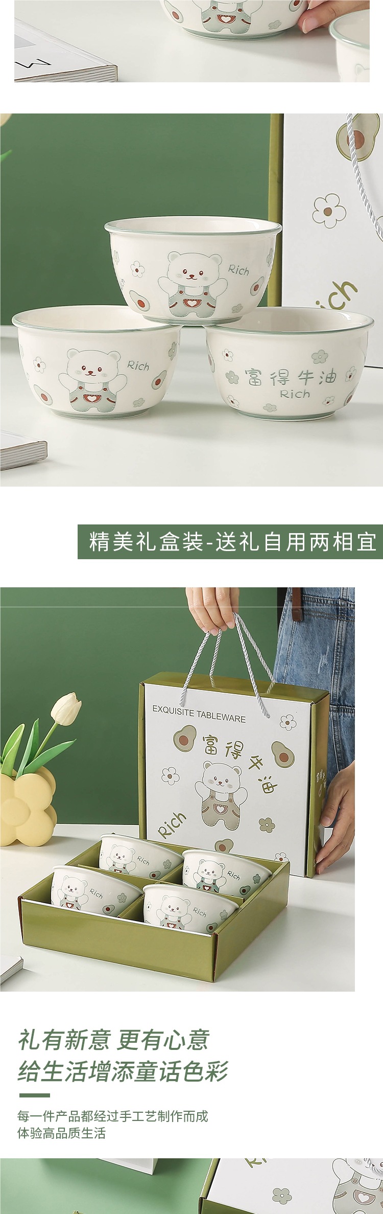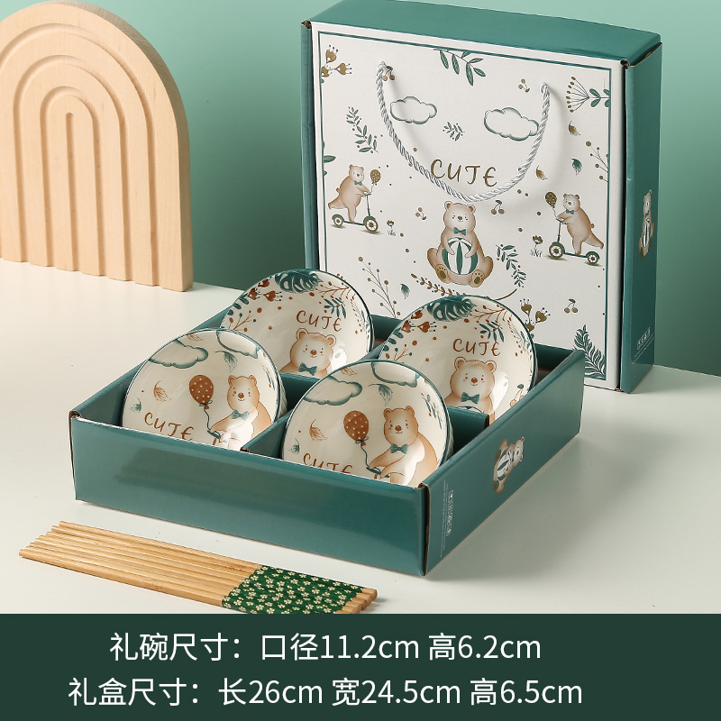 • 포레스트 스케이트보드 베어 그릇 4개 젓가락 4개 (선물 상자)