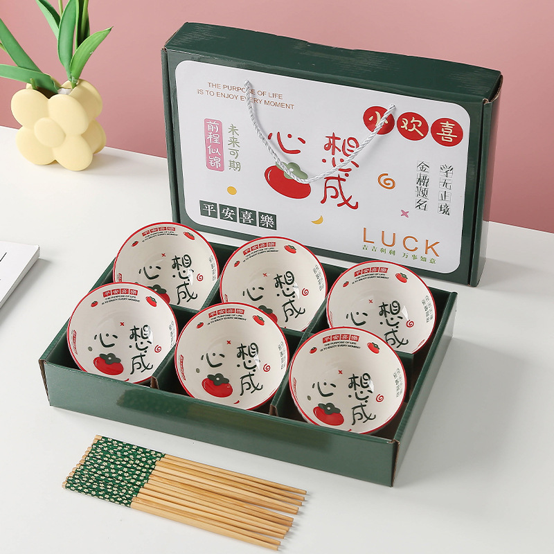 • 행운을 빌어요 그릇 6개와 젓가락 6개 (선물 상자)