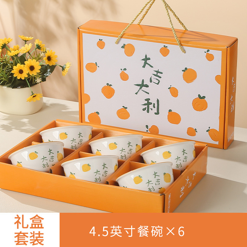 • 주황색 고양이 그릇 6개와 젓가락 6개(선물 상자 포함)