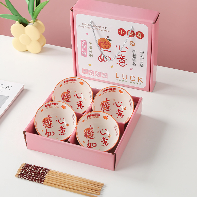 • 행운을 빌어요 그릇 4개 젓가락 4개 (선물 상자)