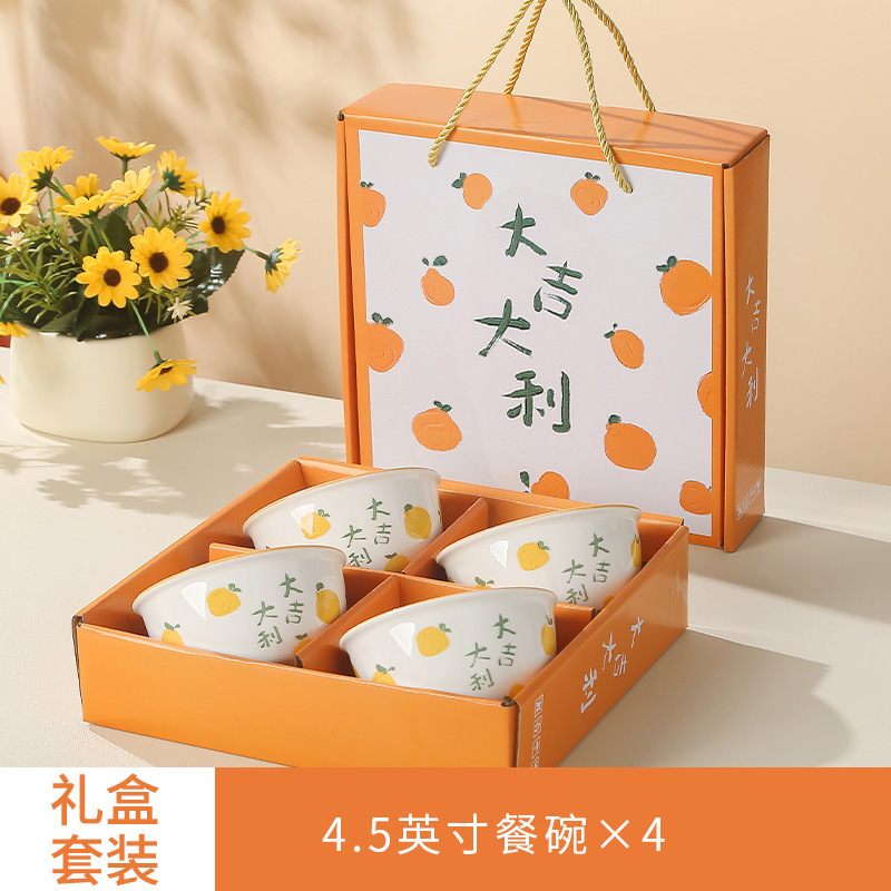 • 오렌지 하트 루이 그릇 4개 젓가락 4개 (핑크색 선물 상자)
