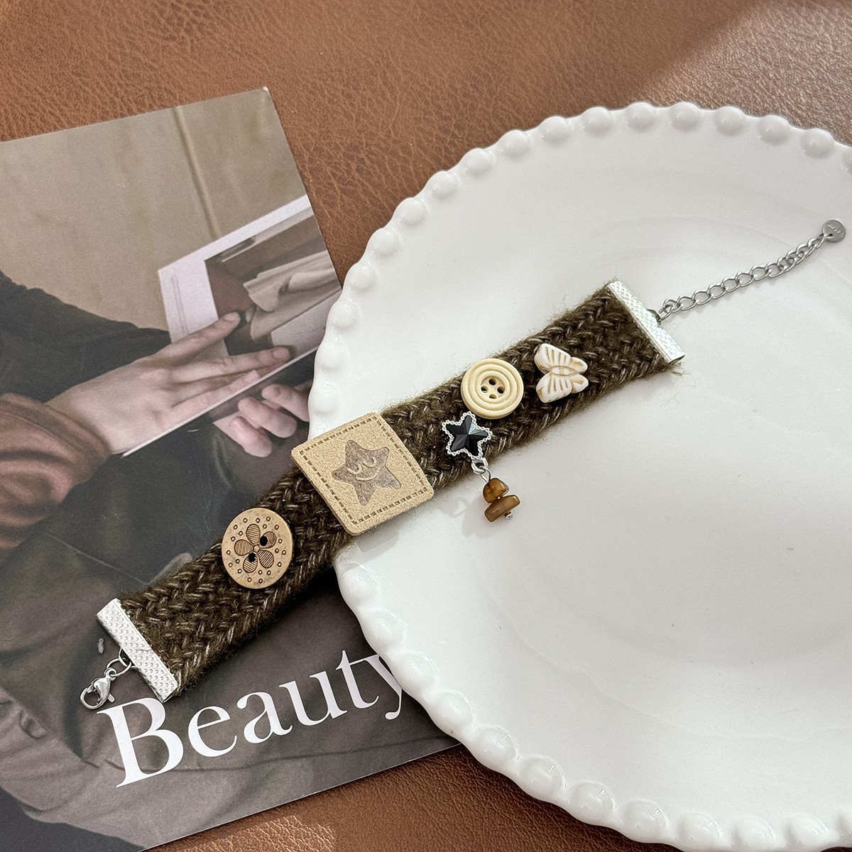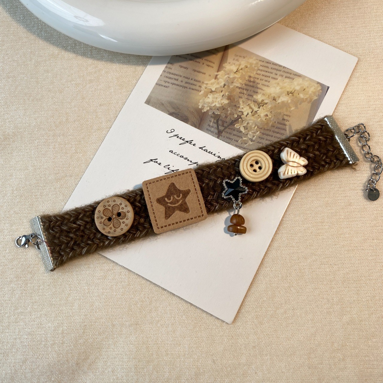 Maillard Retro 스타 버튼 팔찌 여성의 가을 및 겨울 틈새 디자인 부드러운 기질 올 매치 하이 엔드 쥬얼리