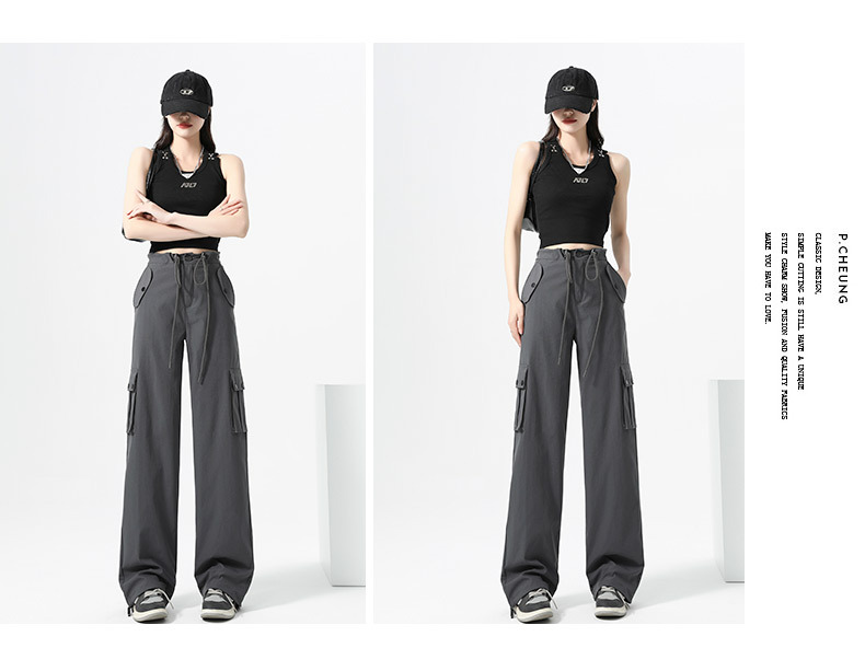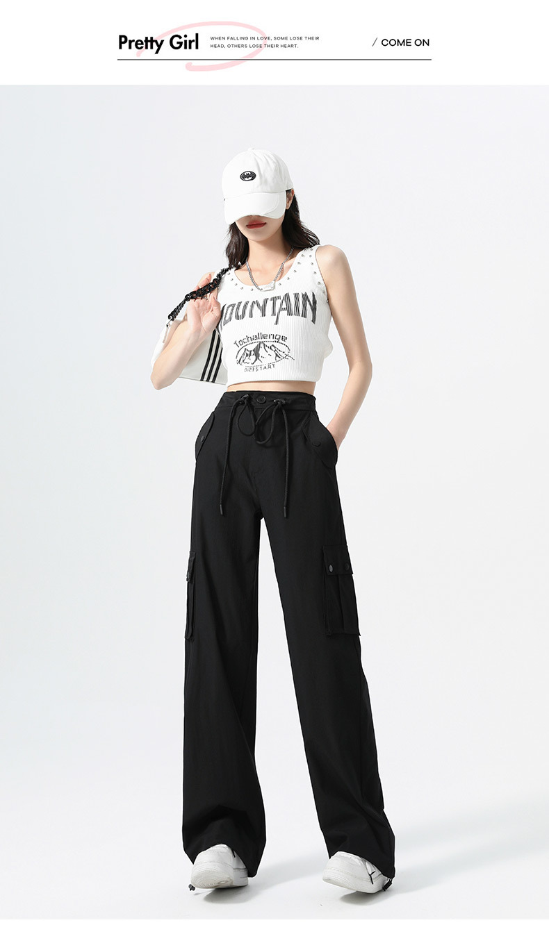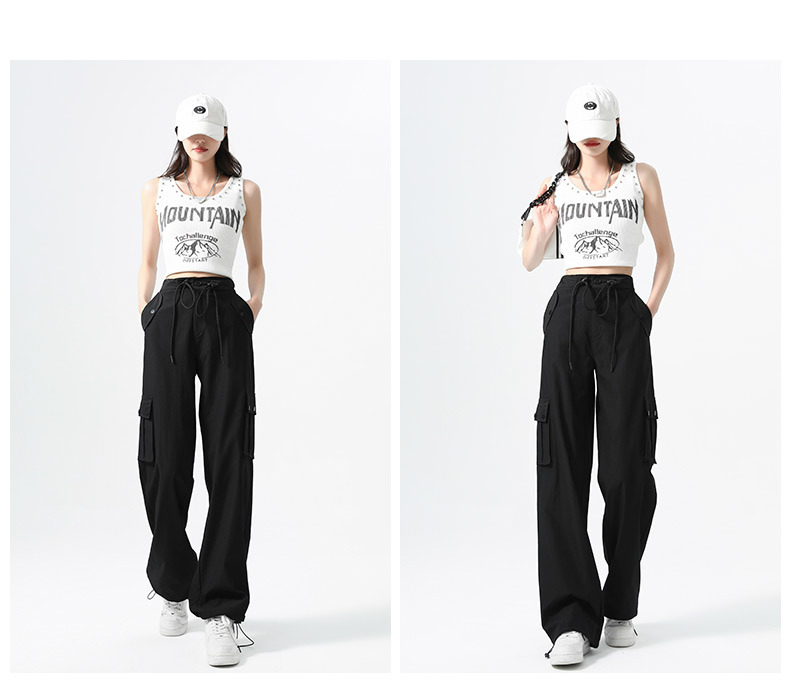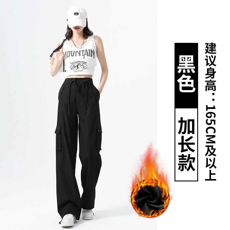 미국식 등산 크록 바지 여성의 가을과 겨울 검은 느슨한 높은 허리 넓은 다리 캐주얼 다리 야외 충전 스포츠 바지스토어 가기