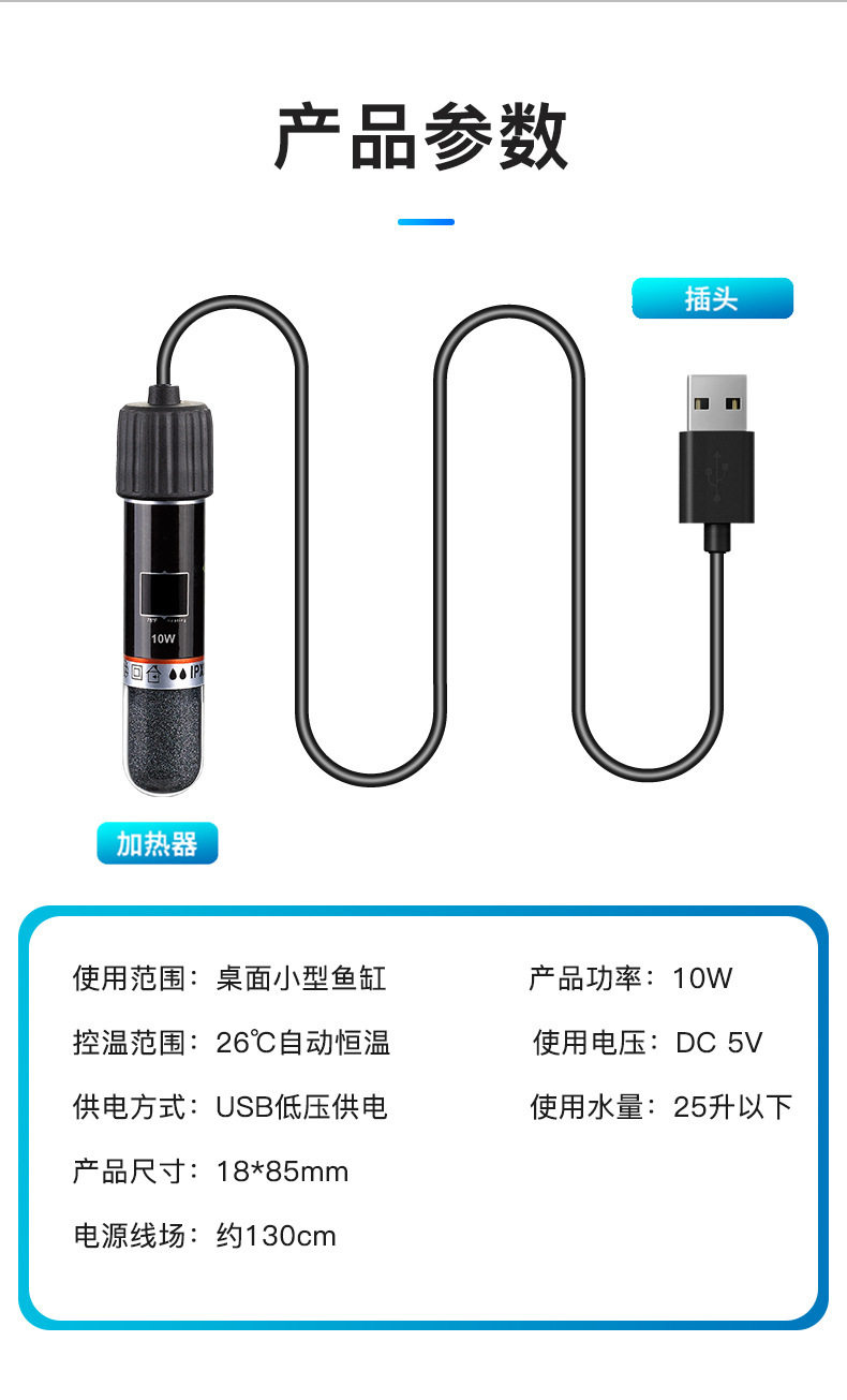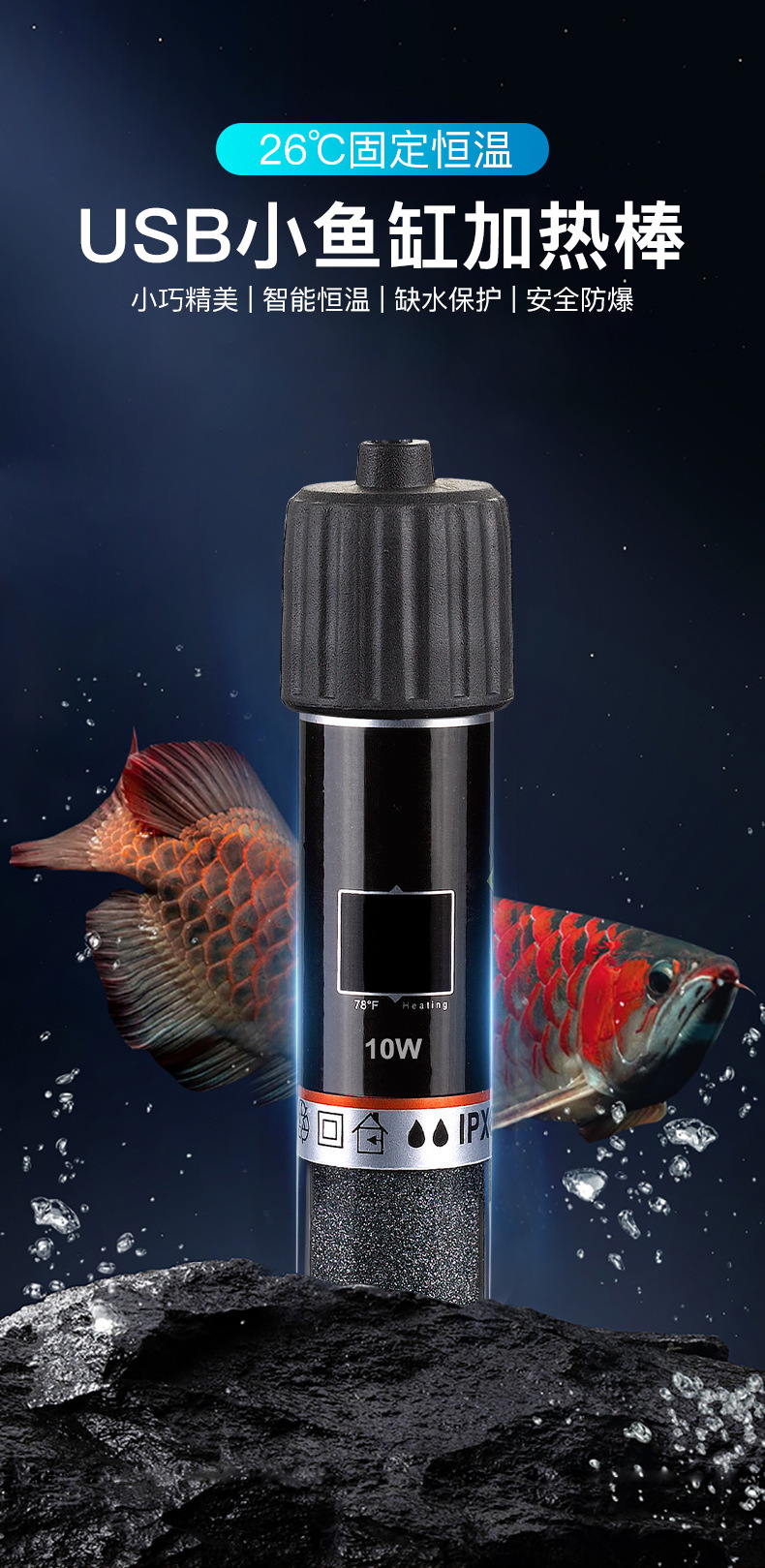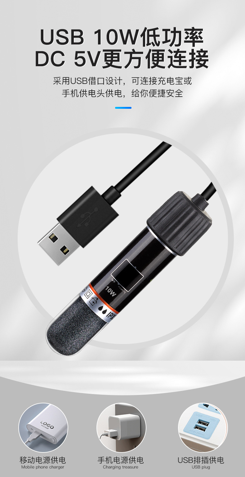 미니 가열 막대 작은 물고기 탱크 자동 일정한 온도 난방 전력 절약 마이크로 usb 온도 조절기 열대어 석영 유리