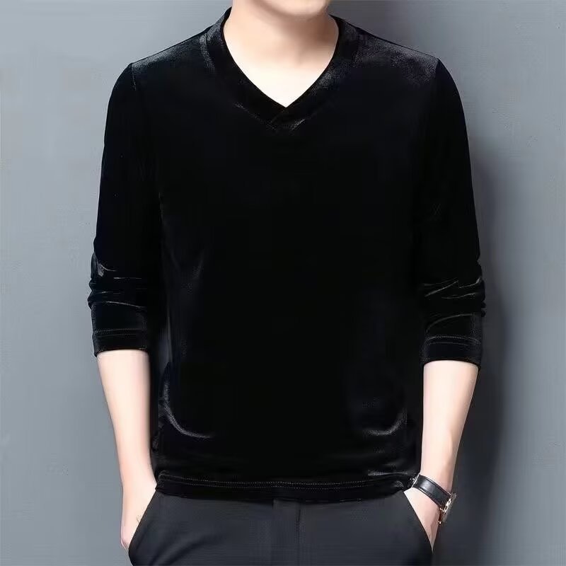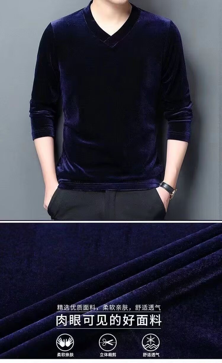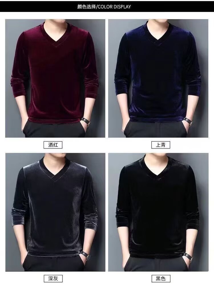 가을과 겨울 골든 벨벳 스웨터 남성용 얇은 솔리드 컬러 V 넥 플러스 사이즈 세련된 겨울 젊고 중년의 긴팔 탑베이스 셔츠스토어 가기