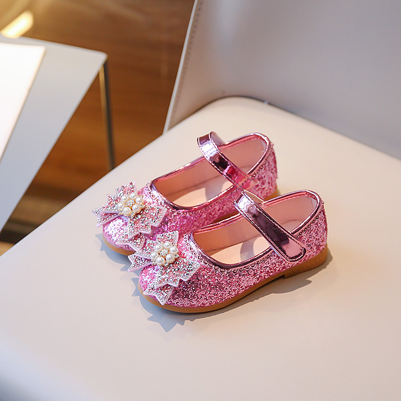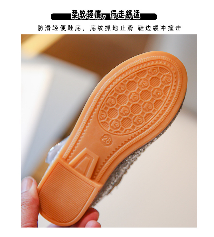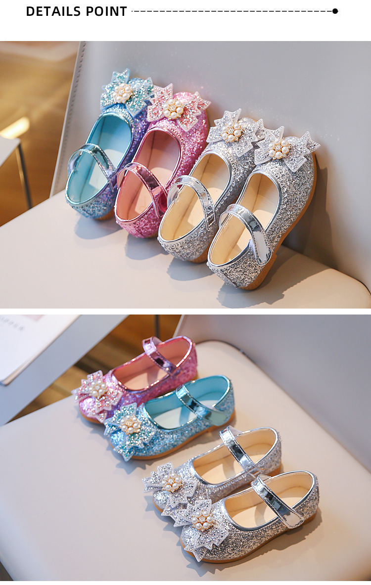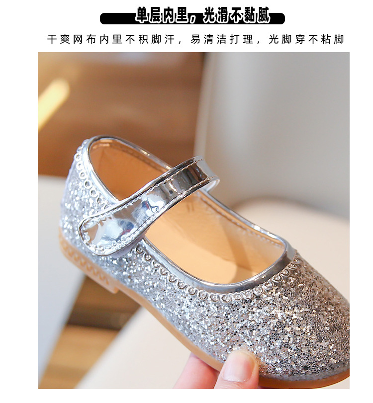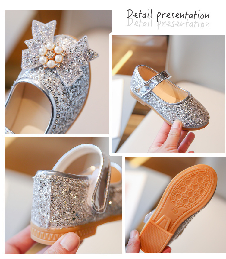 소녀 라인스톤 공주 신발 2024 봄과 가을 새로운 어린이 아이샤 Sequined 작은 가죽 신발 대형 어린이 소프트 솔 신발스토어 가기