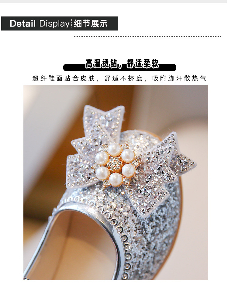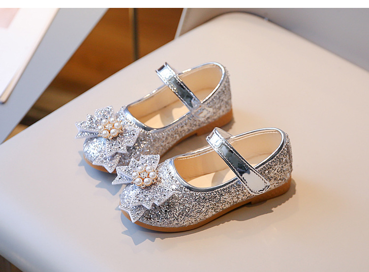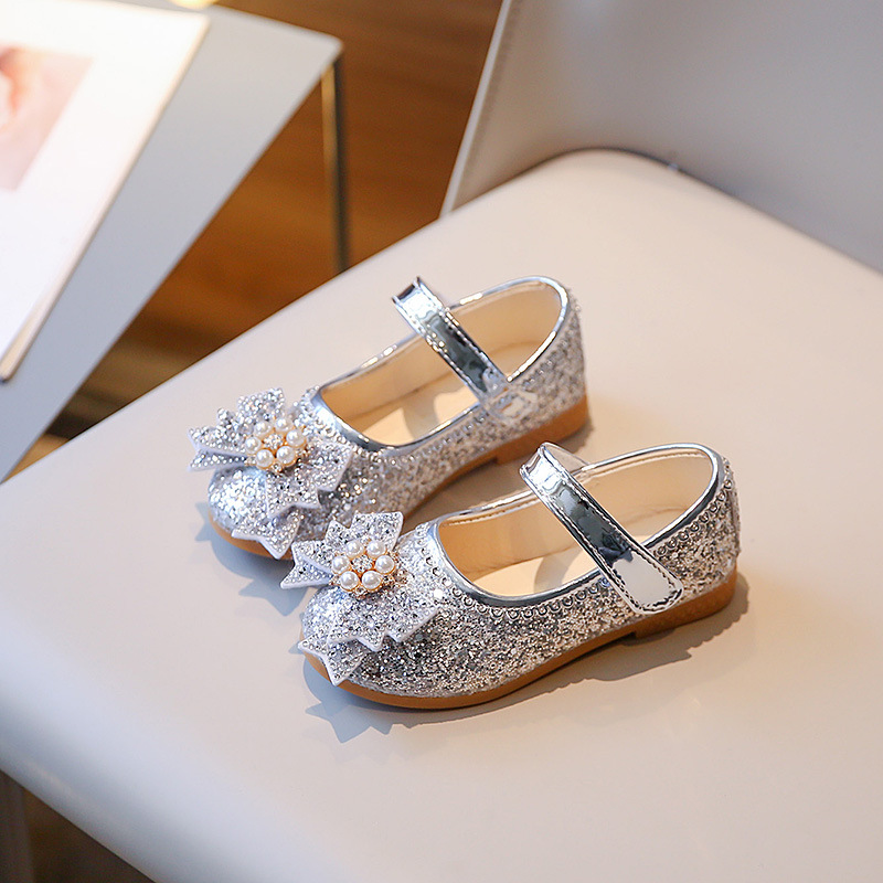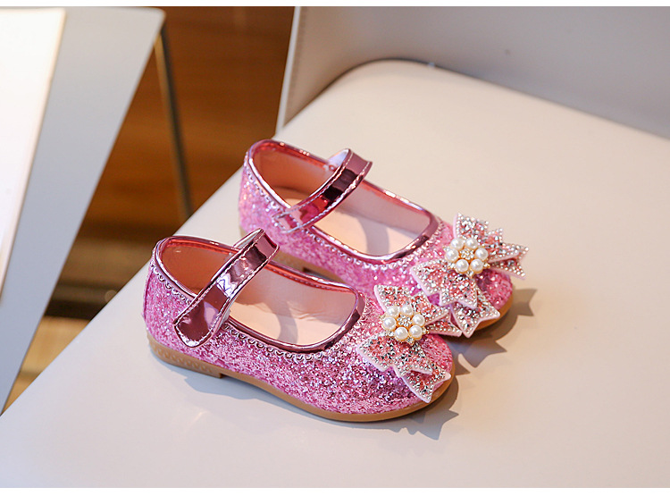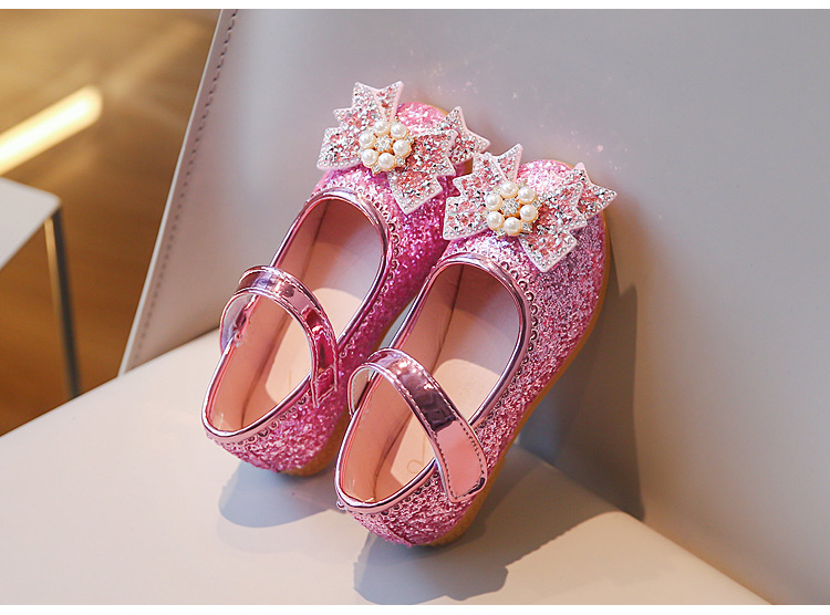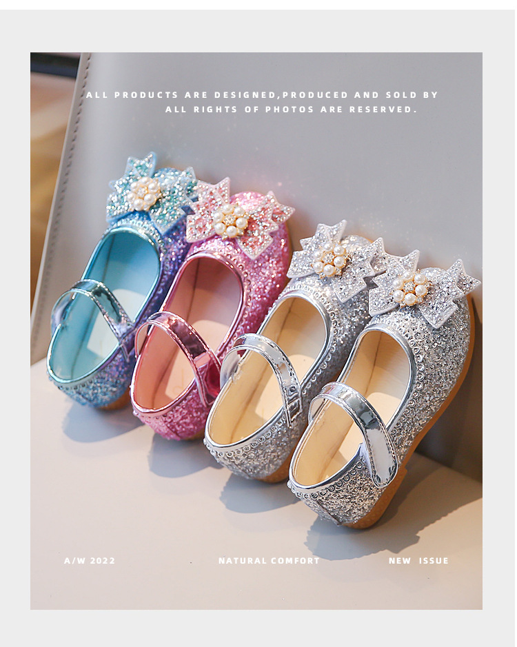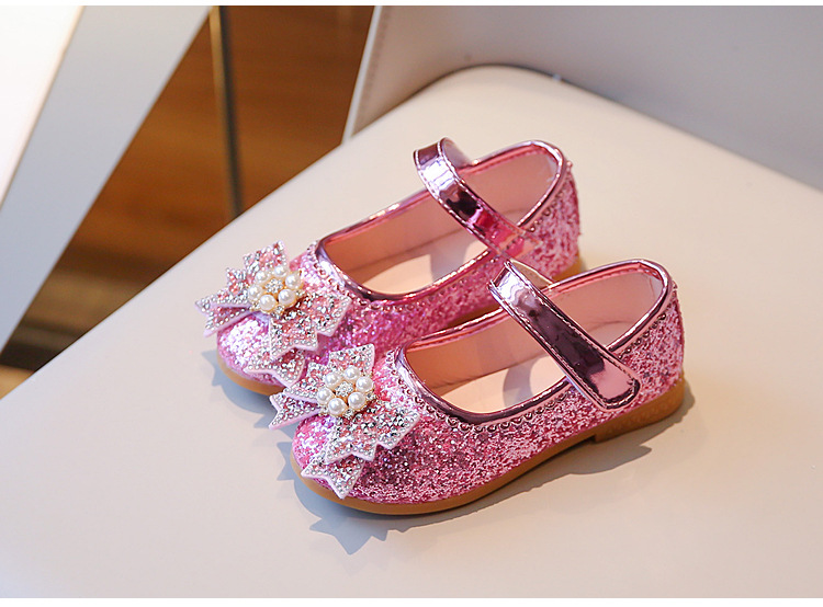 소녀 라인스톤 공주 신발 2024 봄과 가을 새로운 어린이 아이샤 Sequined 작은 가죽 신발 대형 어린이 소프트 솔 신발스토어 가기