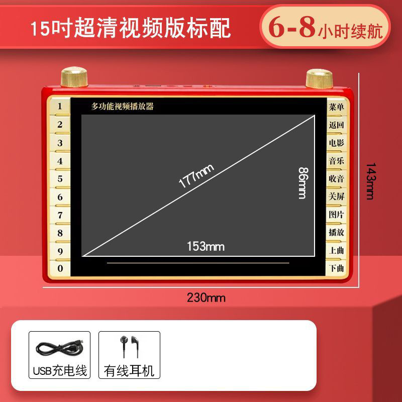 • 22개의 울트라 클리어 버전(4시간의 배터리 수명을 갖춘 14inch 대형 화면)에는 U 디스크/메모리 카드 및 콘텐츠가 포함되어 있지 않습니다.