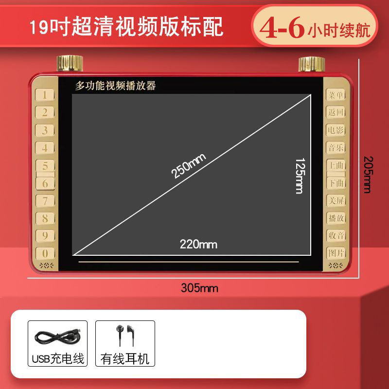 • 19 울트라 클리어 버전(4~6시간의 10inch 화면 수명)에는 U 디스크/메모리 카드 및 콘텐츠가 포함되어 있지 않습니다.