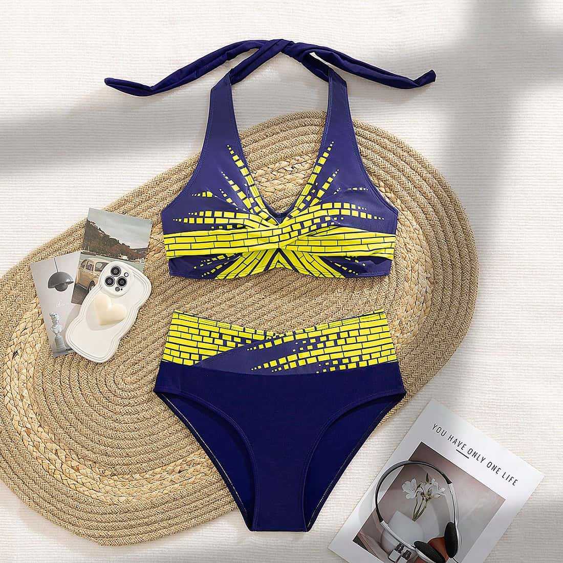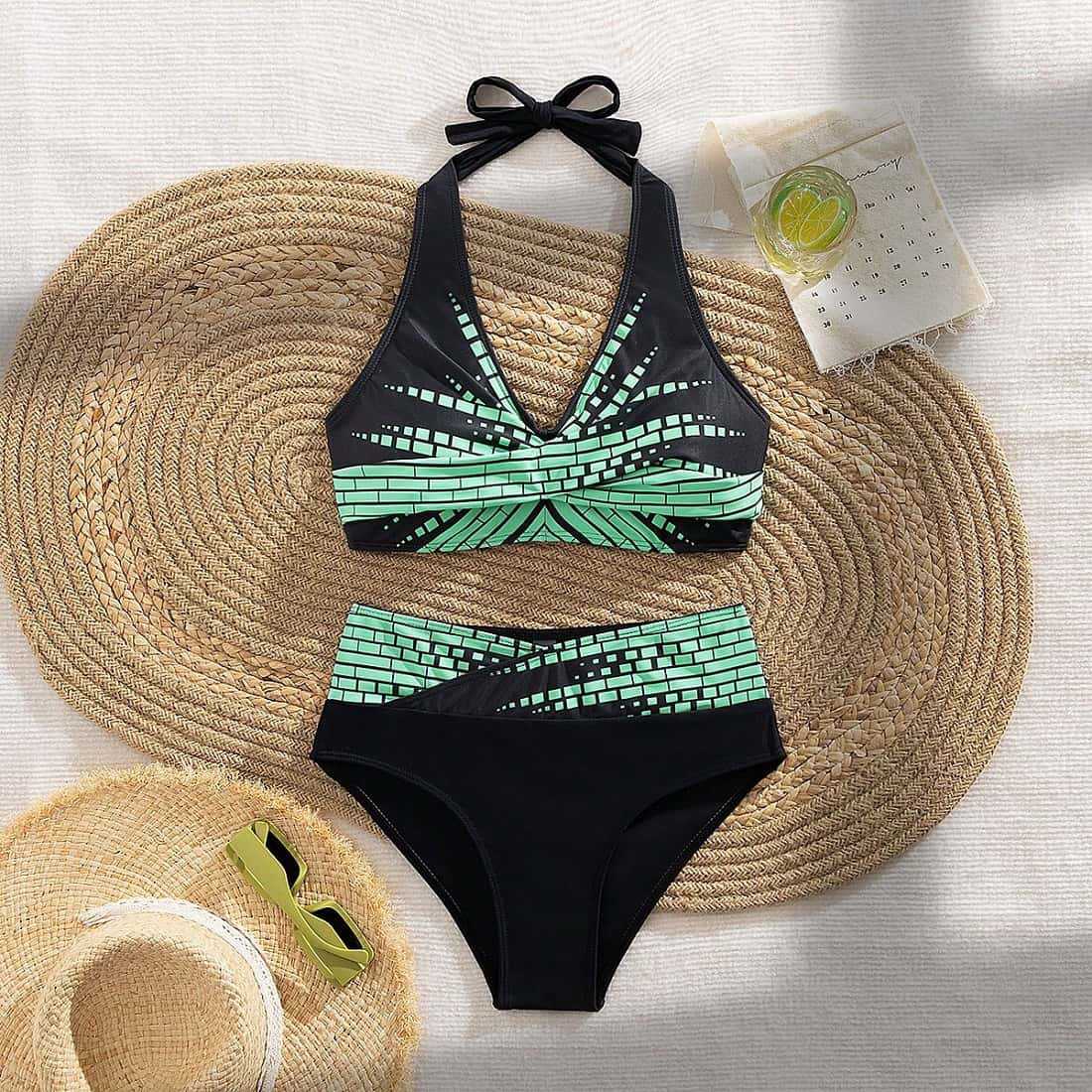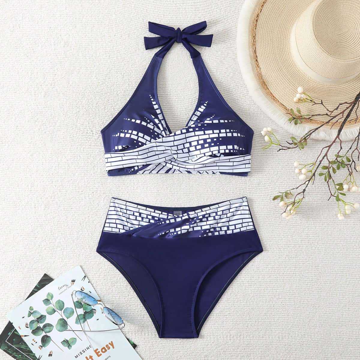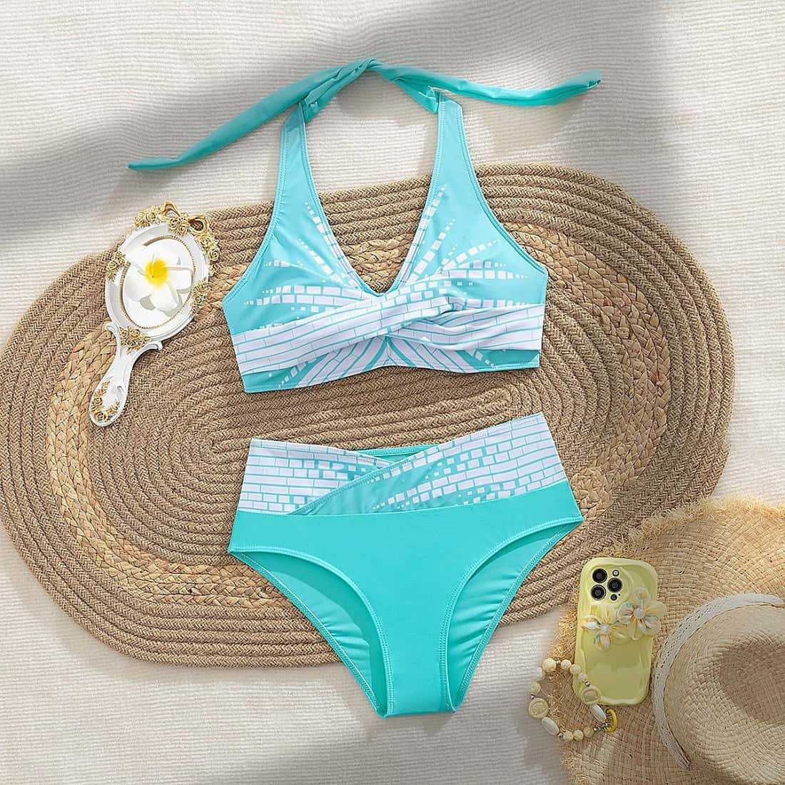 2025 국경 새 분할 삼각형 보수 수영 여자 온천 스포츠 레저 슬리밍 높은 허리 비키니 여성