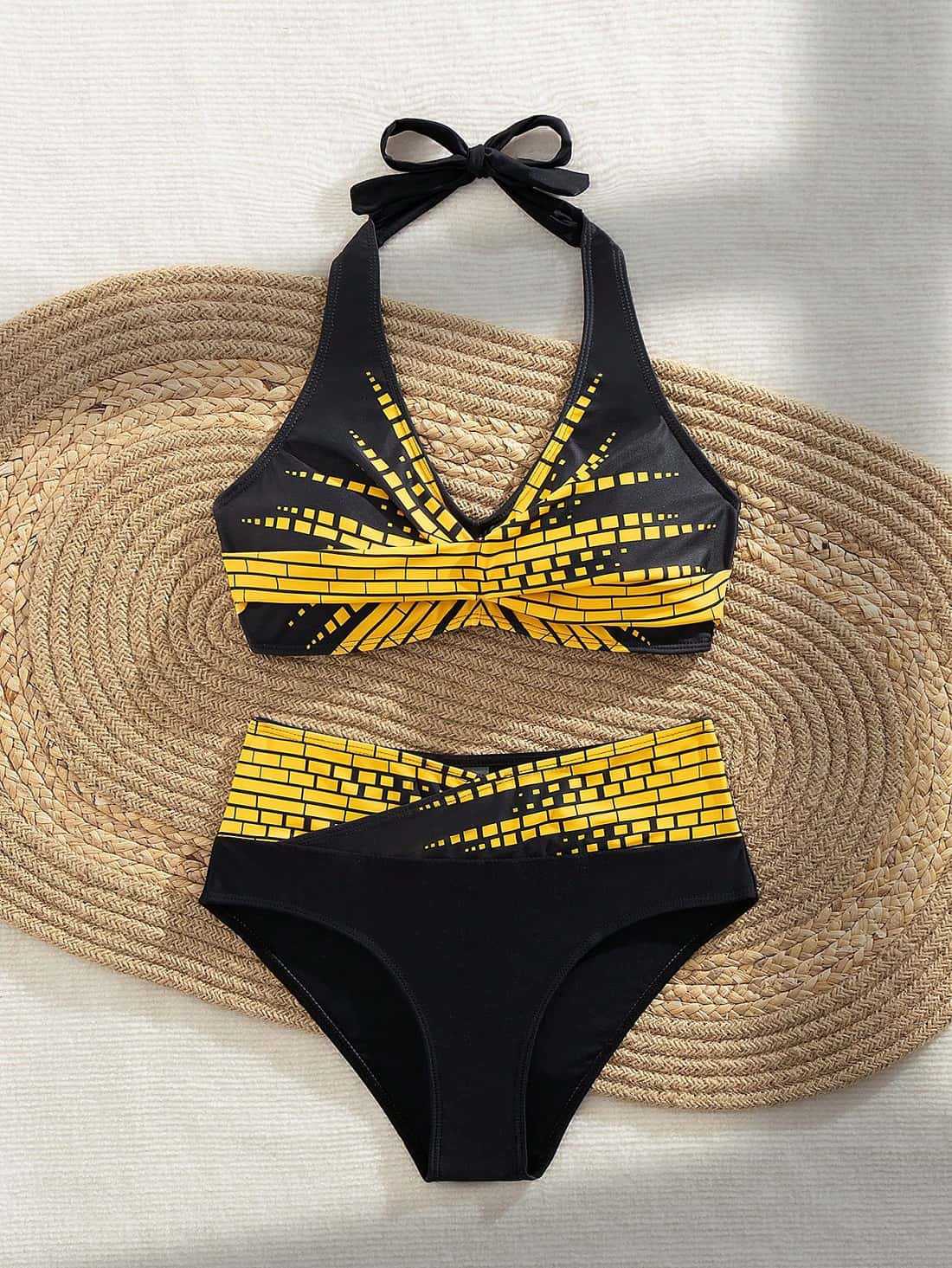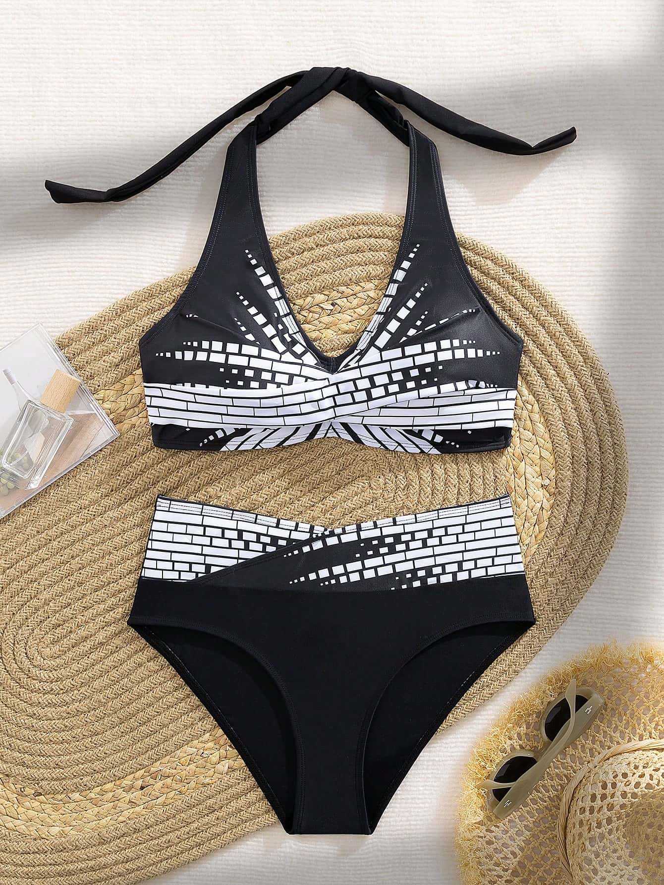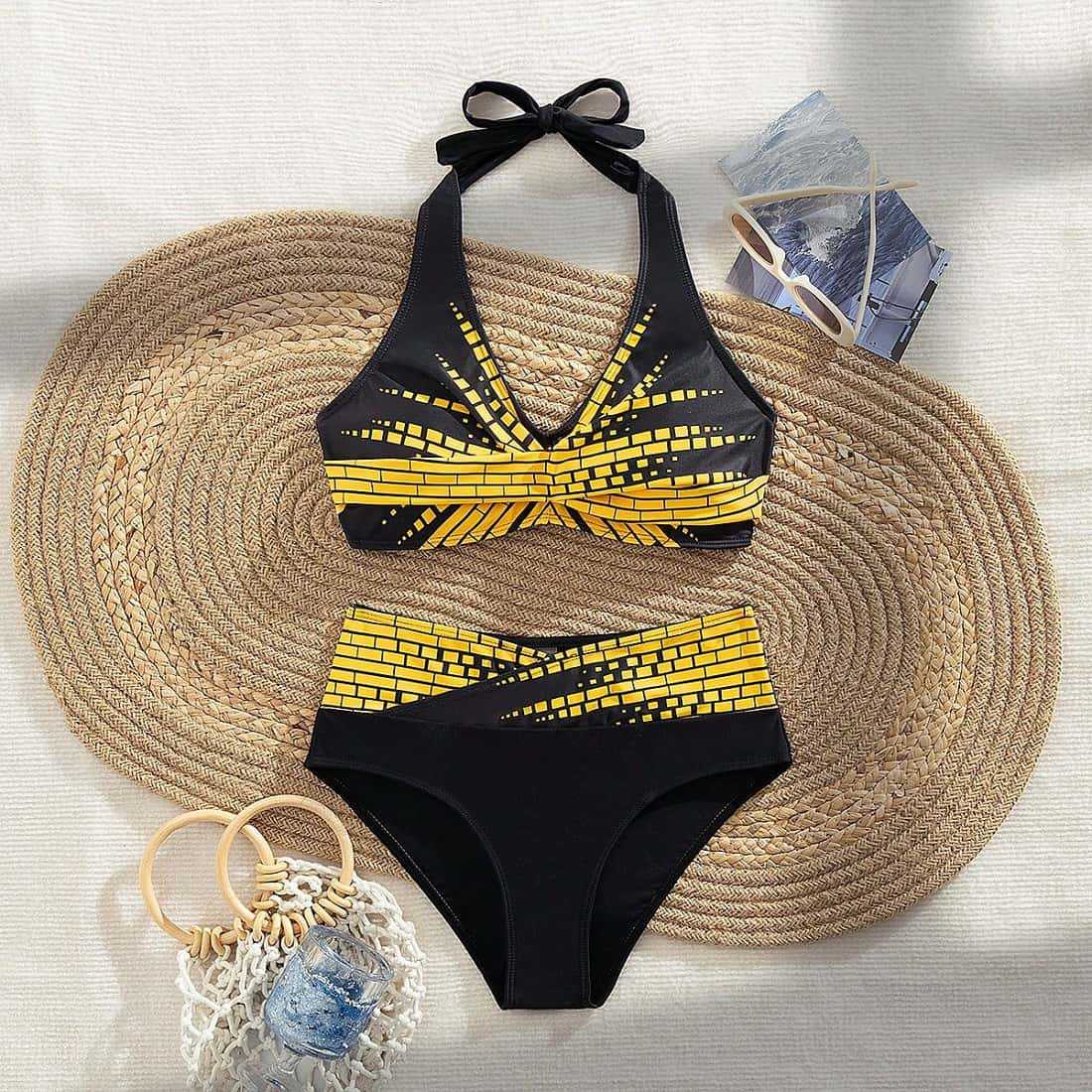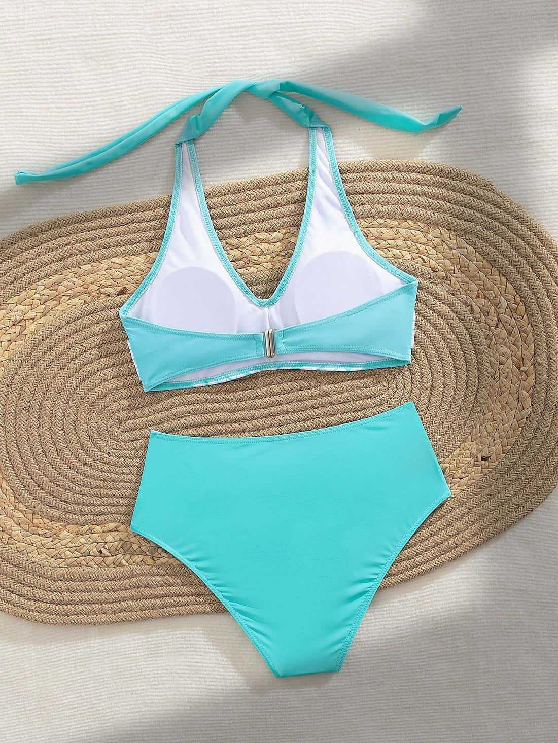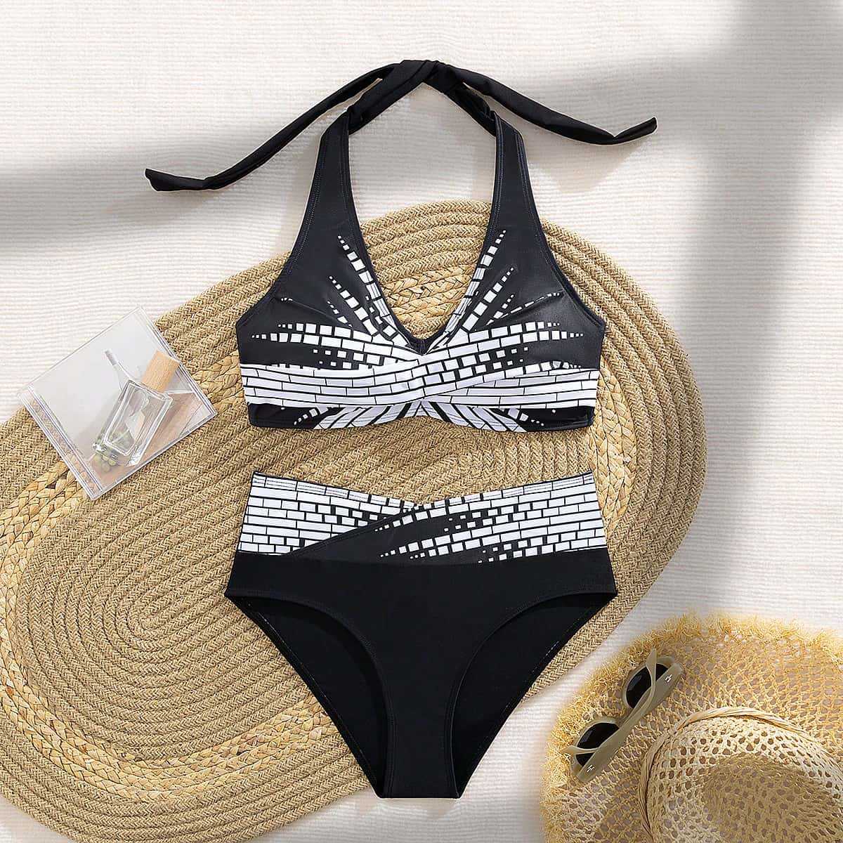 2025 국경 새 분할 삼각형 보수 수영 여자 온천 스포츠 레저 슬리밍 높은 허리 비키니 여성