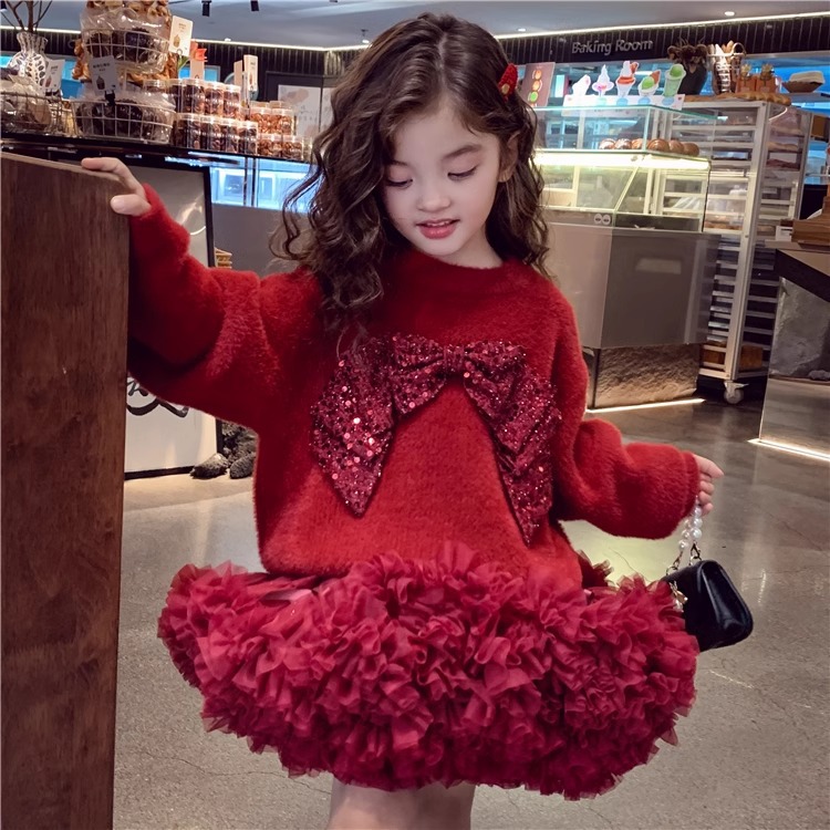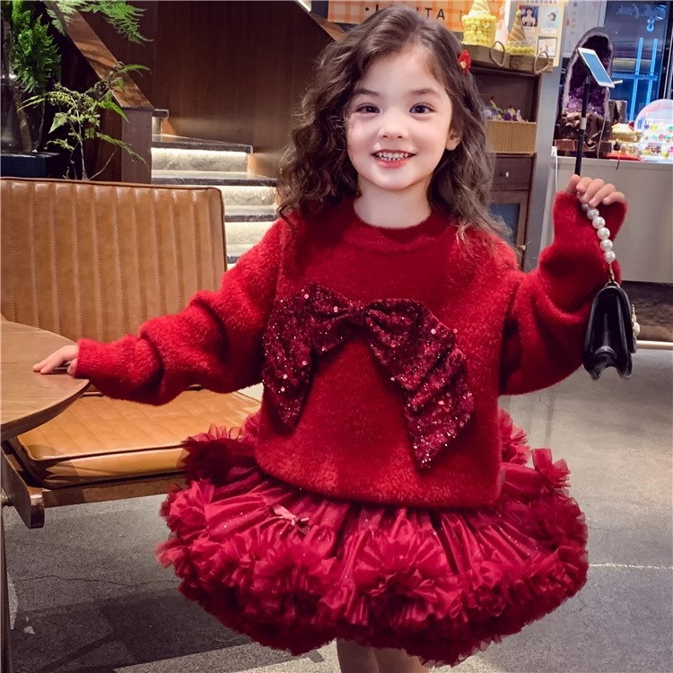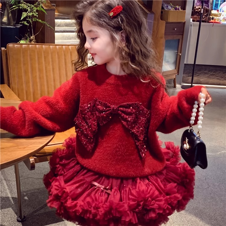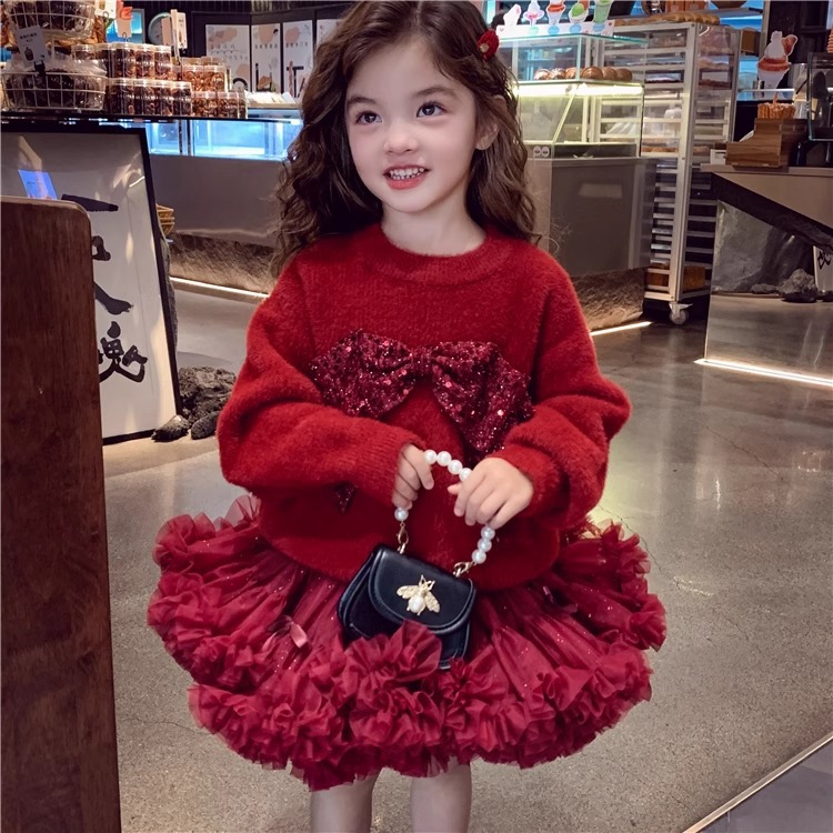 소녀의 투투 스커트 겨울 2024 새로운 스타일 서양식 어린 소녀의 빨간 스커트 어린이 메쉬 퍼프 공주 스커트스토어 가기