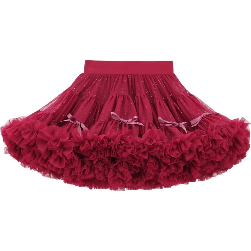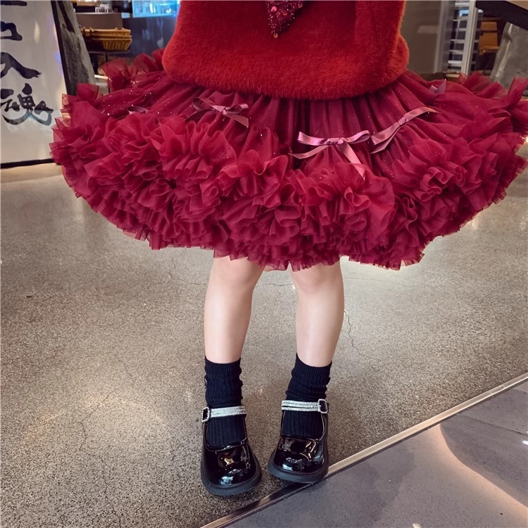 소녀의 투투 스커트 겨울 2024 새로운 스타일 서양식 어린 소녀의 빨간 스커트 어린이 메쉬 퍼프 공주 스커트