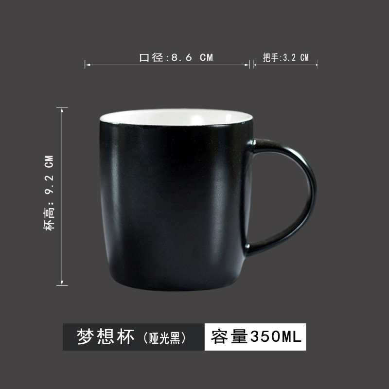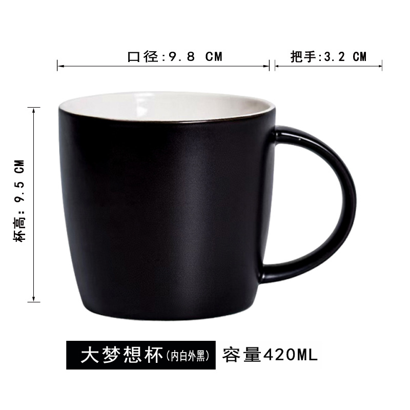 Liling Ceramics 로고 맞춤형 올 블랙 내부 흰색 외부 검정색 컵 레이저 조각 고온 데칼 빅 드림 광고 컵스토어 가기