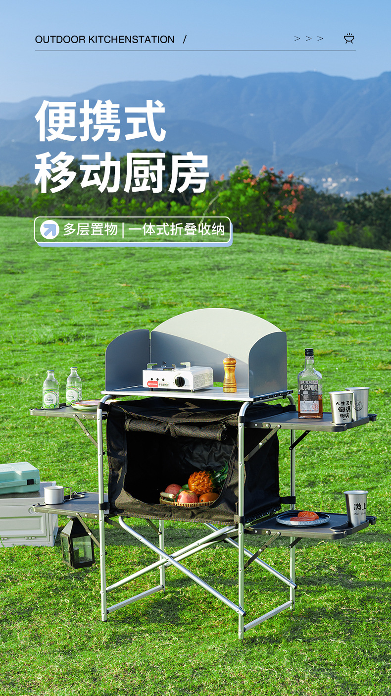 야외 접이식 테이블과 의자 휴대용 캠핑 알루미늄 다기능 접이식 테이블 이동식 주방 식탁과 의자