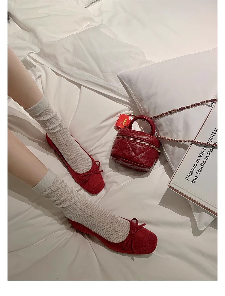 상품으로 만든 기질 통근 라운드 헤드 1 페달 얕은 활 발레 스타일 캐주얼 올 매치 싱글 레이어 신발 여성용스토어 가기