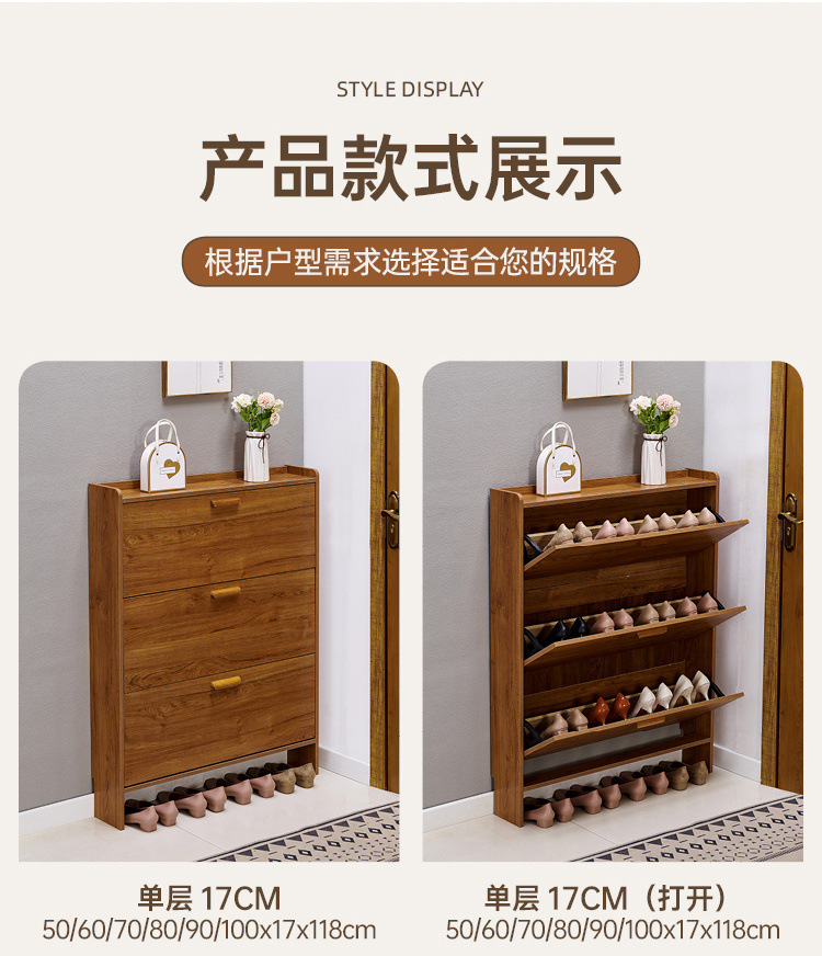 단단한 나무 울트라 얇은 신발 캐비닛 17cm 경제적 인 가정용 문 간단한 현대 저장 좁은 입장 전락 작은 신발 랙스토어 가기