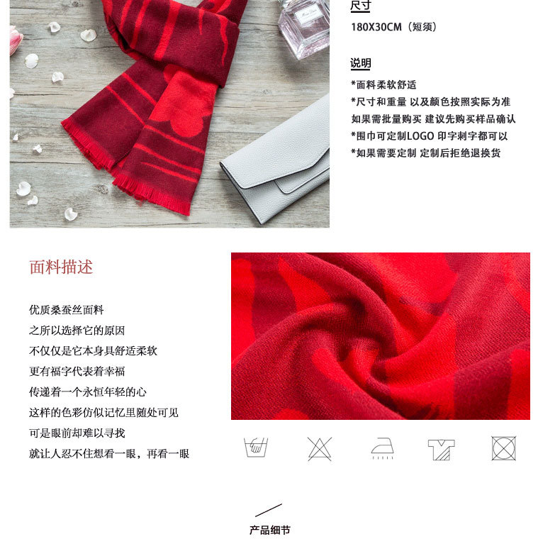 중국 레드 안전 축복 스카프 사용자 정의 로고 자수 인쇄 연례 파티 이벤트 축하 레드 스카프 도매