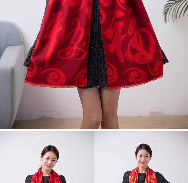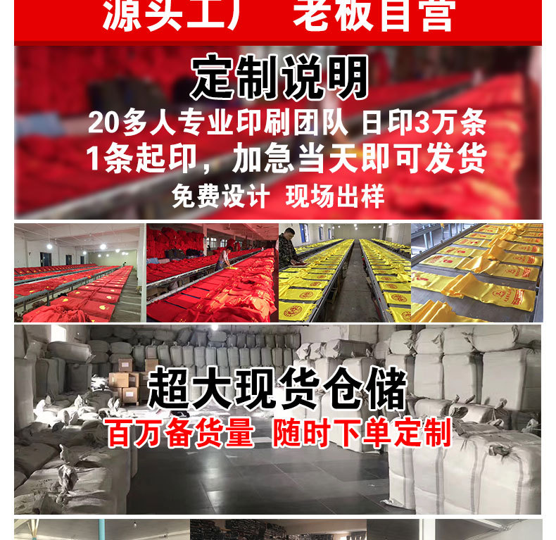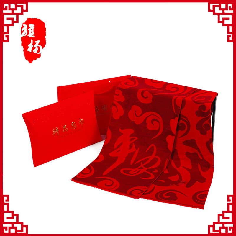 중국 레드 안전 축복 스카프 사용자 정의 로고 자수 인쇄 연례 파티 이벤트 축하 레드 스카프 도매스토어 가기